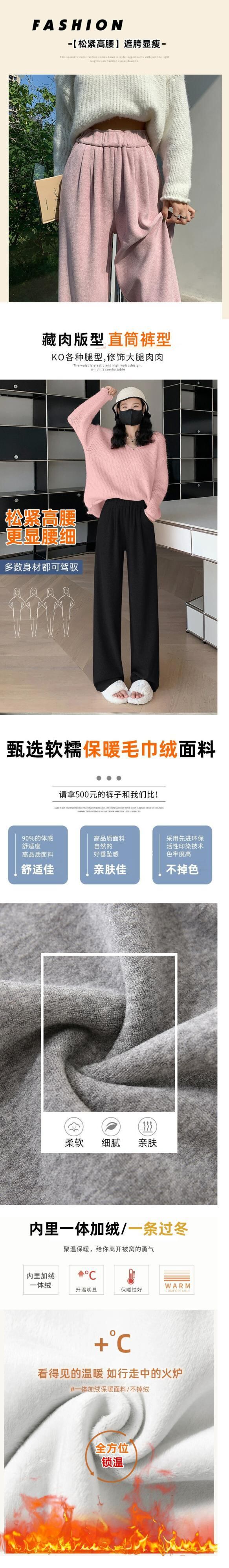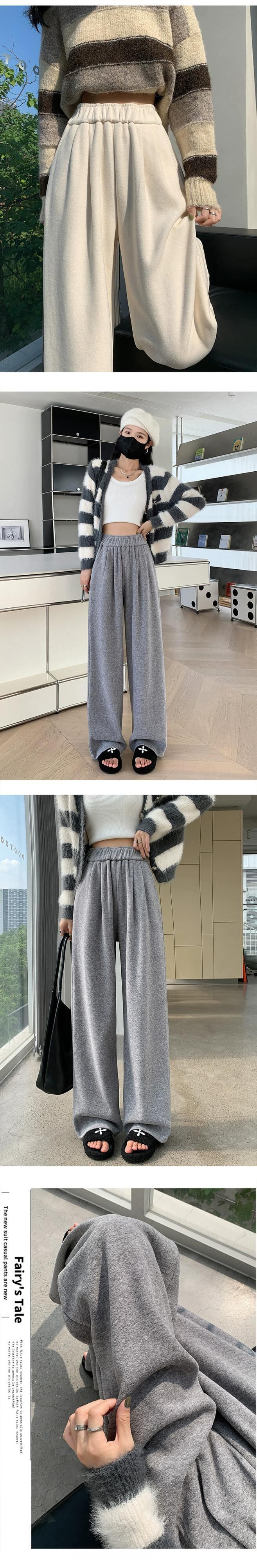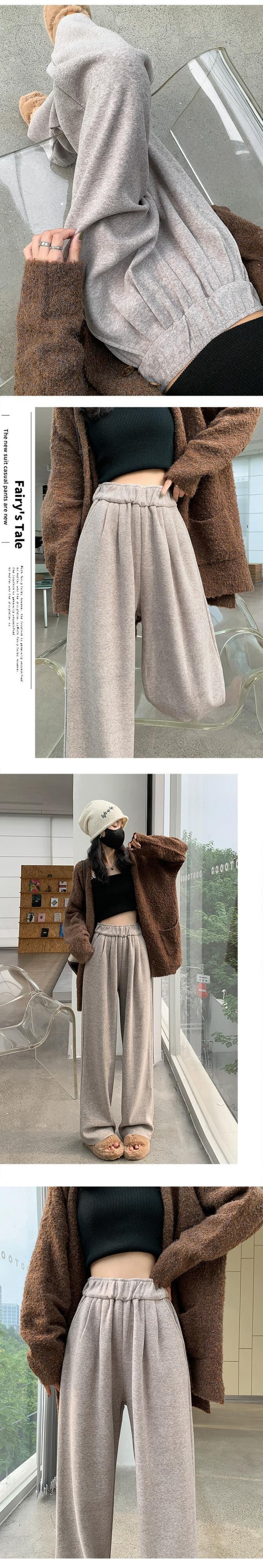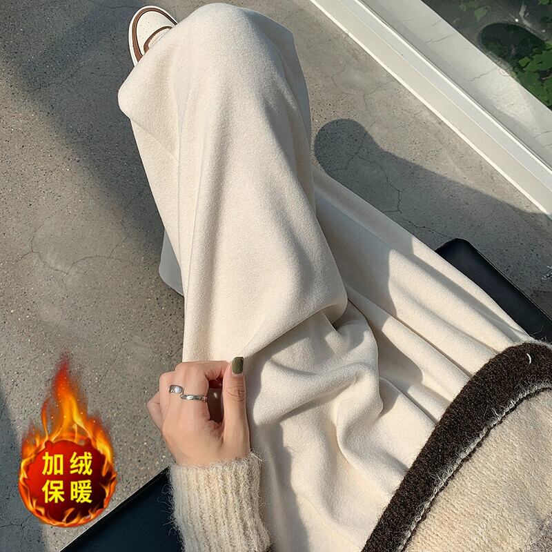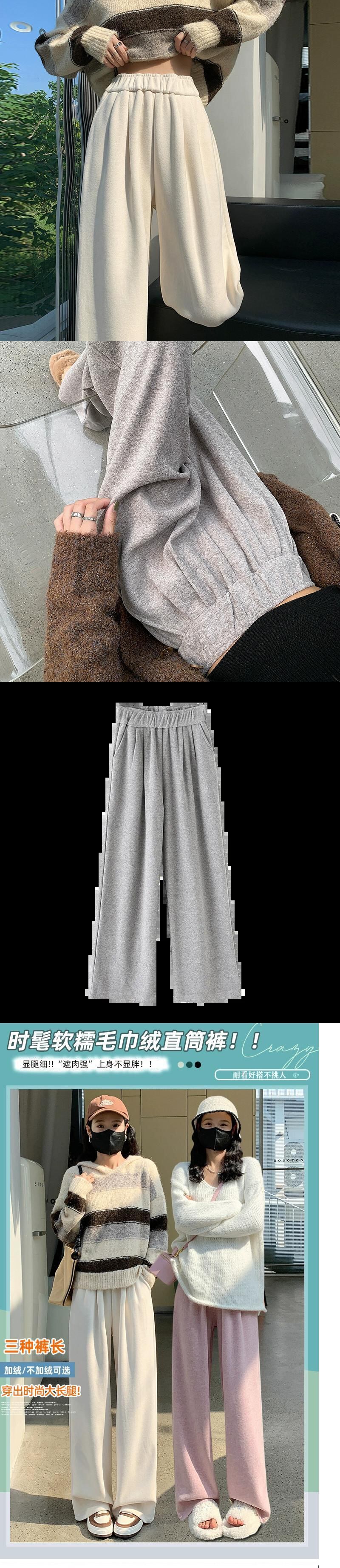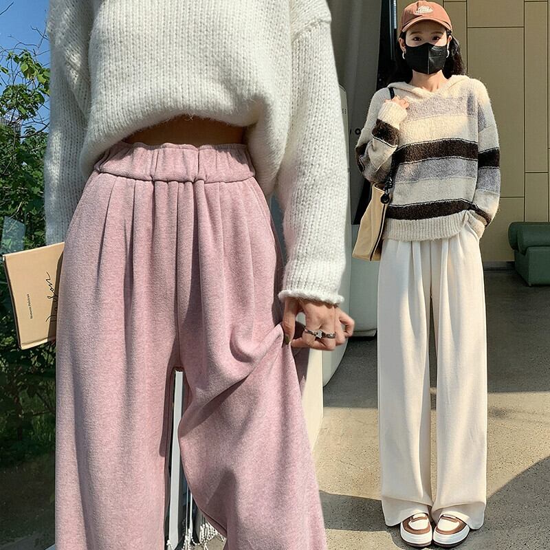 秋冬のアプリコットベルベットのワイドレッグパンツの女性、ドレープのあるもち米パンツの狭いバージョン、ゆったりとスリムな、ストレートハイウエストカジュアルフロアモップパンツ オータム 秋物 ウィンター 冬物 7460042273756305 | framboise21