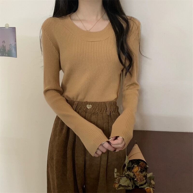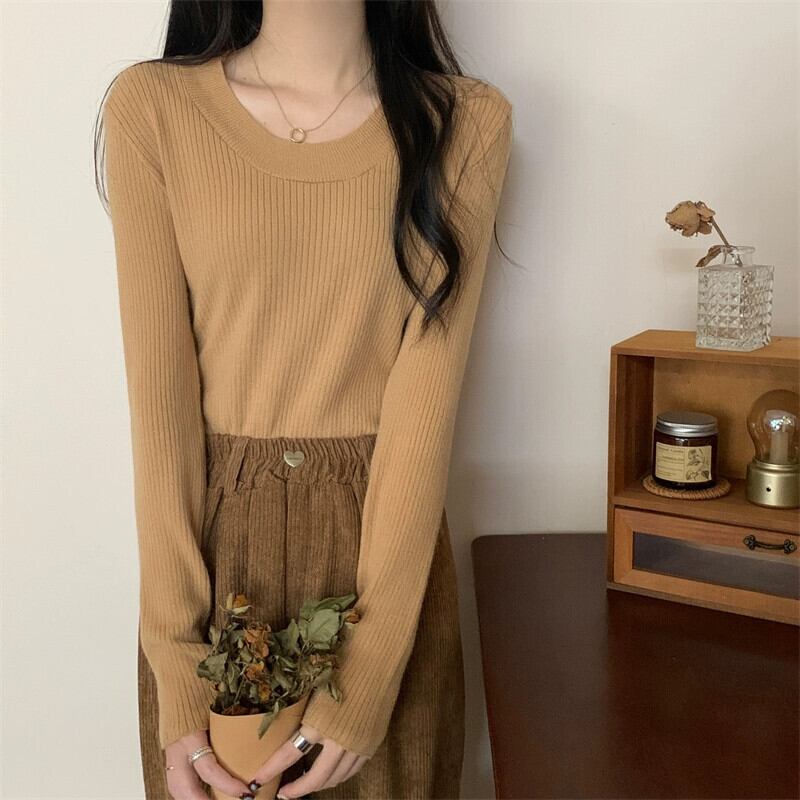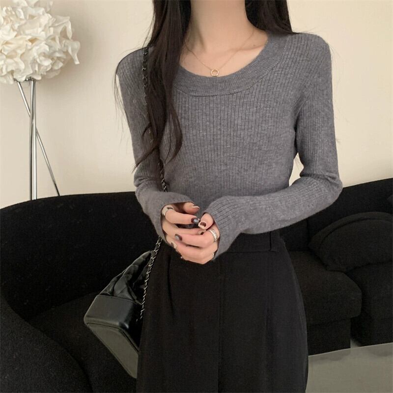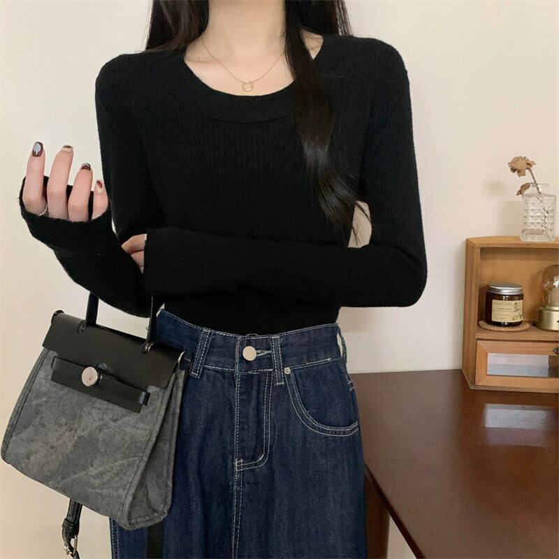 黒低ラウンドネックボトリングシャツ 2023 新しい女性の秋と冬のハイエンド感覚痩身と西洋スタイルのインナーニットセーター ブラック オータム 秋物 ウィンター 冬物 Oネック 7460079577448398 | framboise21