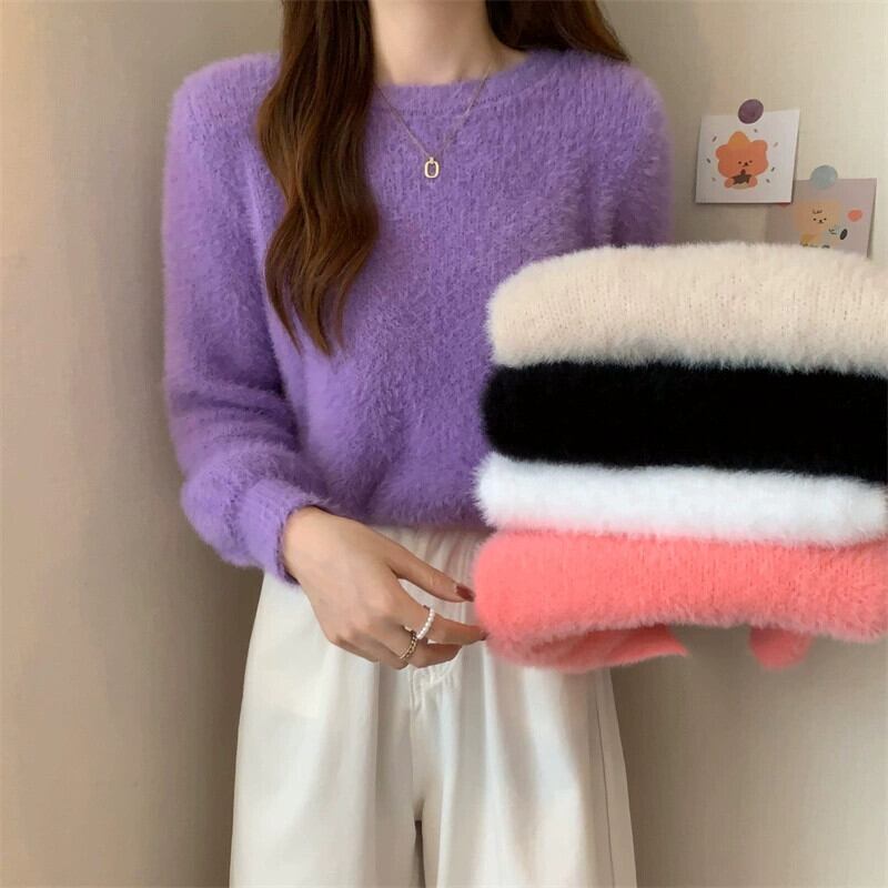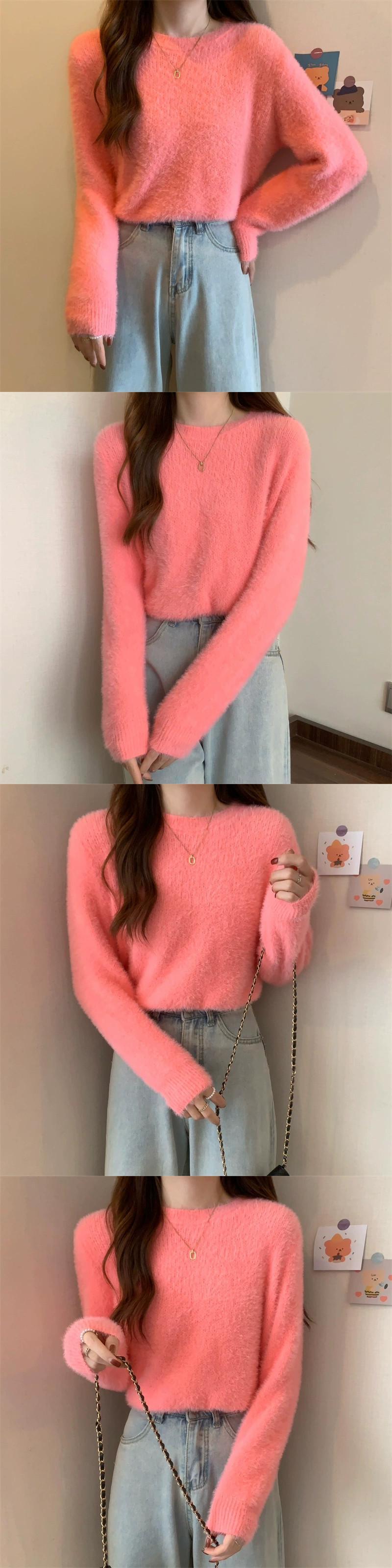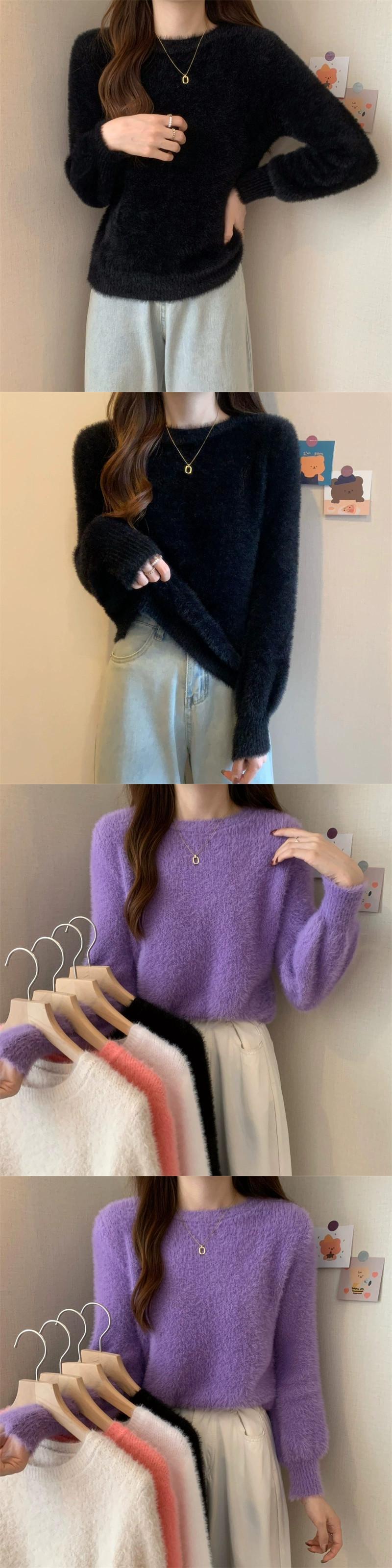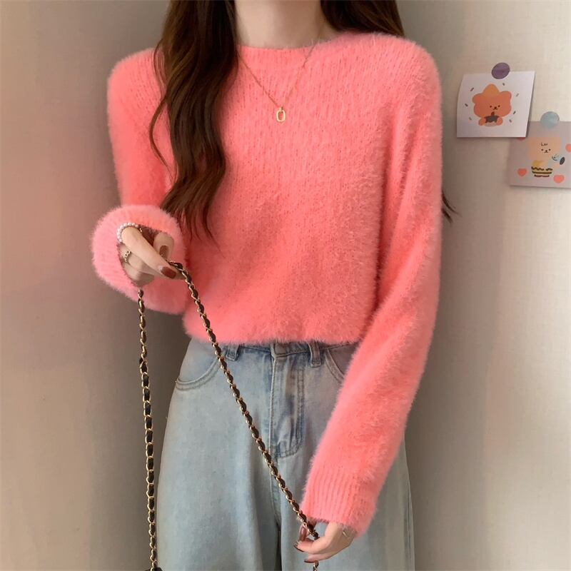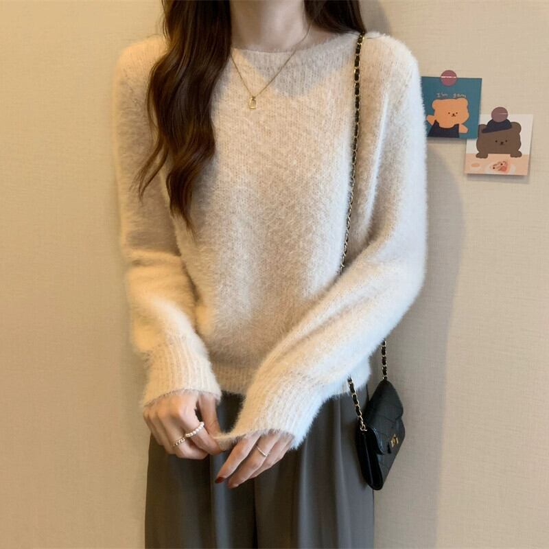 暖かく厚みのある模造ミンクベルベットセーター女性秋と冬のフレンチスタイルルーズアウターウェア怠惰なソフトワックスモヘアニットトップ ウィンター 冬物 746007300541075 | framboise21