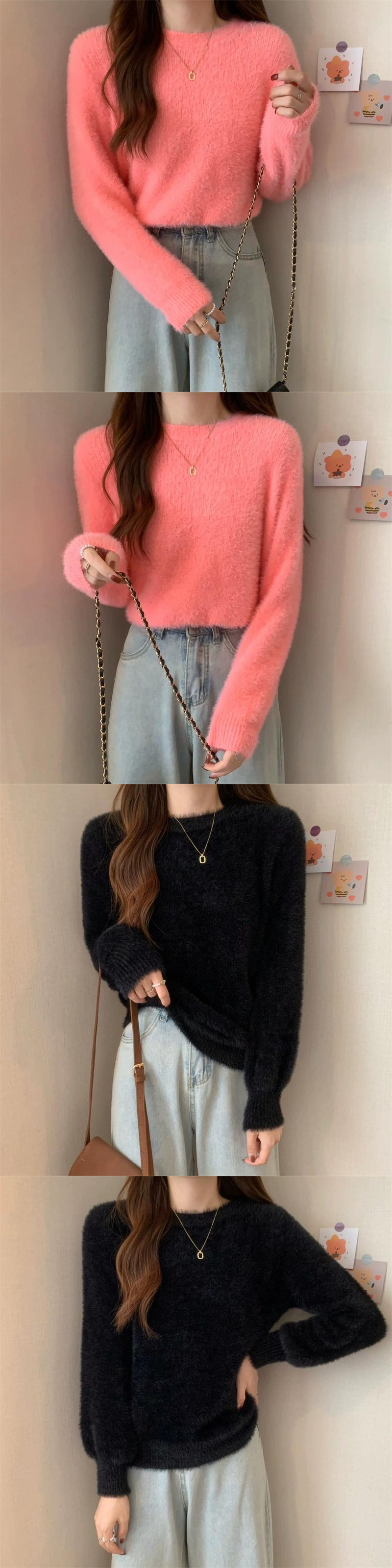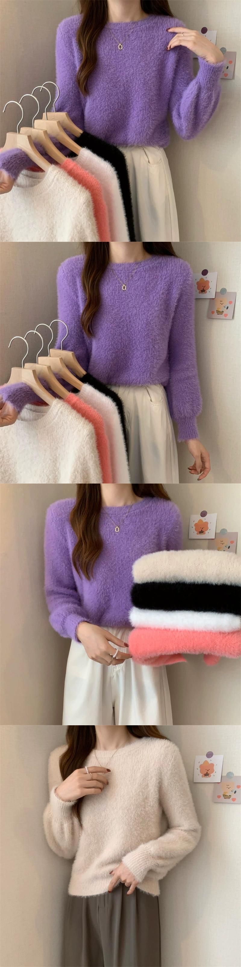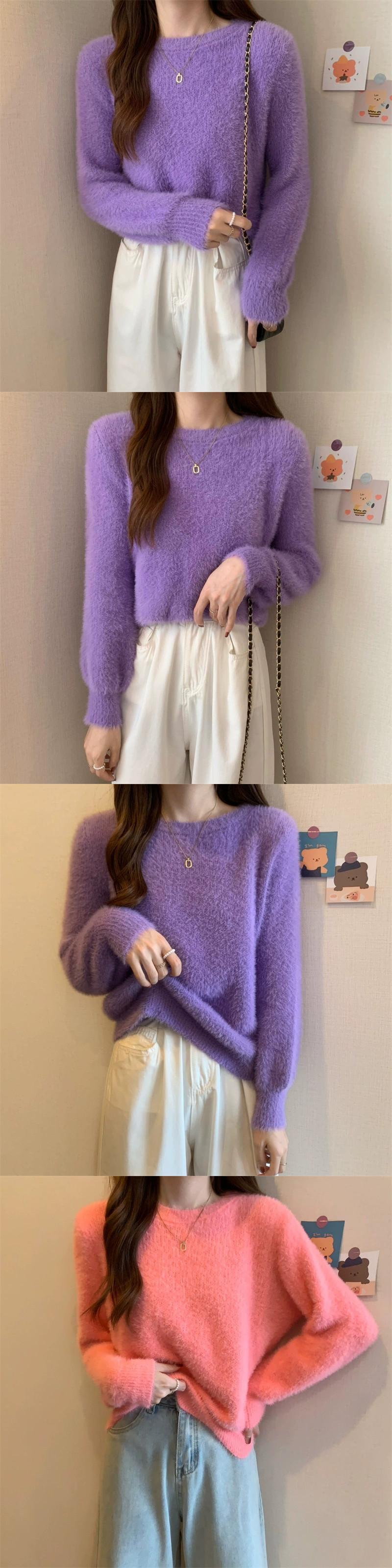 暖かく厚みのある模造ミンクベルベットセーター女性秋と冬のフレンチスタイルルーズアウターウェア怠惰なソフトワックスモヘアニットトップ ウィンター 冬物 746007300541075 | framboise21