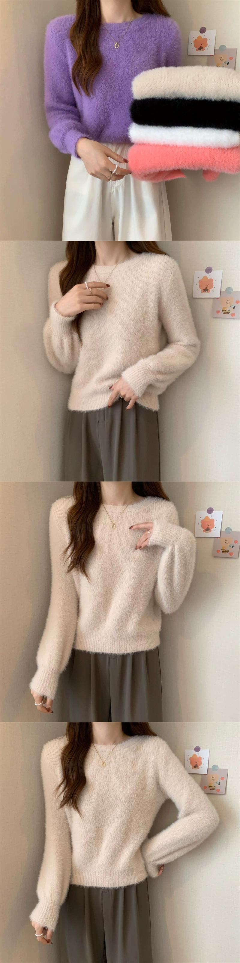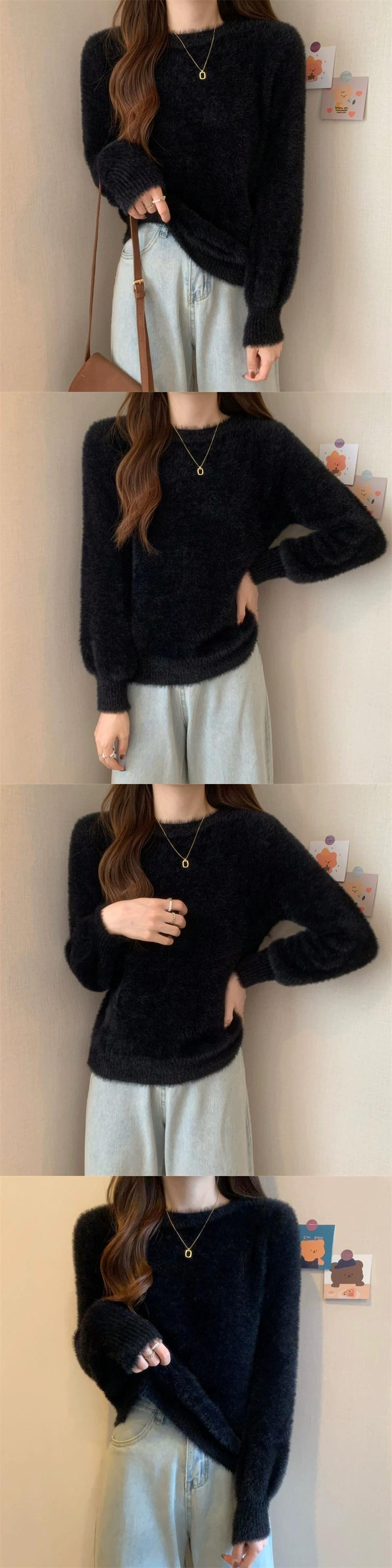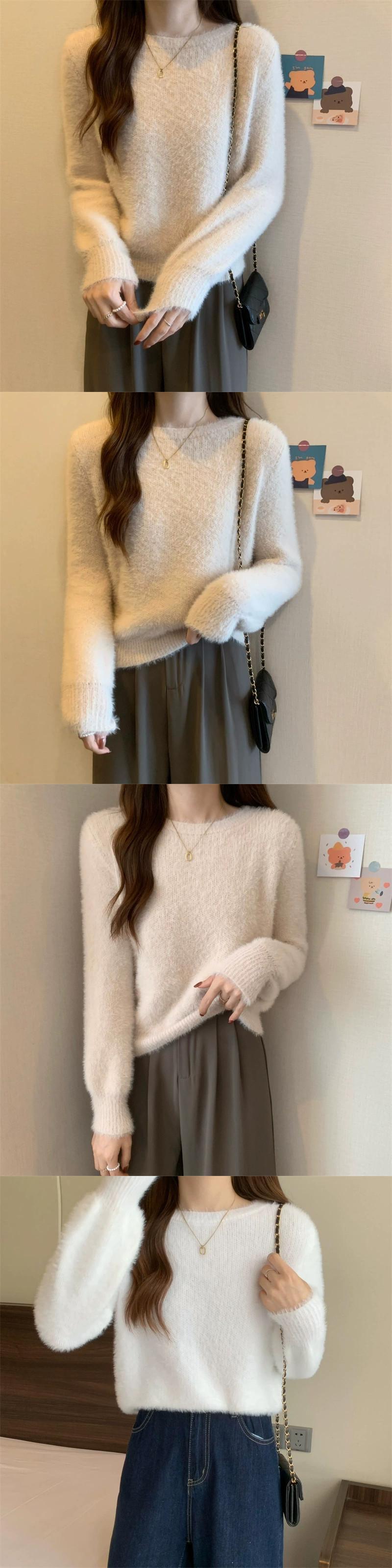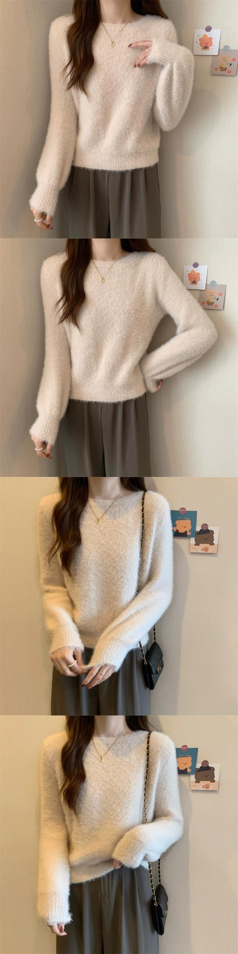 暖かく厚みのある模造ミンクベルベットセーター女性秋と冬のフレンチスタイルルーズアウターウェア怠惰なソフトワックスモヘアニットトップ ウィンター 冬物 746007300541075 | framboise21
