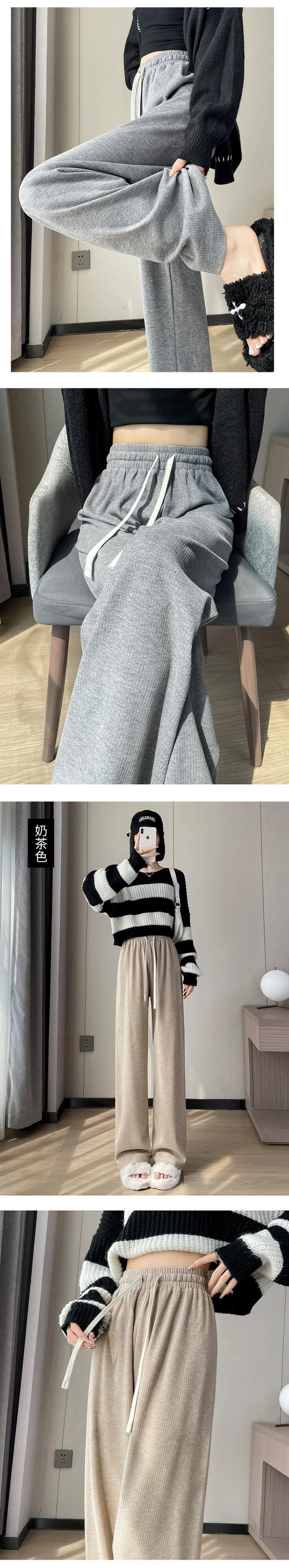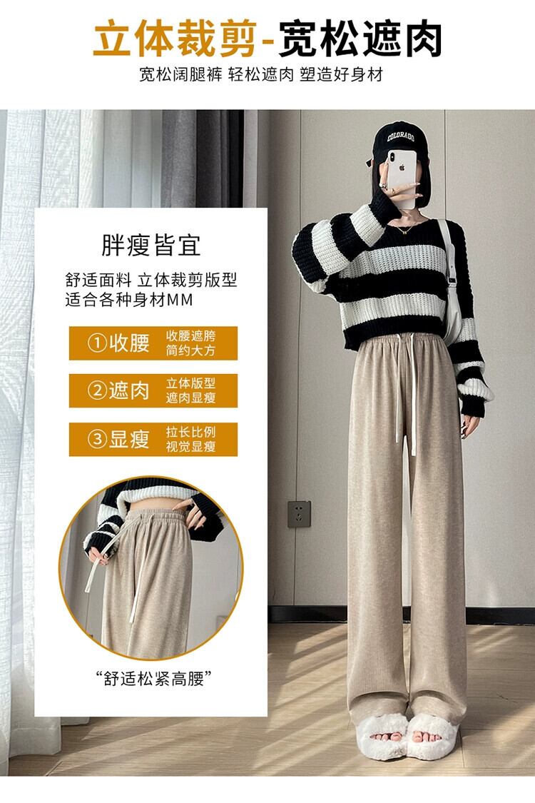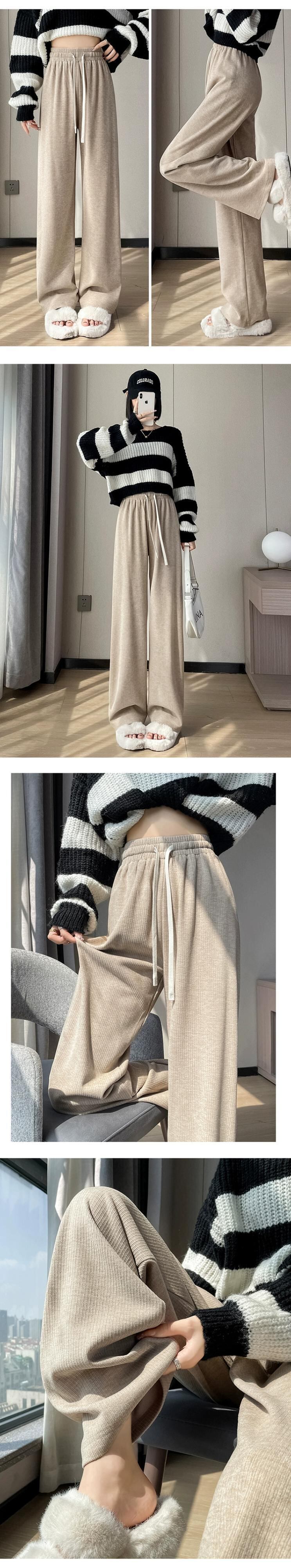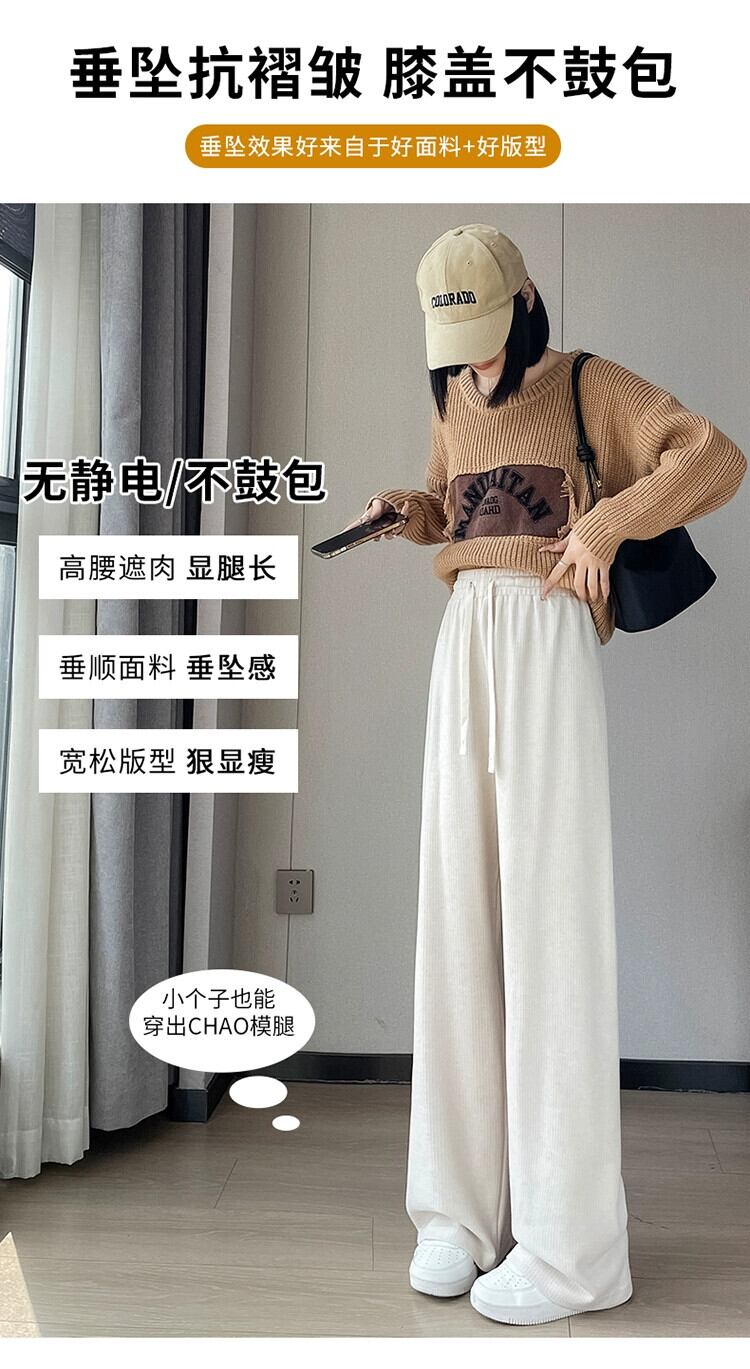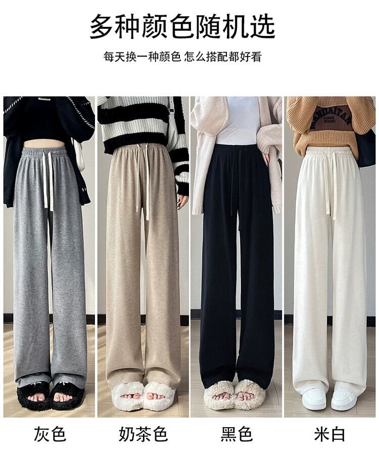 秋冬のカシミヤニットタオルワイドレッグパンツレディース、怠惰なスタイルのハイウエストドレープフロアレングスベルベット厚みのあるカジュアルパンツ オータム 秋物 ウィンター 冬物 7460049753122523 | framboise21