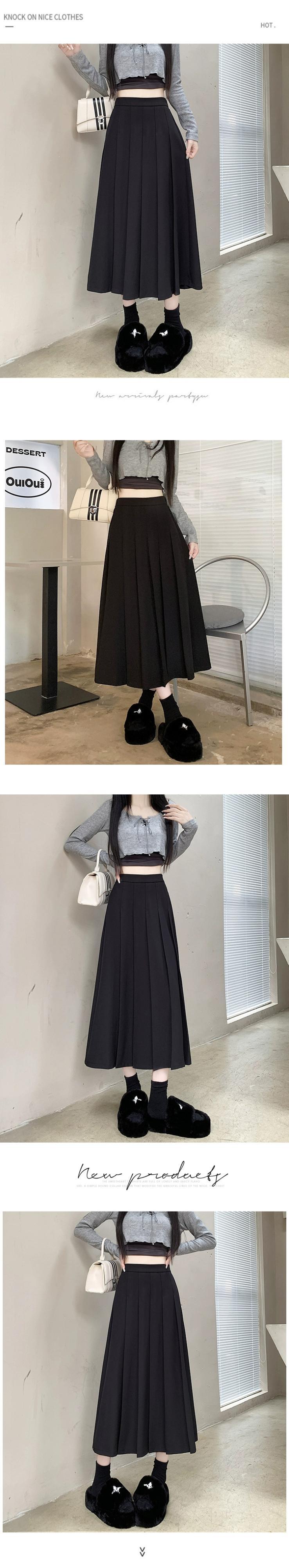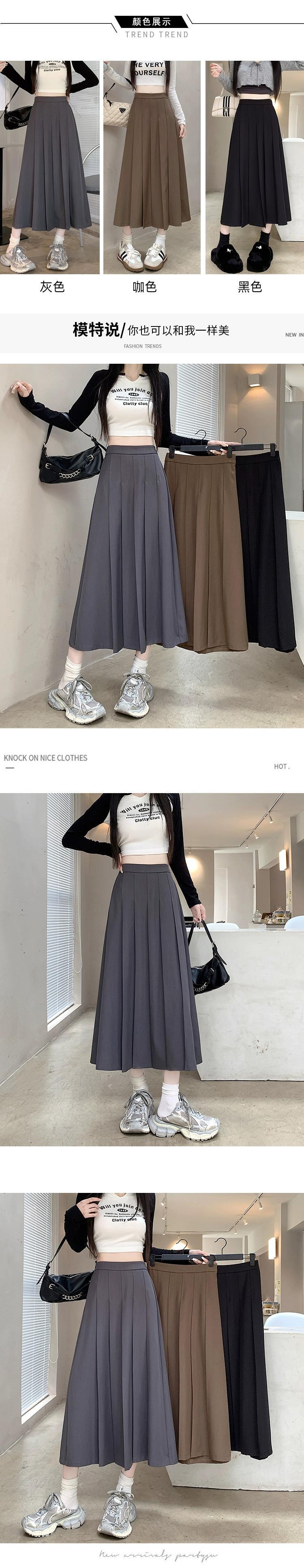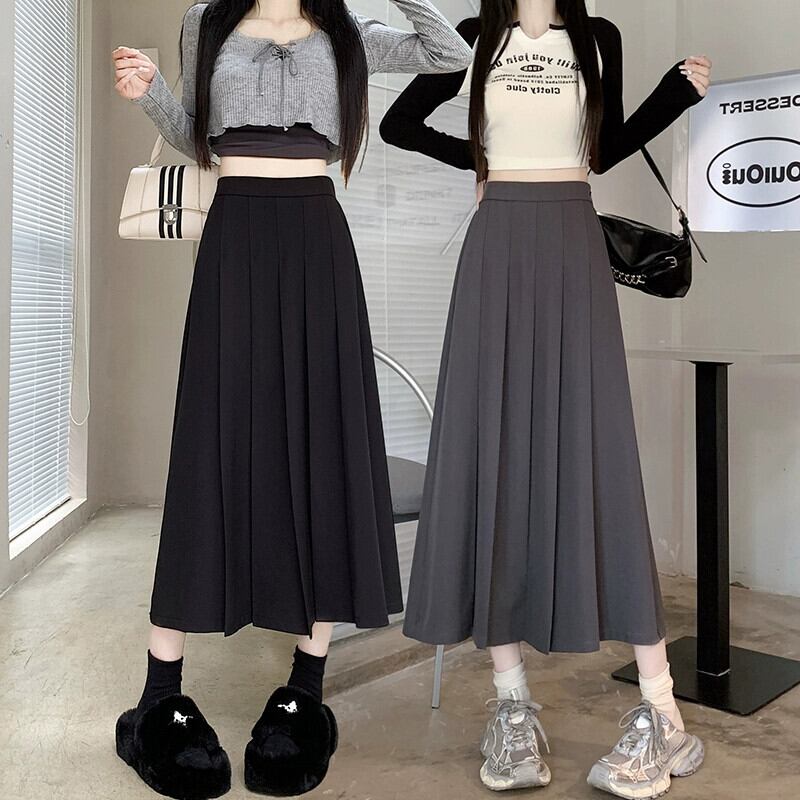 2023 新しい秋と冬の黒プリーツスカート女性クロスボディ痩身とドレープミッドレングス A ラインハイウエストスーツスカート ブラック オータム 秋物 ウィンター 冬物 Aライン 7460062848512054 | framboise21