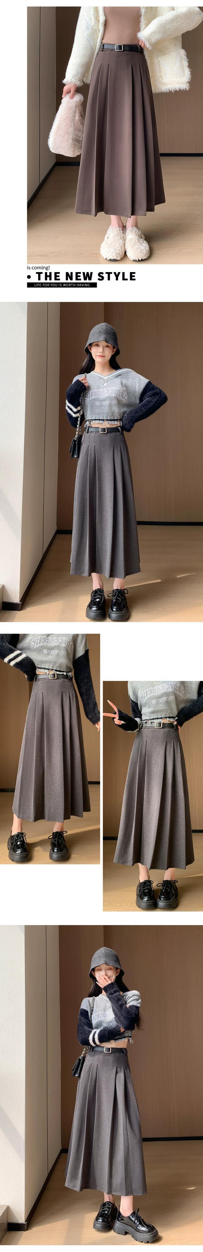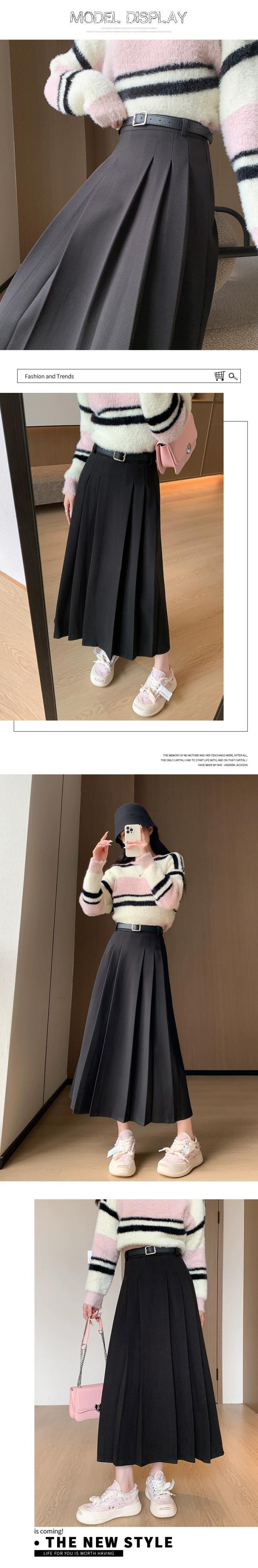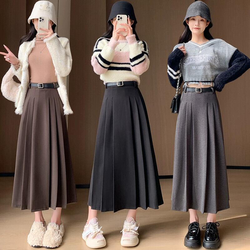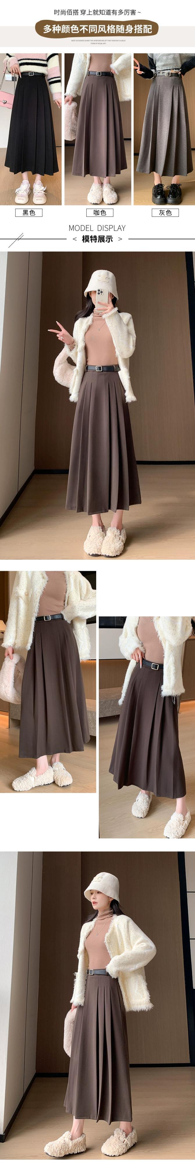 黒のウールのスカートの女性の秋と冬の新しいスタイルのハイエンドプリーツスカートカジュアル痩身多用途 A ラインハイウエストロングスカート ブラック オータム 秋物 ウィンター 冬物 Aライン 7460075585983100 | framboise21