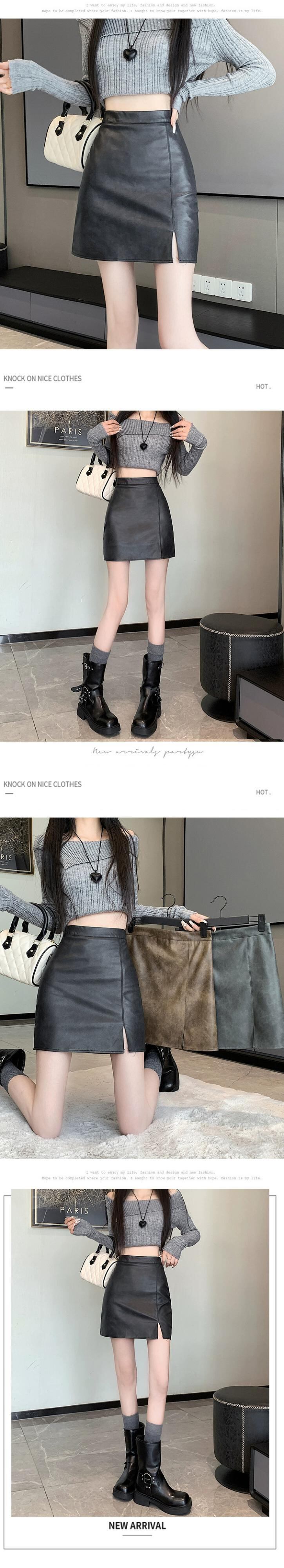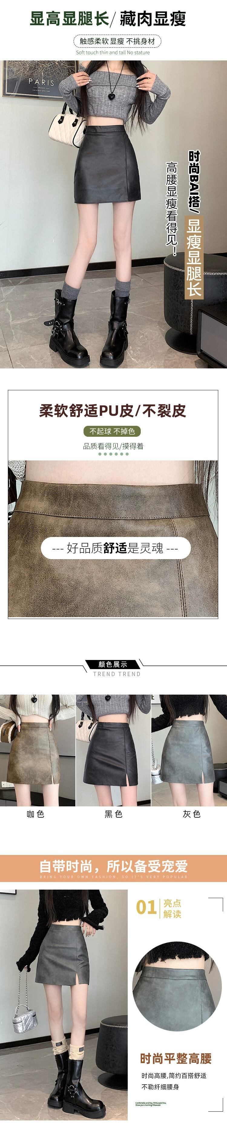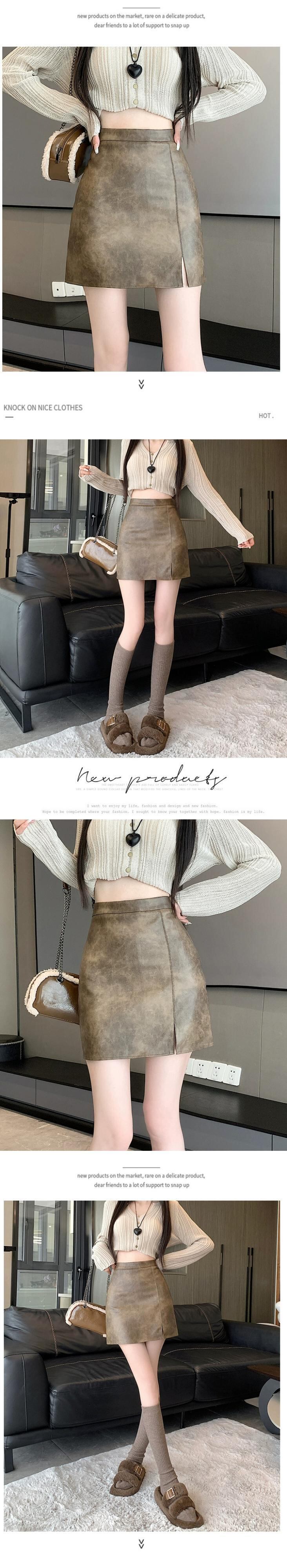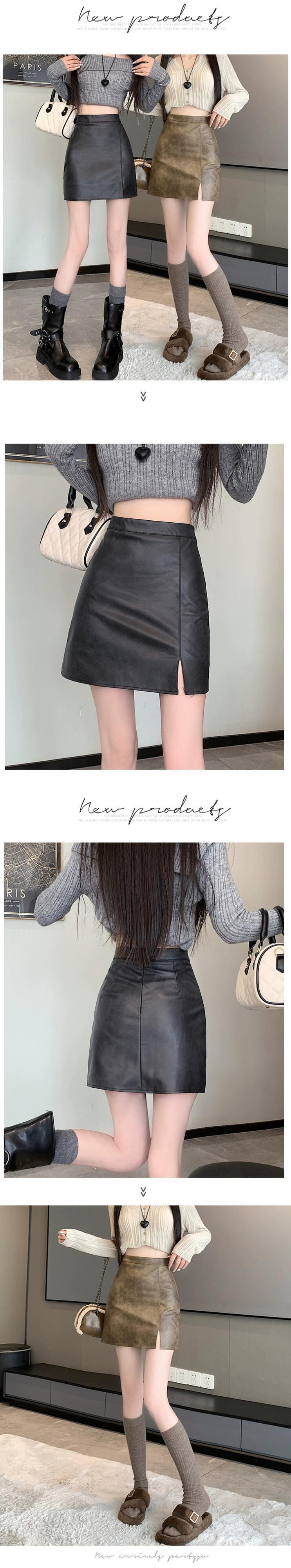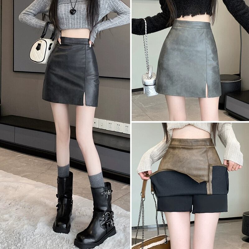 ブラウン pu レザースカート女性の秋と冬のハイウエストヒップスカートレトロスリム多用途スリットレザースカート A ラインスカート ハイウェスト オータム 秋物 ウィンター 冬物 Aライン 7460031149023090 | framboise21