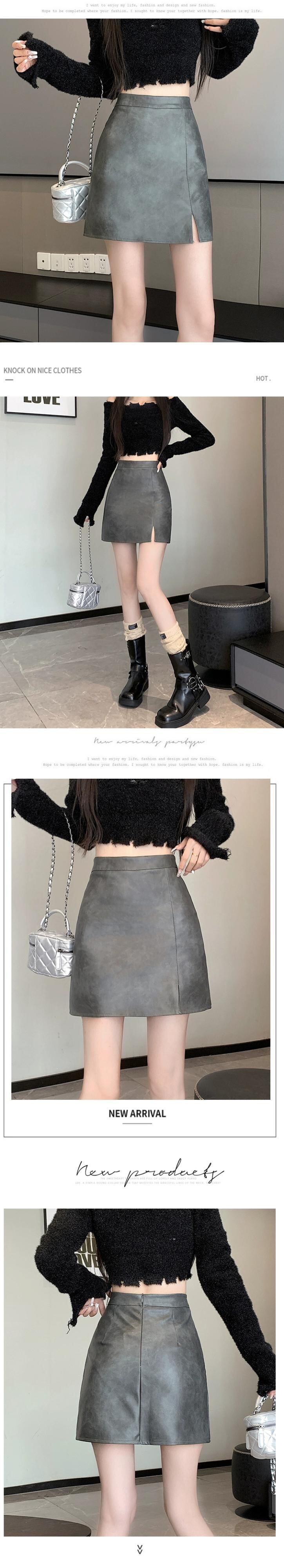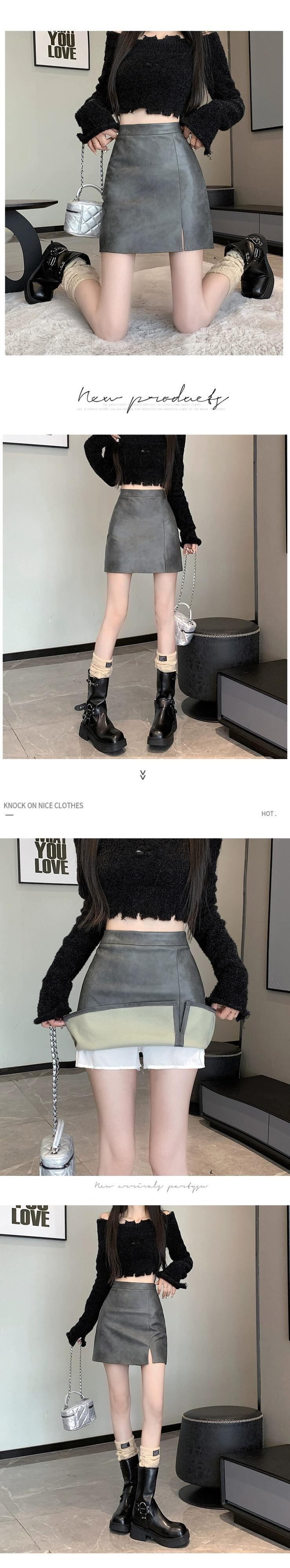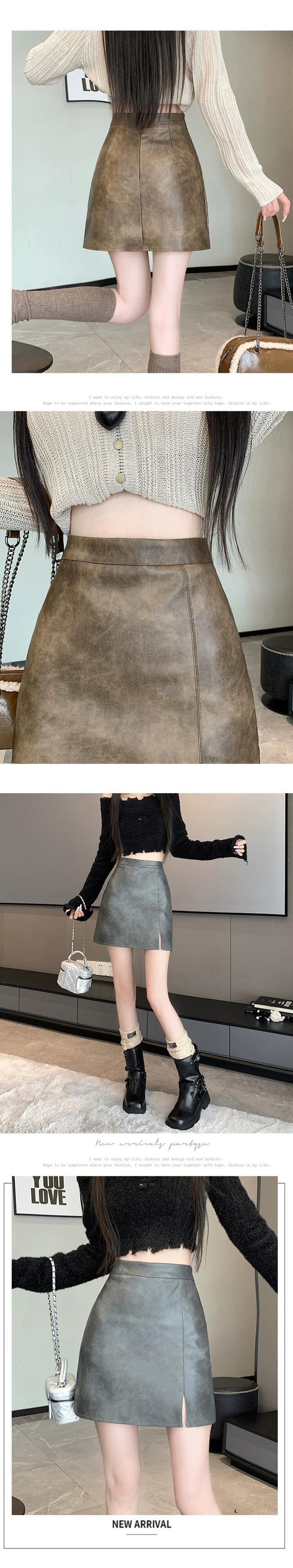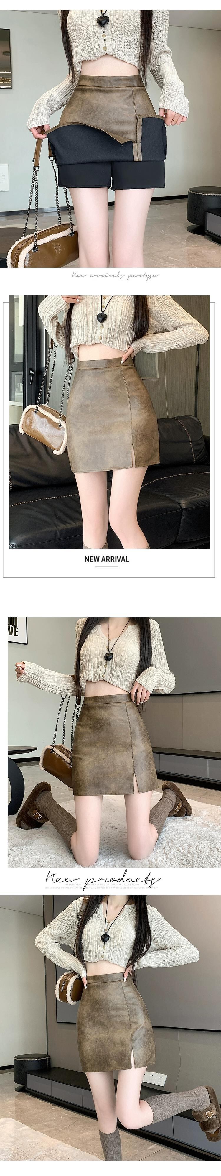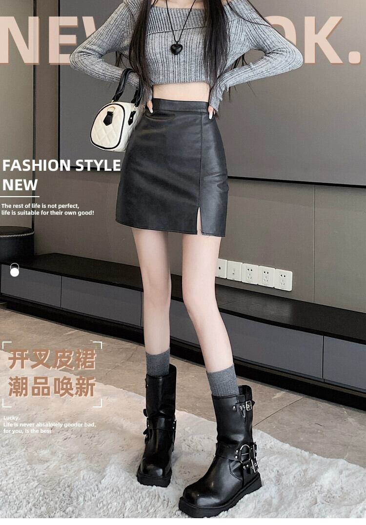 ブラウン pu レザースカート女性の秋と冬のハイウエストヒップスカートレトロスリム多用途スリットレザースカート A ラインスカート ハイウェスト オータム 秋物 ウィンター 冬物 Aライン 7460031149023090 | framboise21