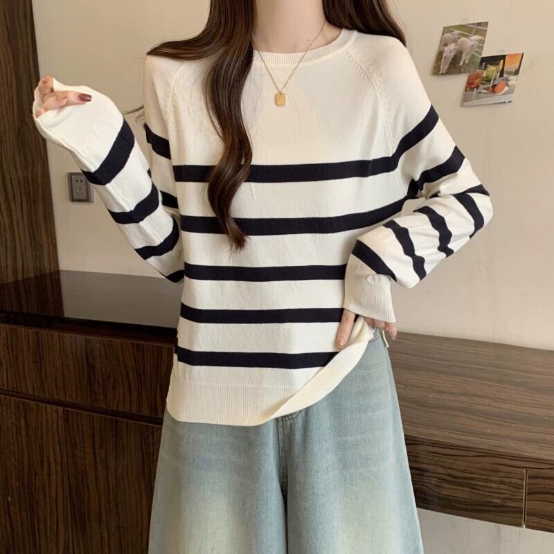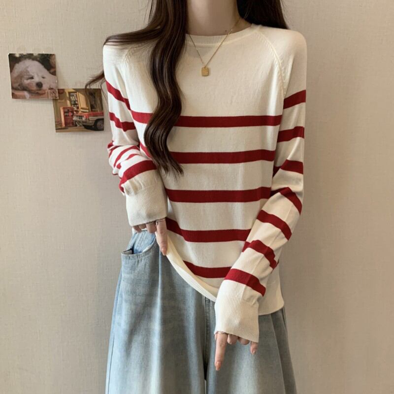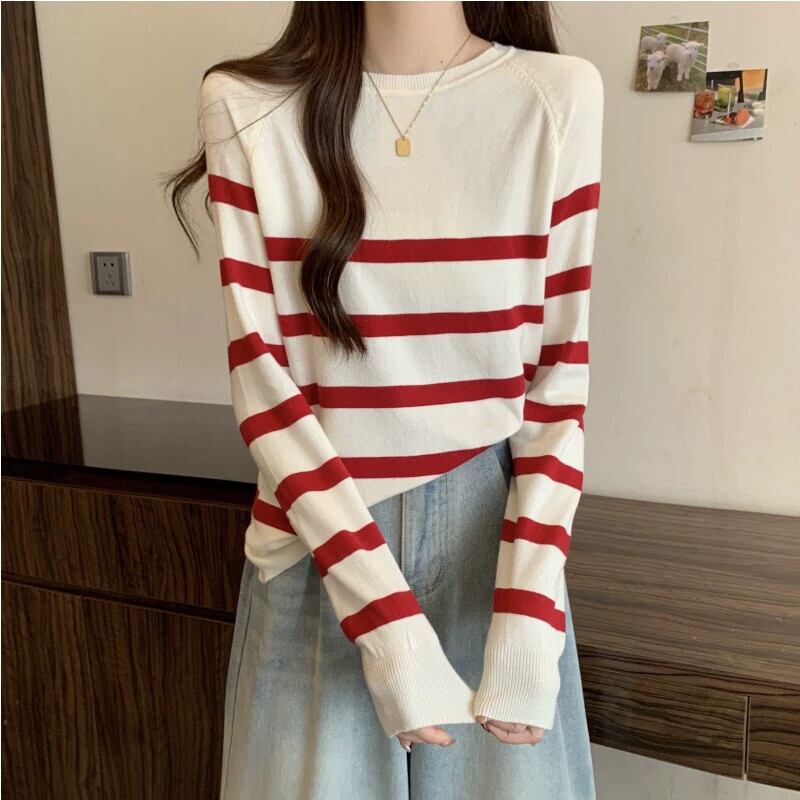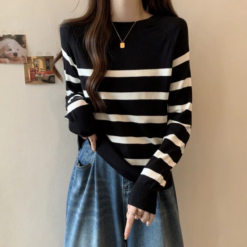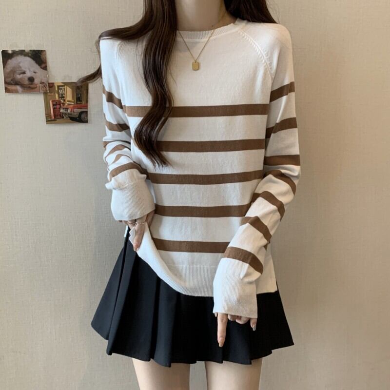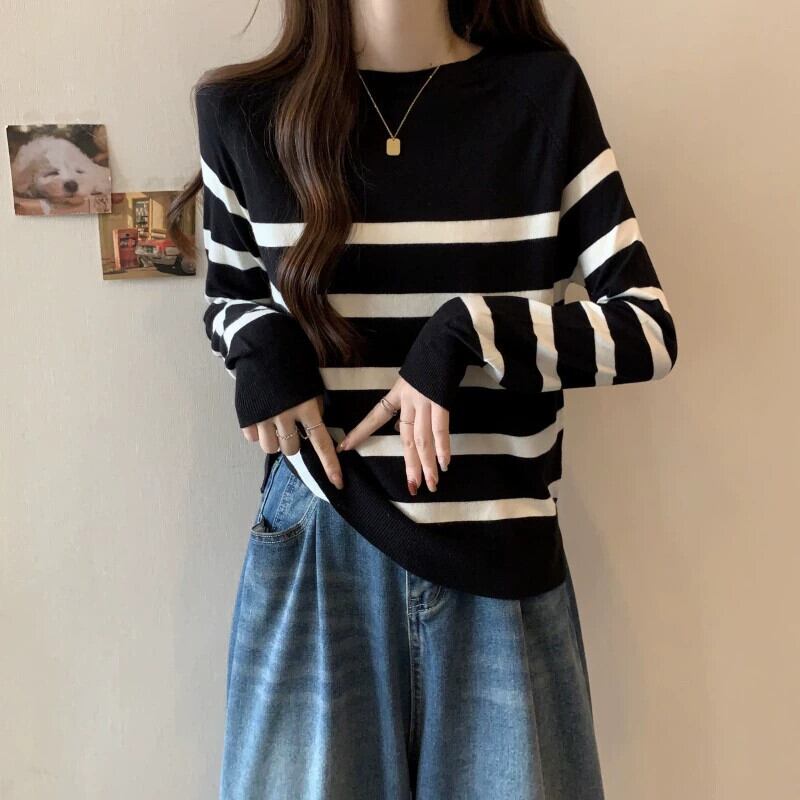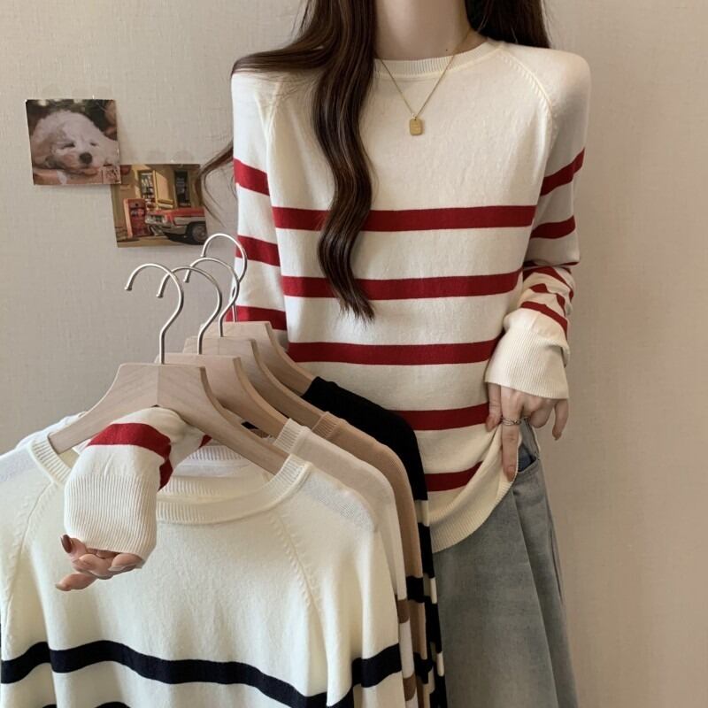 カラーブロックストライプボトミングシャツ 2023 新しい女性の秋と冬のスタイルのインナーセータールーズ痩身長袖セーター ロング オータム 秋物 ウィンター 冬物 7460099286142058 | framboise21
