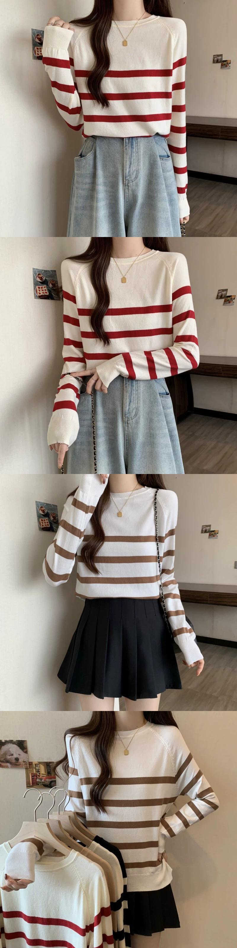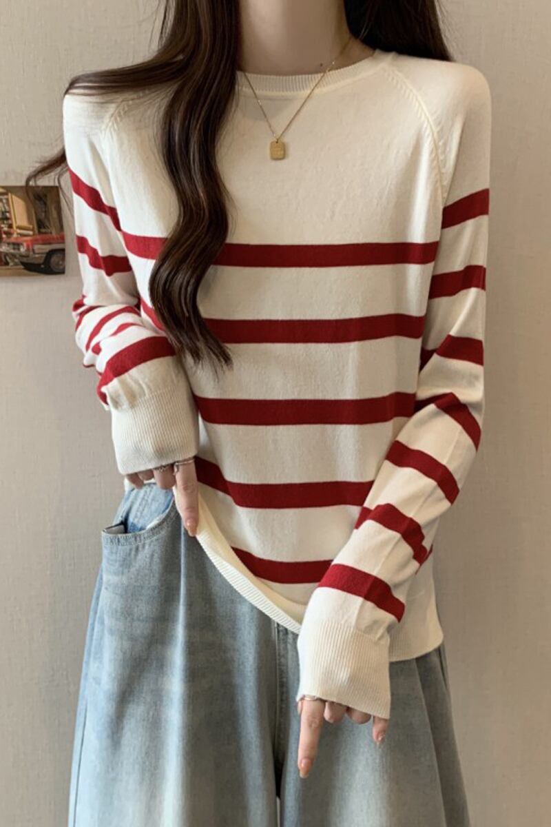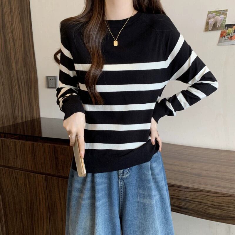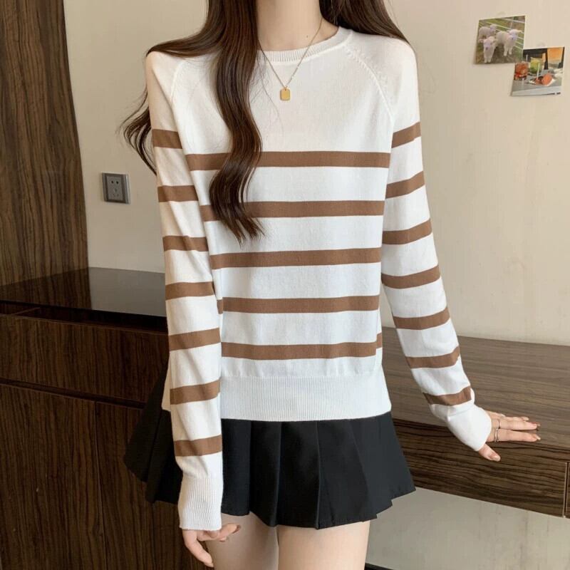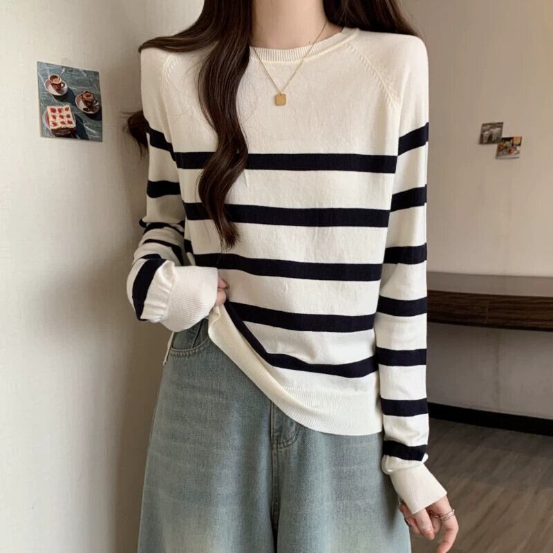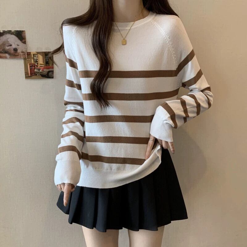 カラーブロックストライプボトミングシャツ 2023 新しい女性の秋と冬のスタイルのインナーセータールーズ痩身長袖セーター ロング オータム 秋物 ウィンター 冬物 7460099286142058 | framboise21