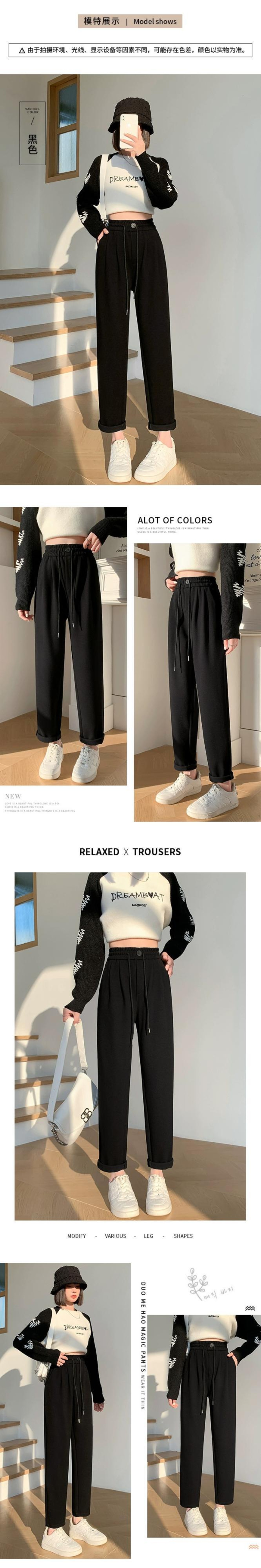 秋と冬の黒のカシミアカジュアルパンツの女性、ルーズでカジュアル、スリム、ハイウエスト、厚みのあるウールの9分ナローバージョンストレートパンツ ブラック オータム 秋物 ウィンター 冬物 7460070829883974