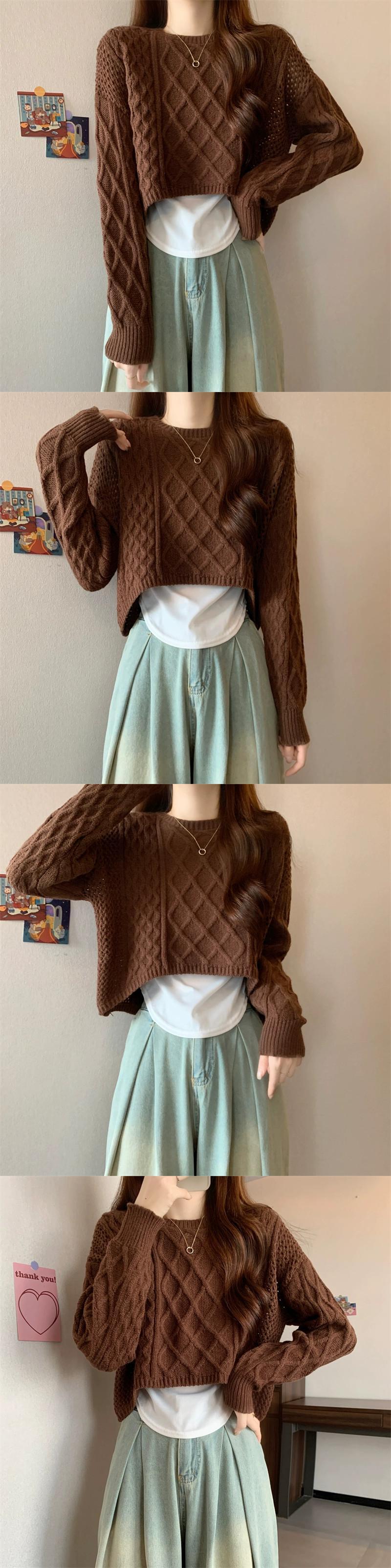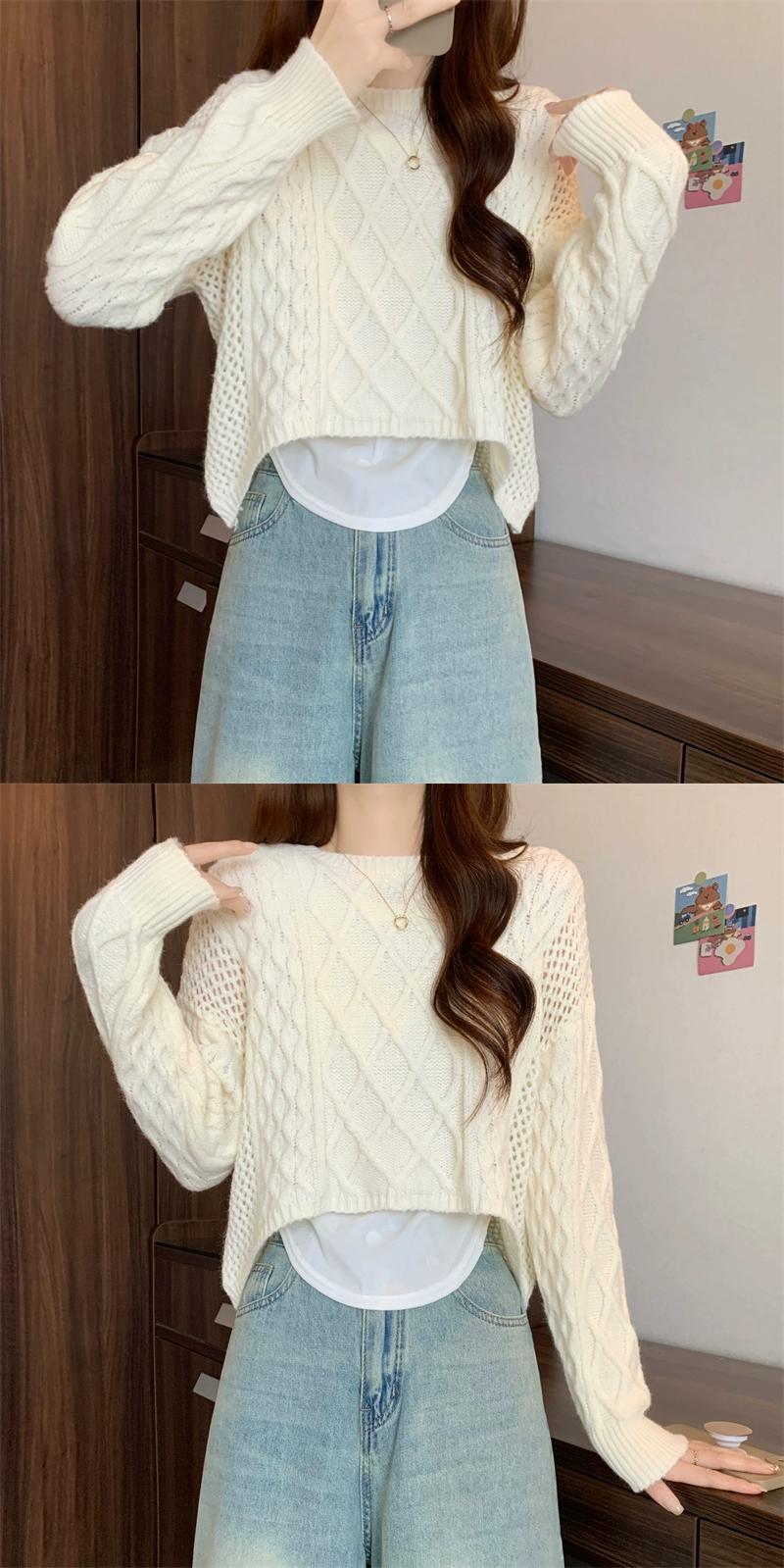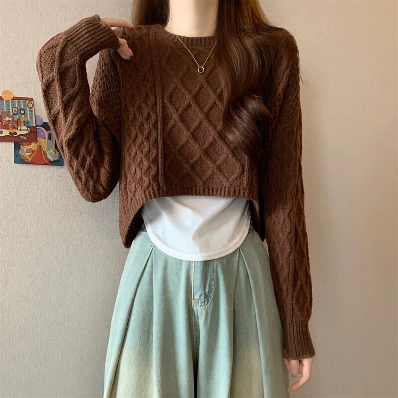 小さなハイウエストショートツイストセーター女性の秋と冬のファッションデザインルーズアウターウェア中空長袖セーター ロング オータム 秋物 ウィンター 冬物 7460063127529333 | framboise21