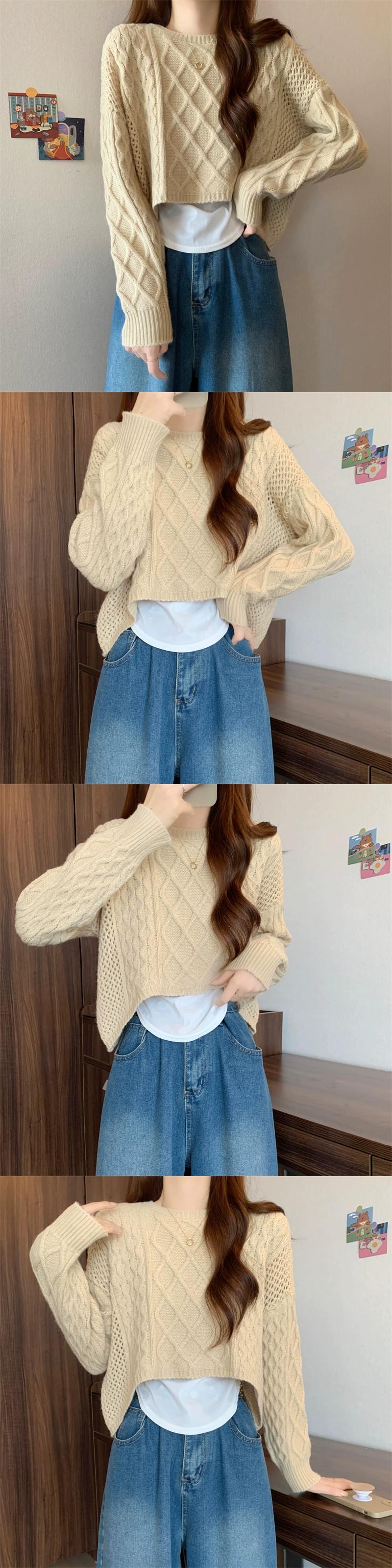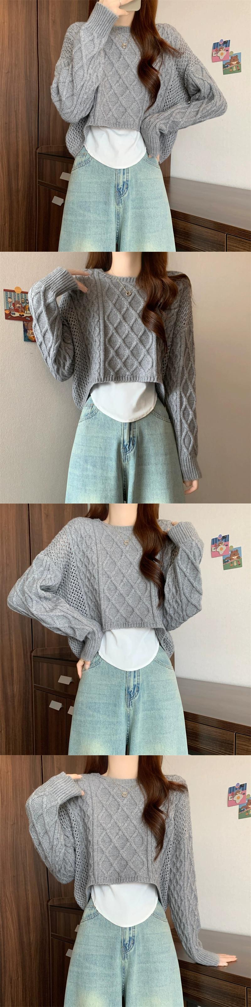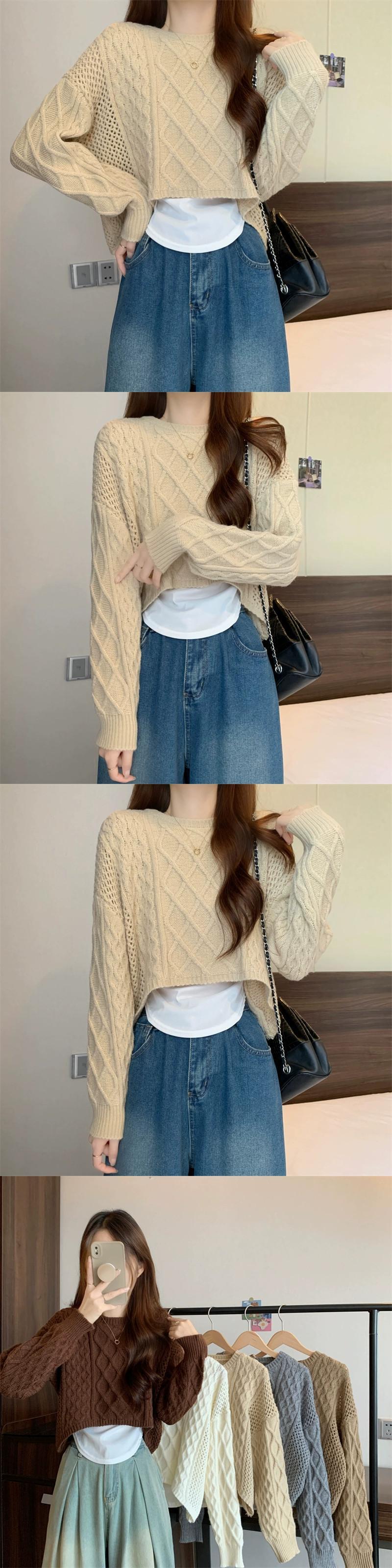 小さなハイウエストショートツイストセーター女性の秋と冬のファッションデザインルーズアウターウェア中空長袖セーター ロング オータム 秋物 ウィンター 冬物 7460063127529333 | framboise21