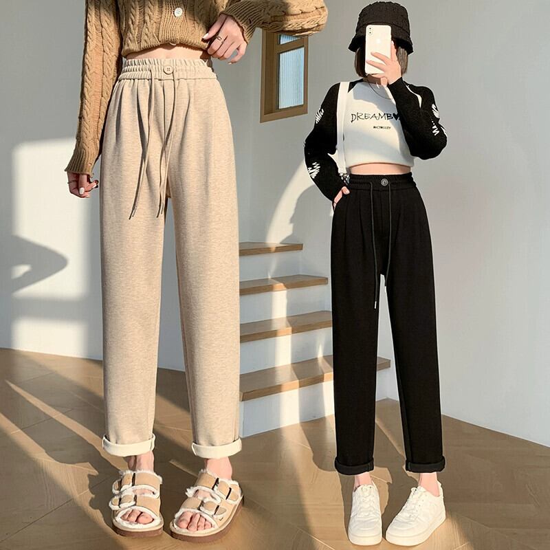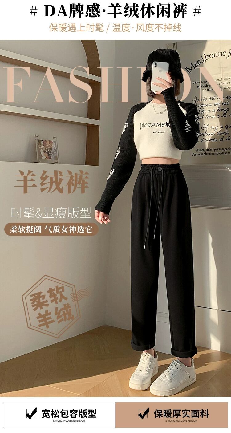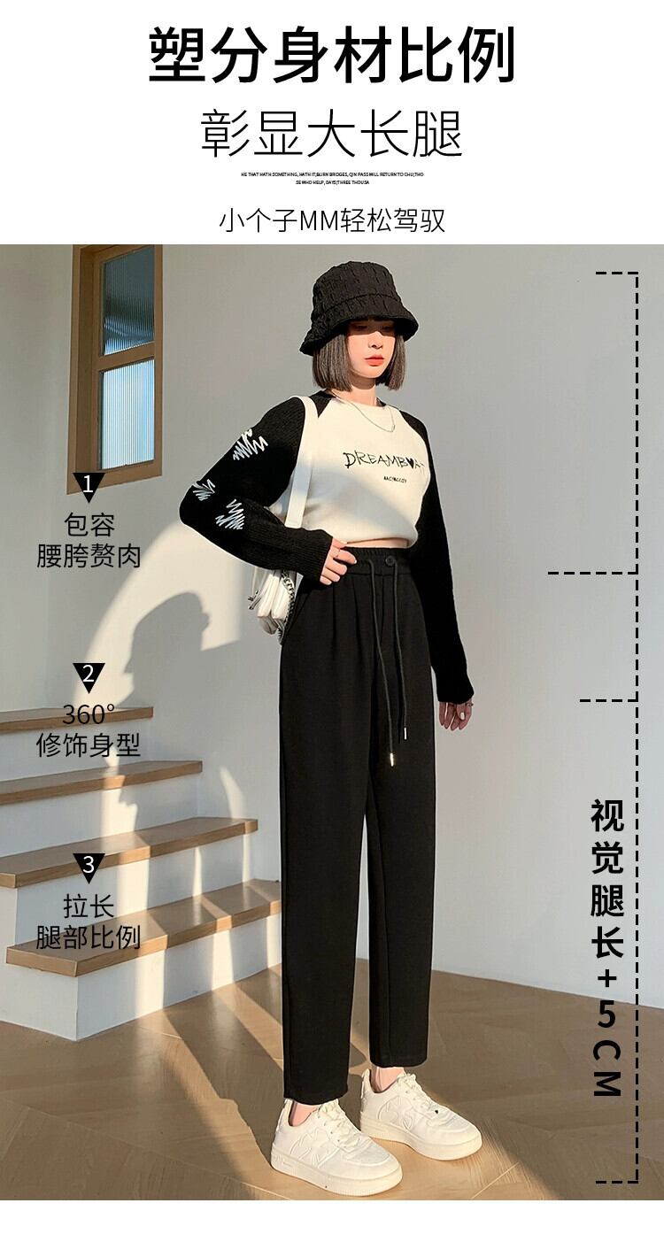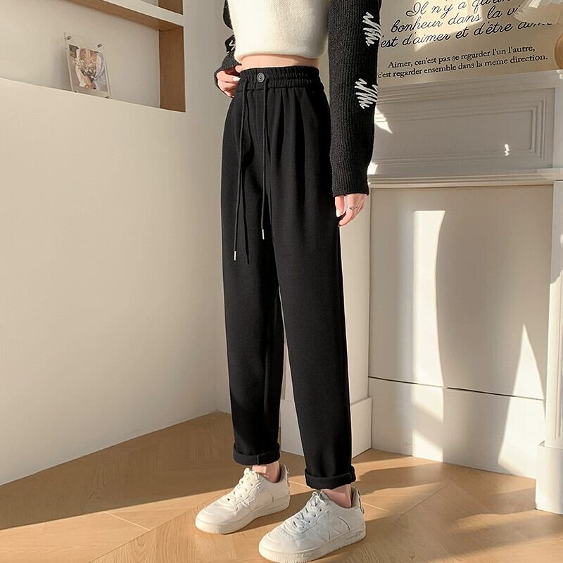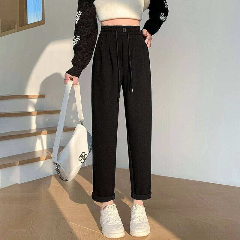 黒の厚みのあるウールパンツの女性、新しい秋冬の9点パンツ、小人、ハイウエスト、スリムカジュアルナローバージョンストレートパンツ ハイウェスト ブラック オータム 秋物 ウィンター 冬物 7460013232349213 | framboise21