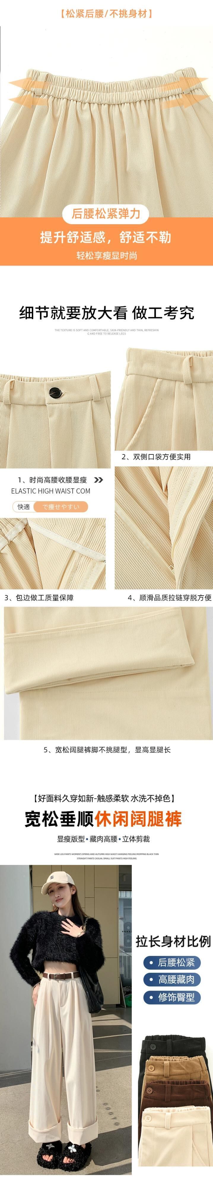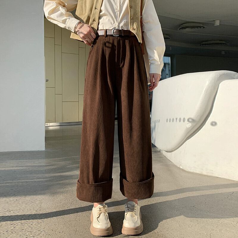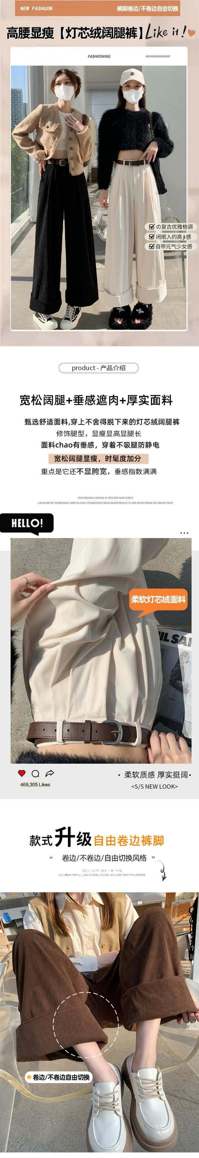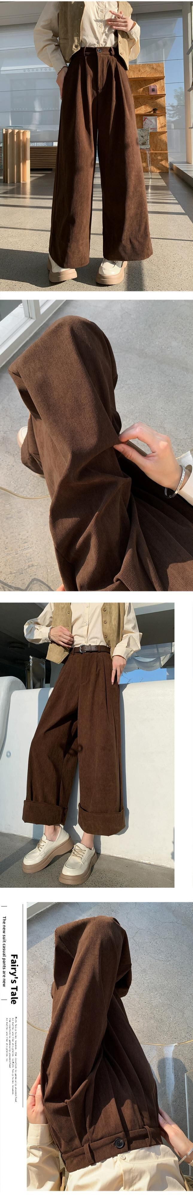カールコーデュロイワイドレッグパンツレディース、秋冬ハイウエストコーデュロイパンツ、ルーズで多用途、スリム、ハイウエストカジュアルパンツ オータム 秋物 ウィンター 冬物 7460042775427695 | framboise21