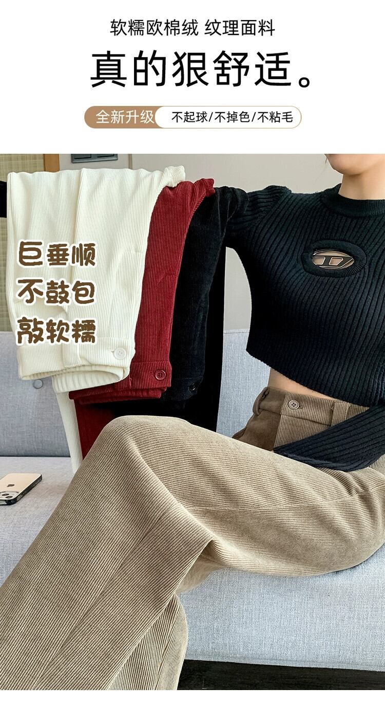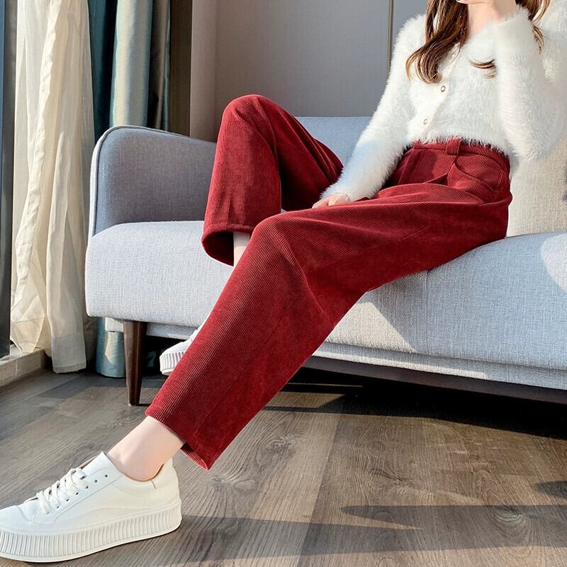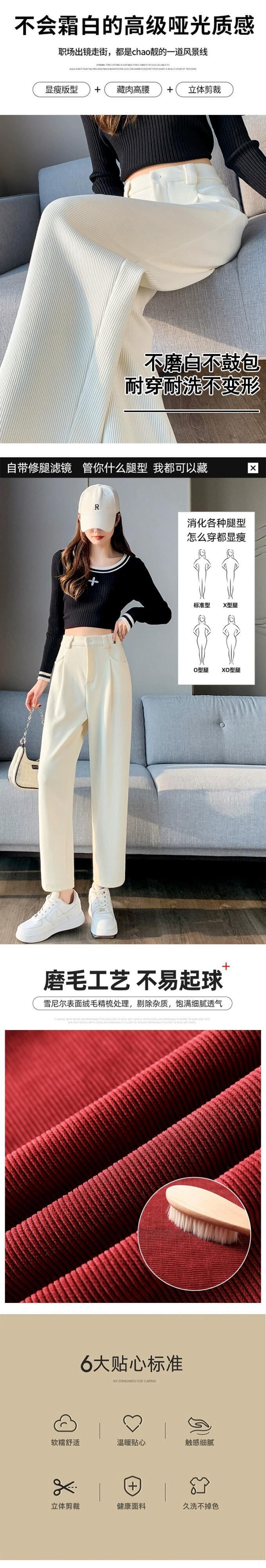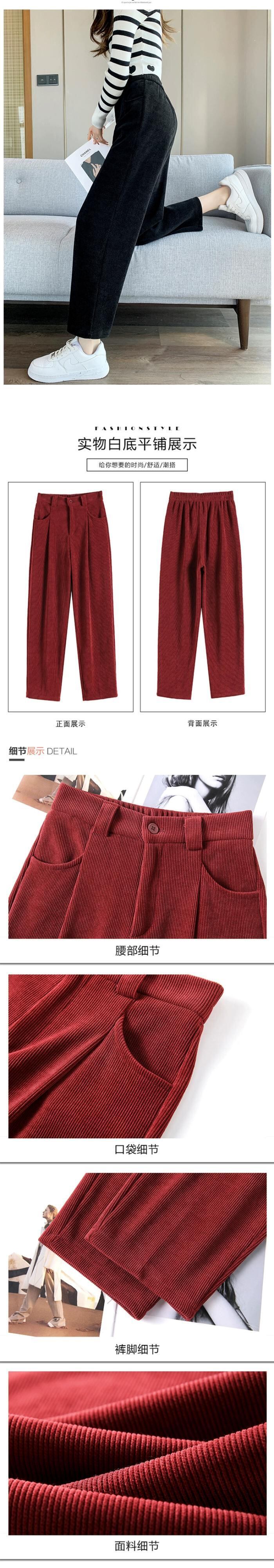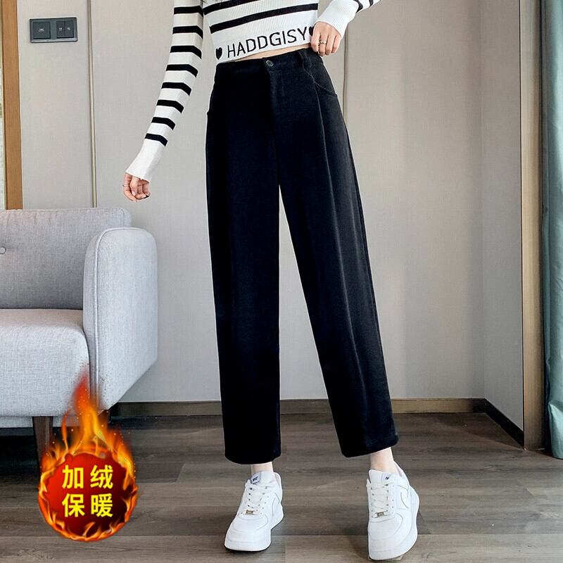 コーデュロイカジュアルパンツ女性の秋と冬の新しいナローバージョン9ポイントストレートパンツルーズ痩身ハイウエストプラスベルベットスーツパンツ ハイウェスト オータム 秋物 ウィンター 冬物 7460074058532935 | framboise21