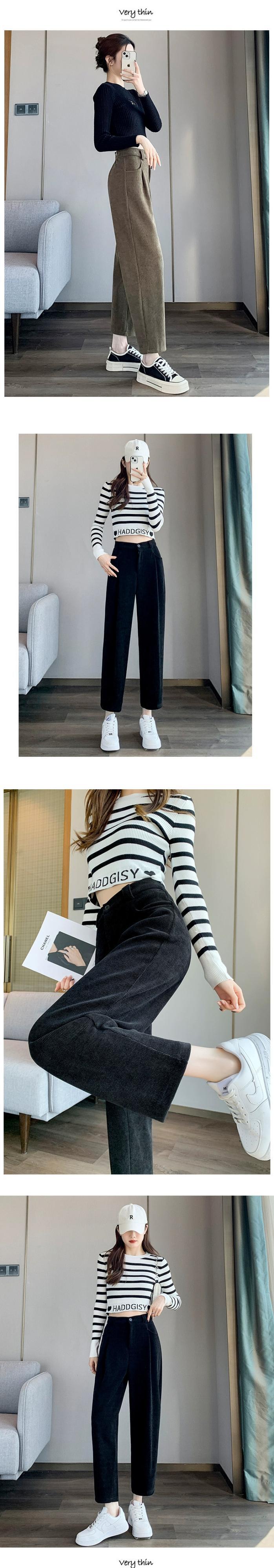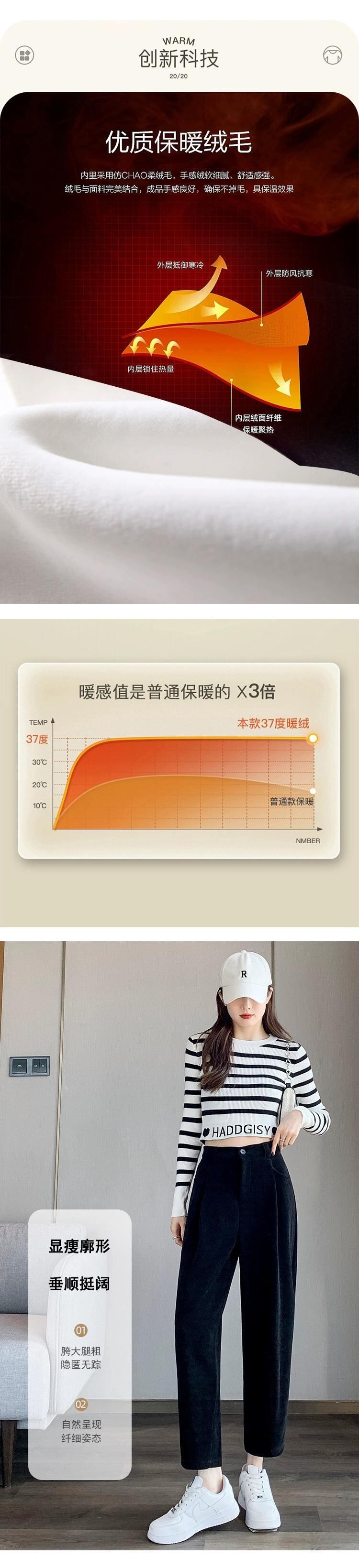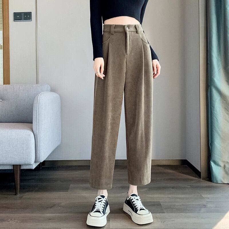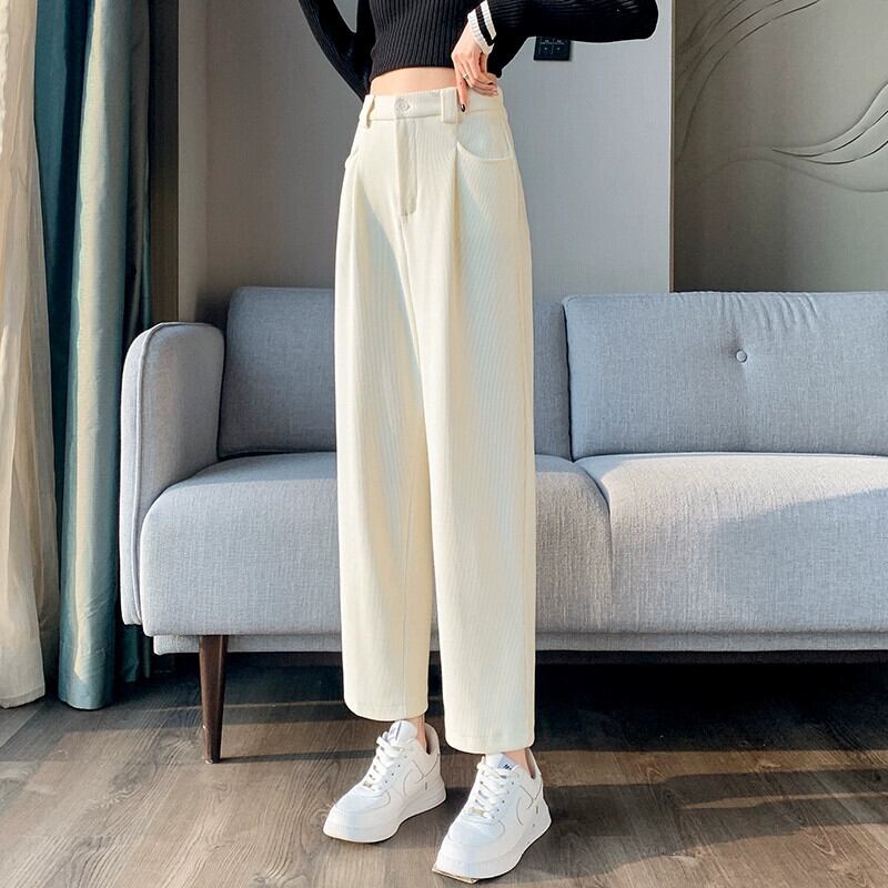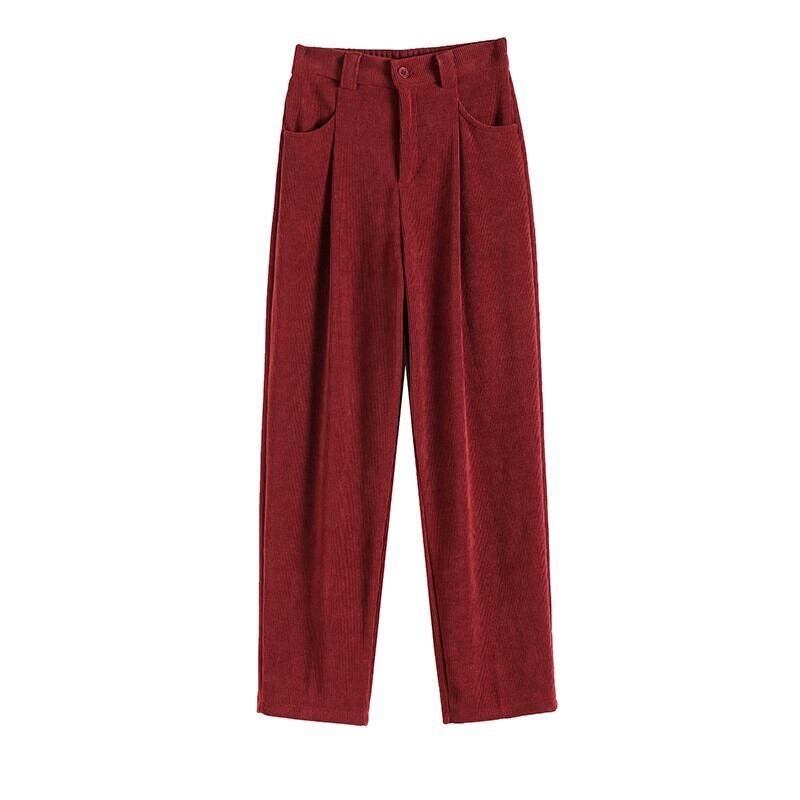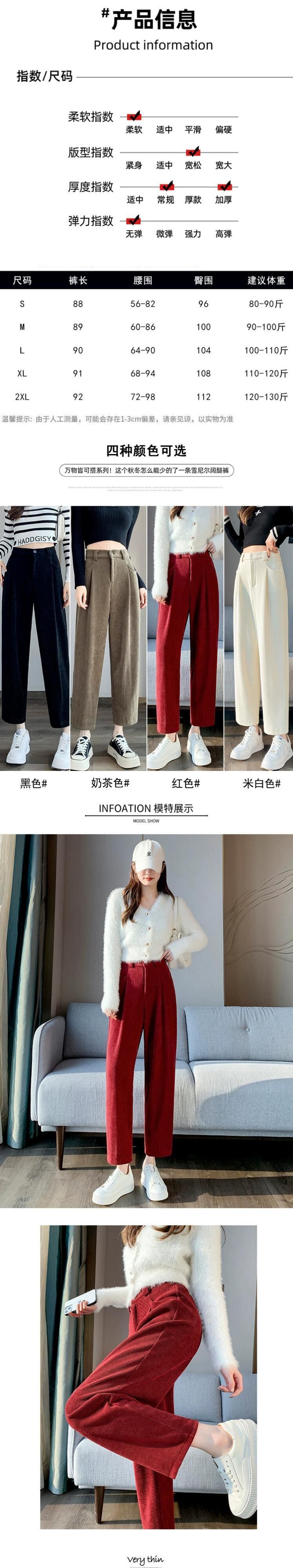 コーデュロイカジュアルパンツ女性の秋と冬の新しいナローバージョン9ポイントストレートパンツルーズ痩身ハイウエストプラスベルベットスーツパンツ ハイウェスト オータム 秋物 ウィンター 冬物 7460074058532935 | framboise21