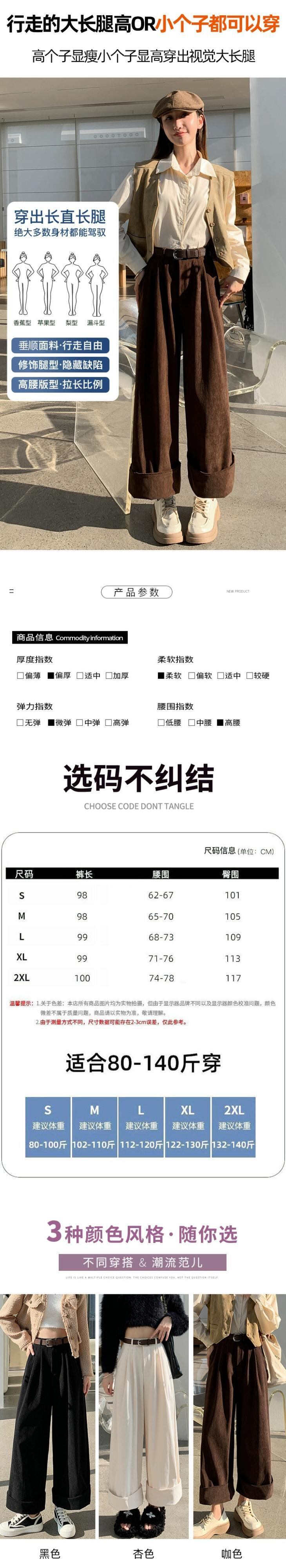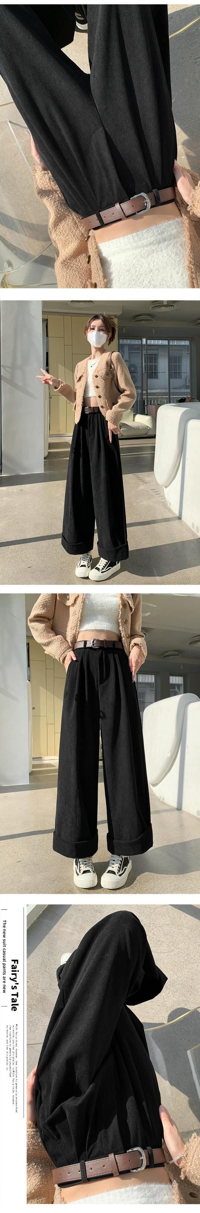 ブラックコーデュロイワイドレッグパンツレディース、2023年秋冬新作コーデュロイパンツ、怠惰、ルーズ、ドレープ、ハイウエストカジュアルパンツ オータム 秋物 ウィンター 冬物 7460082872160509 | framboise21