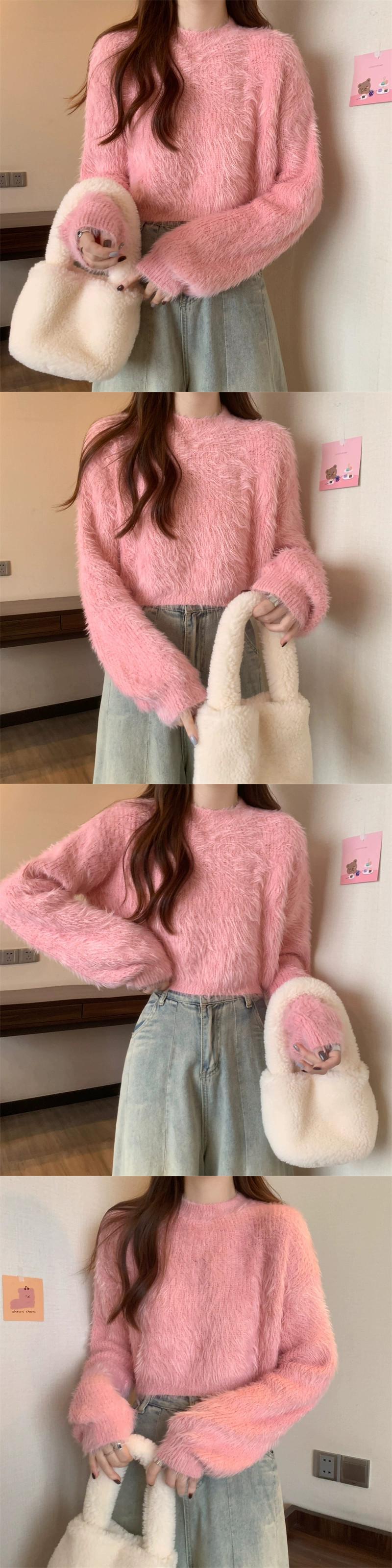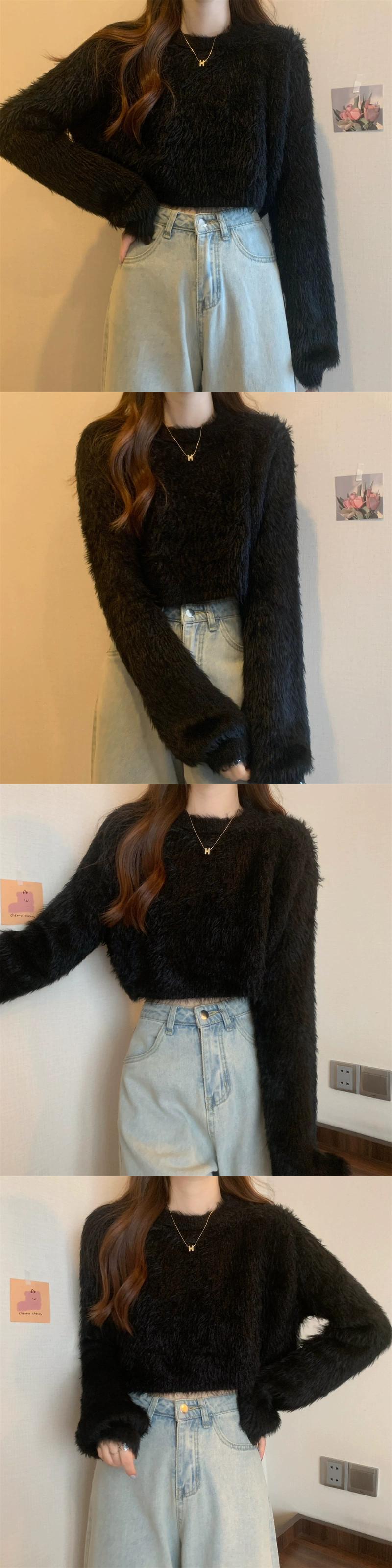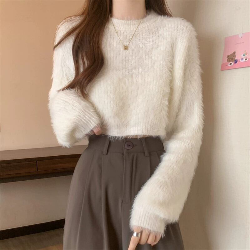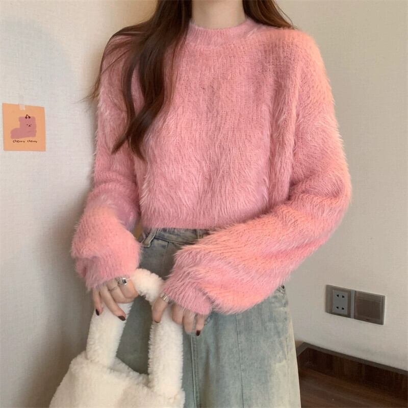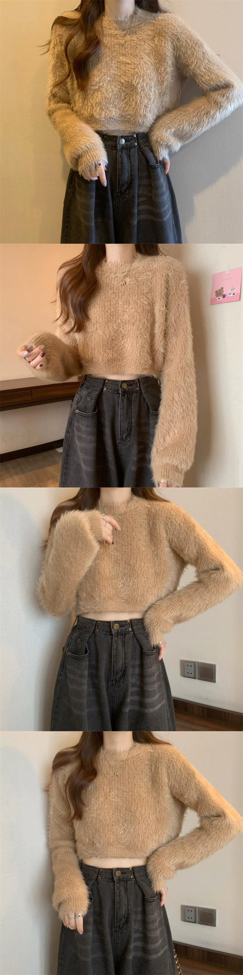 ソフトワックス状模造ミンクベルベットモヘアセーター女性秋と冬フランスルーズアウターウェア小さなハイウエストショートセーター ハイウェスト オータム 秋物 ウィンター 冬物 7460085962717797 | framboise21