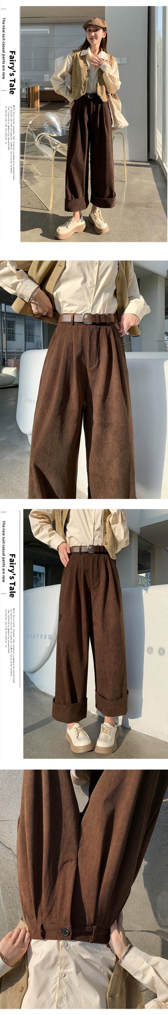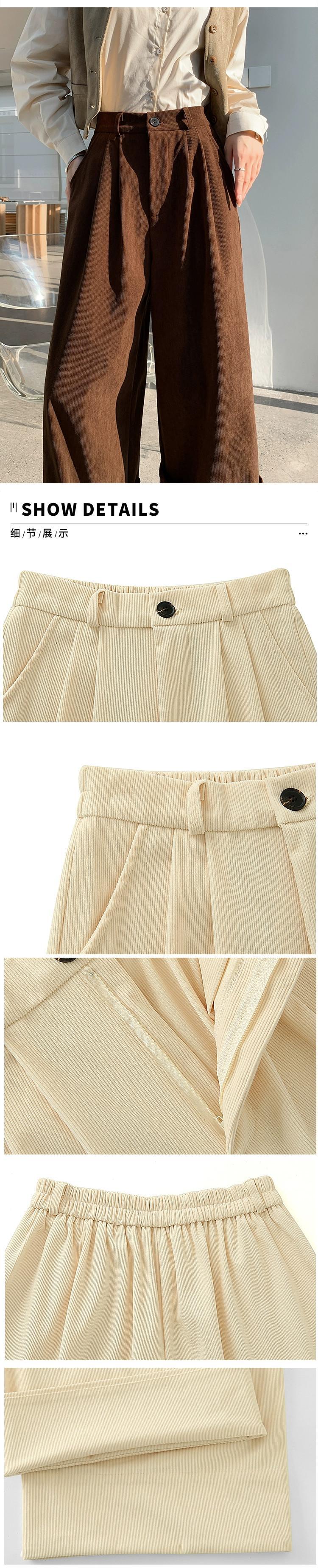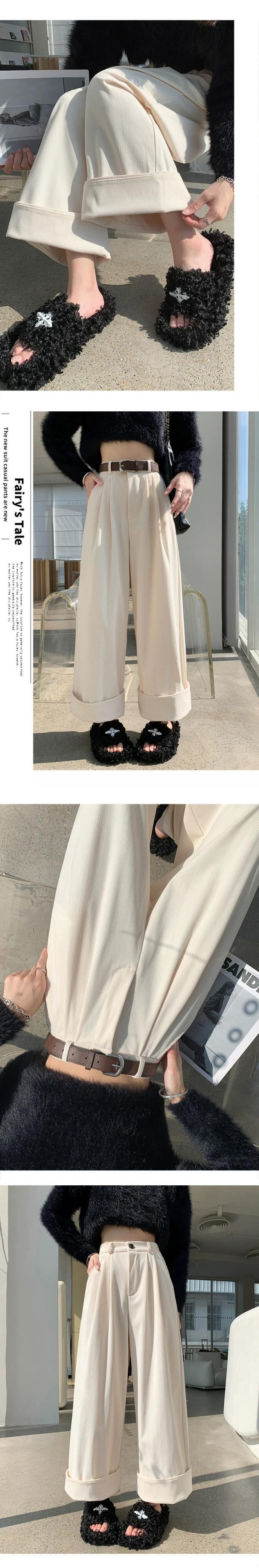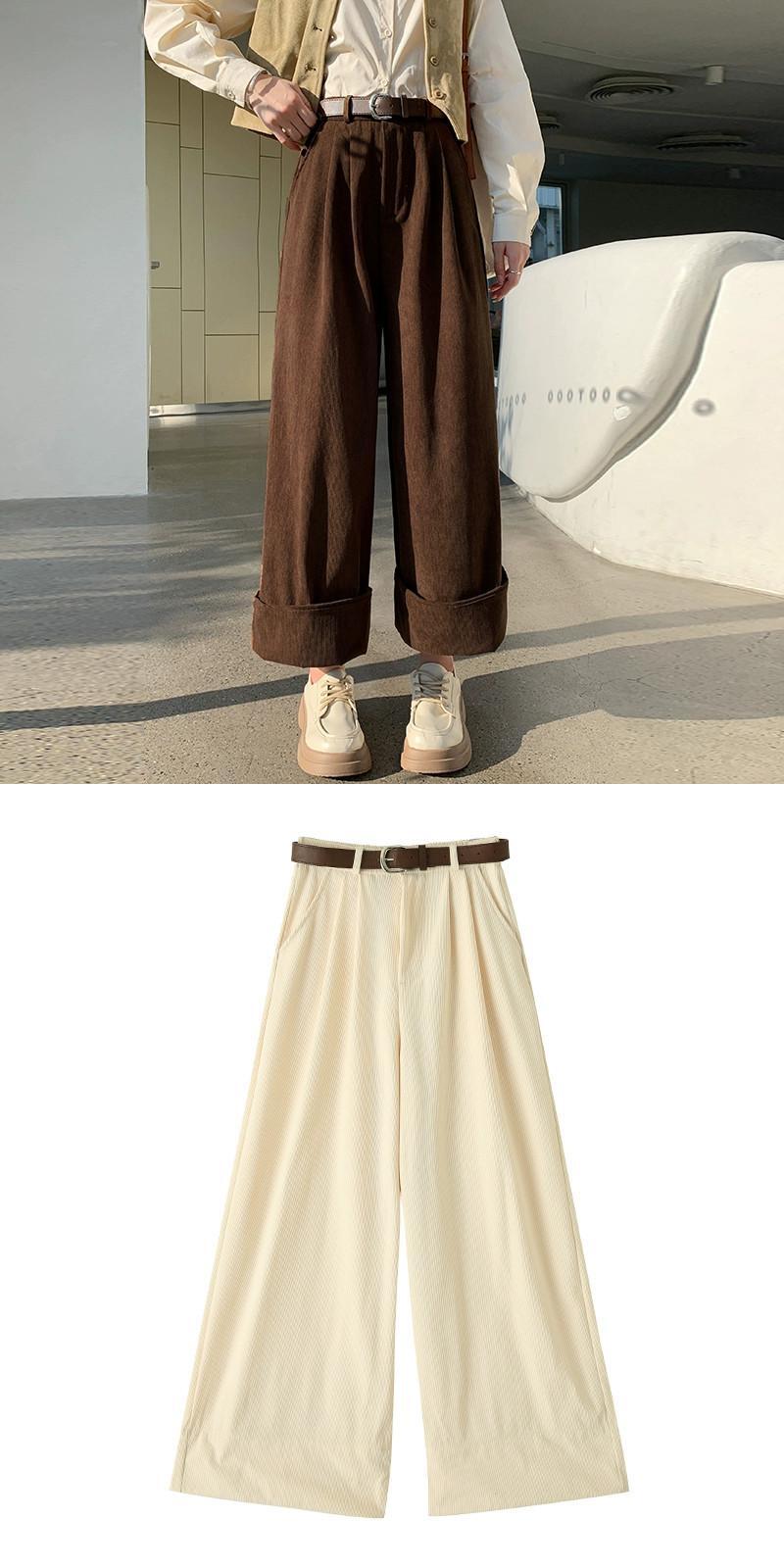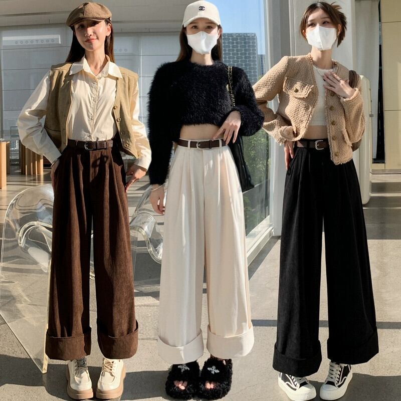 秋冬のオフホワイトシェニールワイドレッグパンツレディース、高級ドレープコーデュロイパンツ、ロールアップハイウエストカジュアルパンツレディース オータム 秋物 ウィンター 冬物 7460024320181461 | framboise21