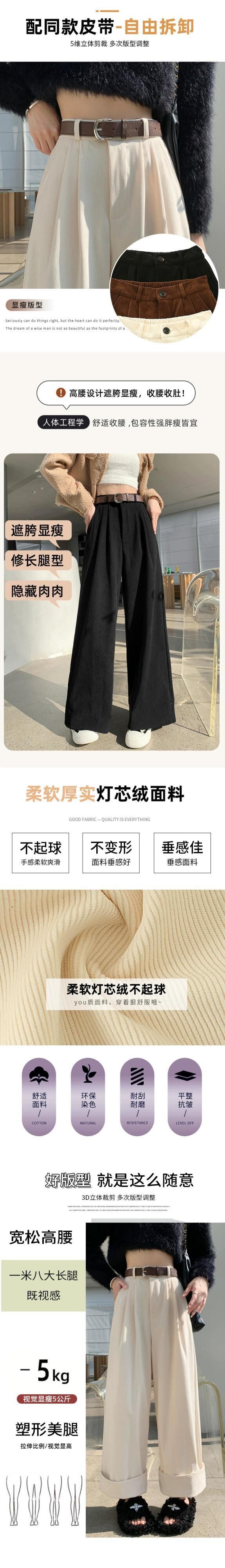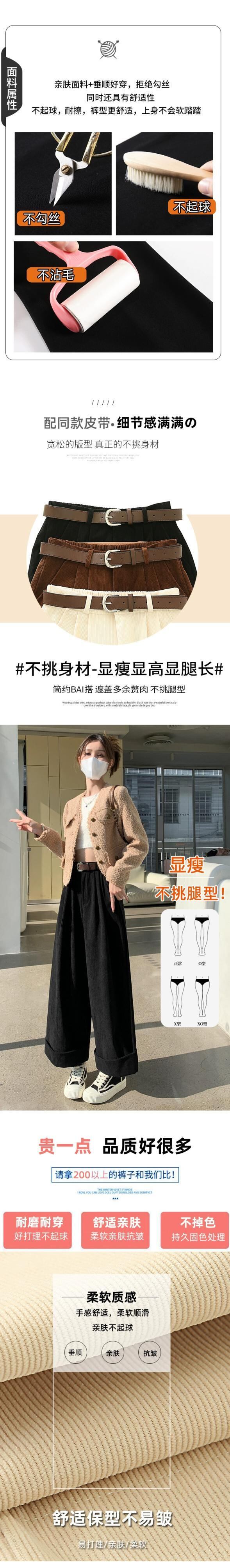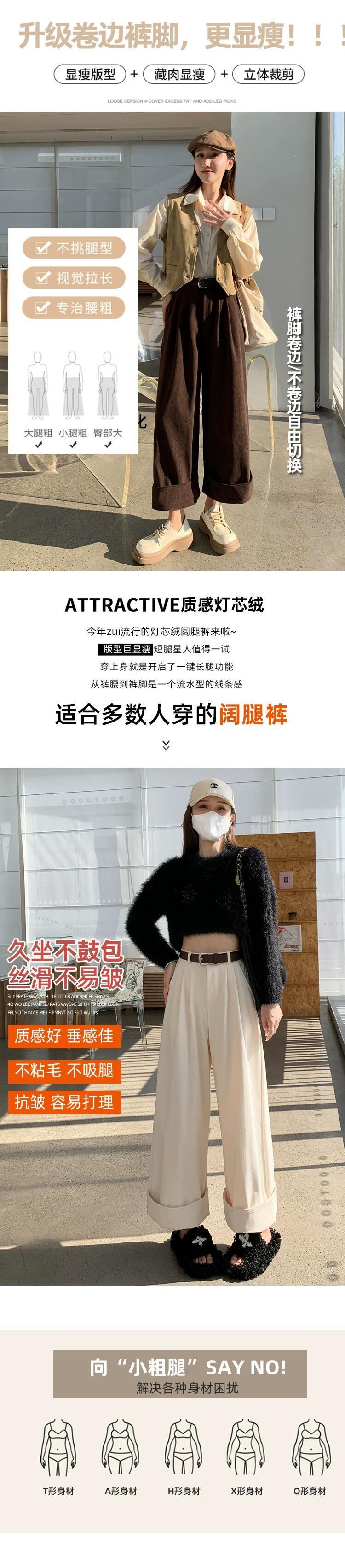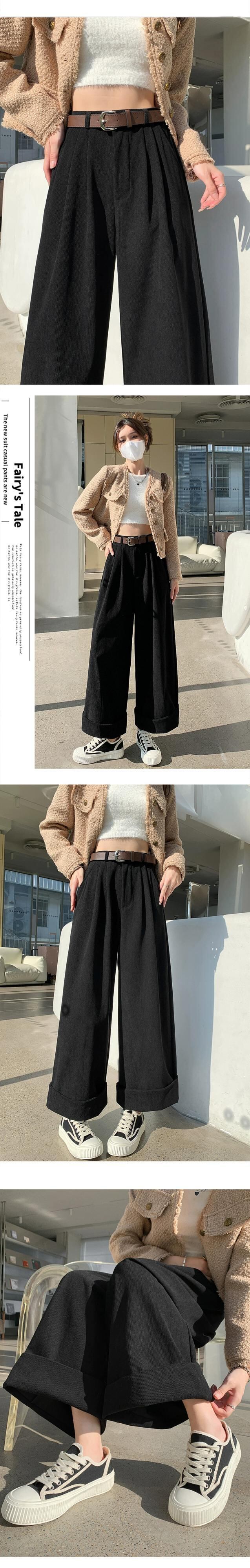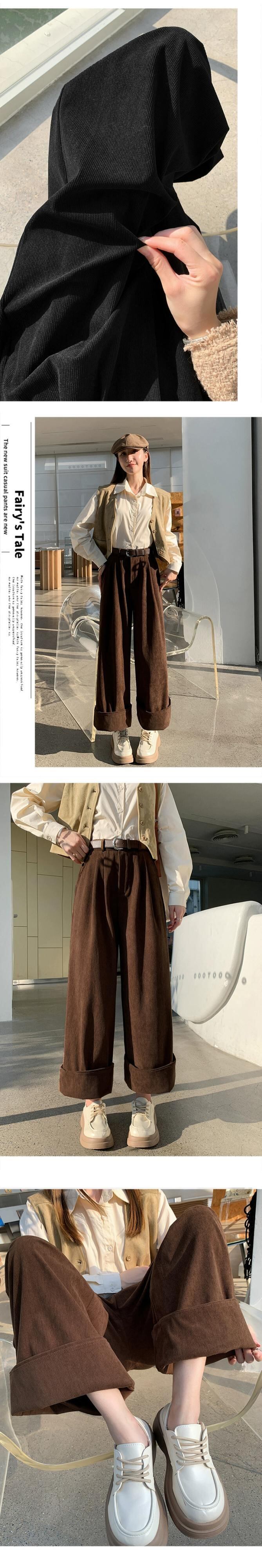 秋冬のオフホワイトシェニールワイドレッグパンツレディース、高級ドレープコーデュロイパンツ、ロールアップハイウエストカジュアルパンツレディース オータム 秋物 ウィンター 冬物 7460024320181461 | framboise21