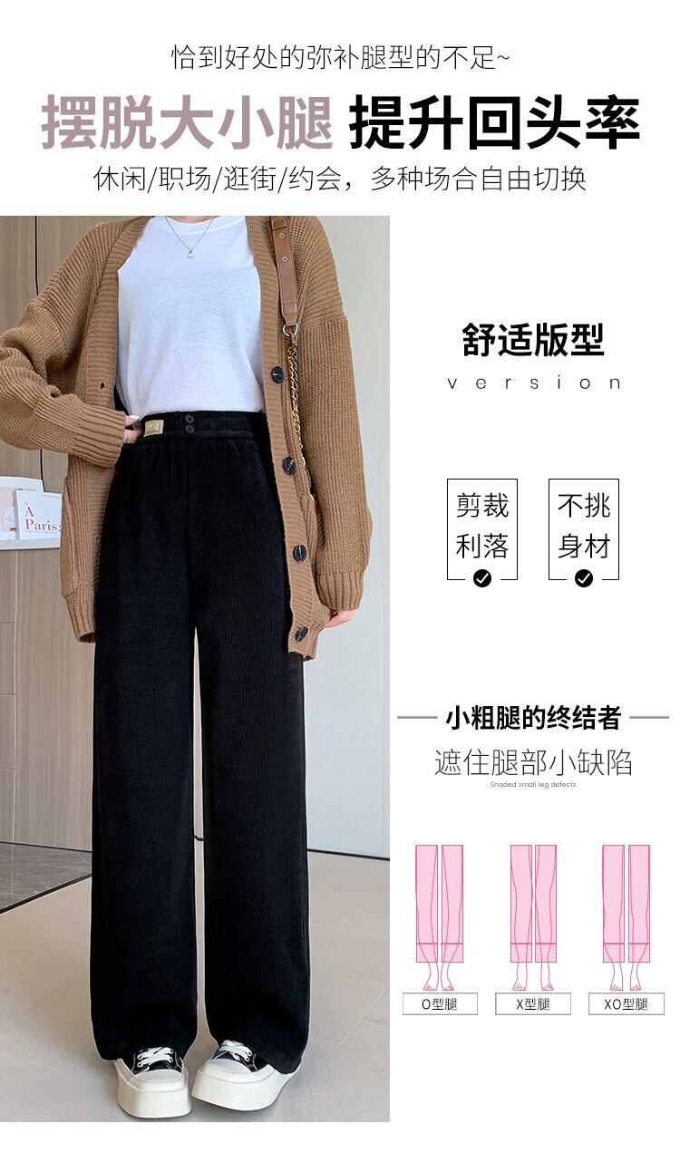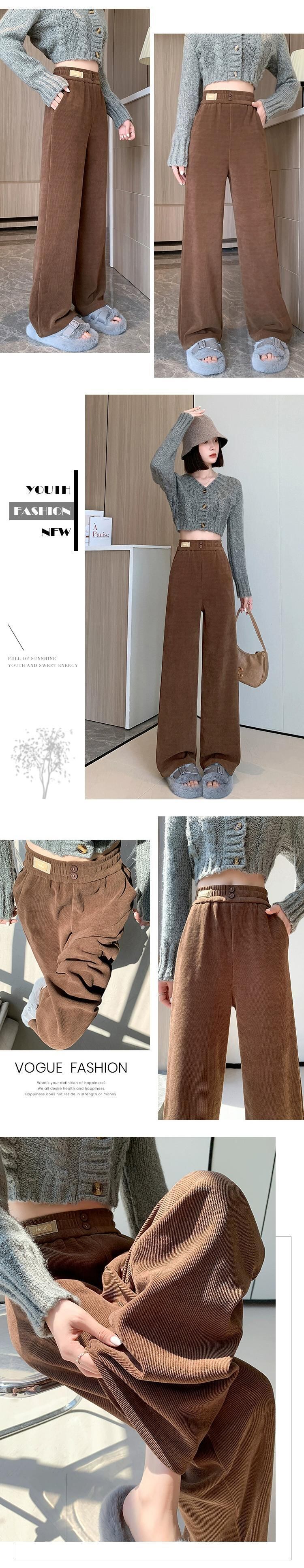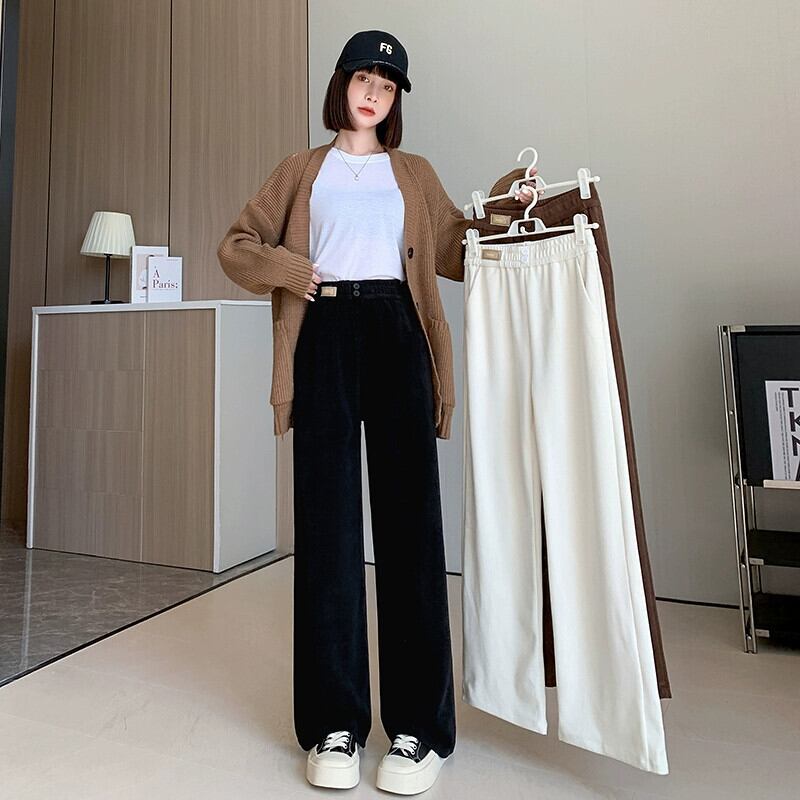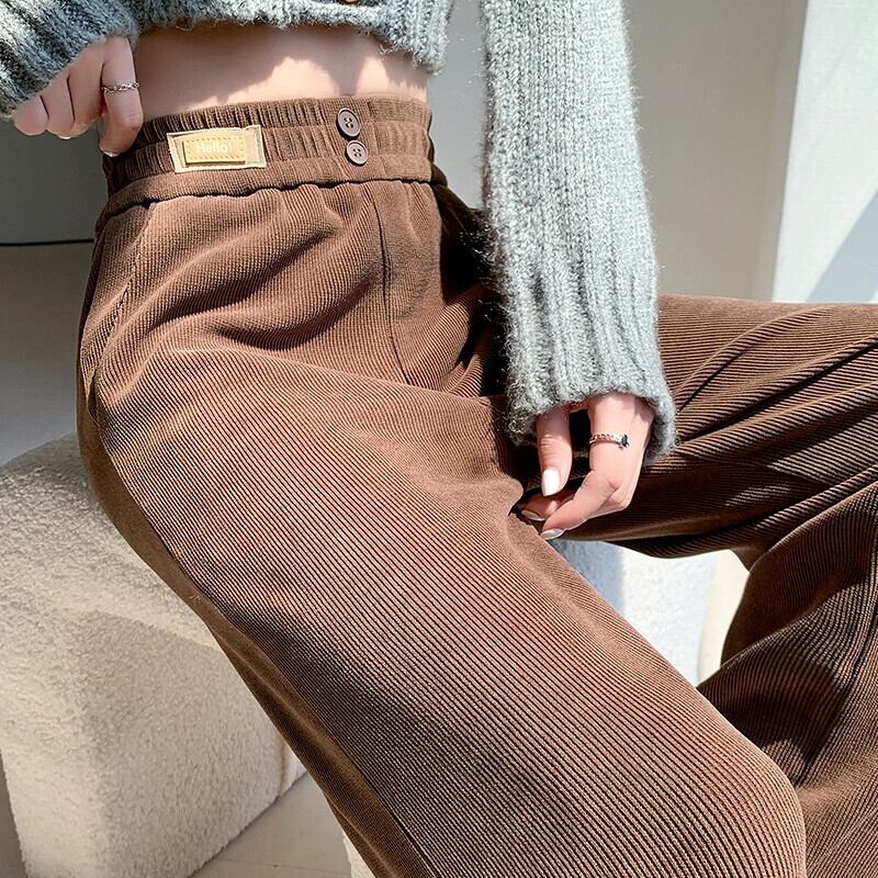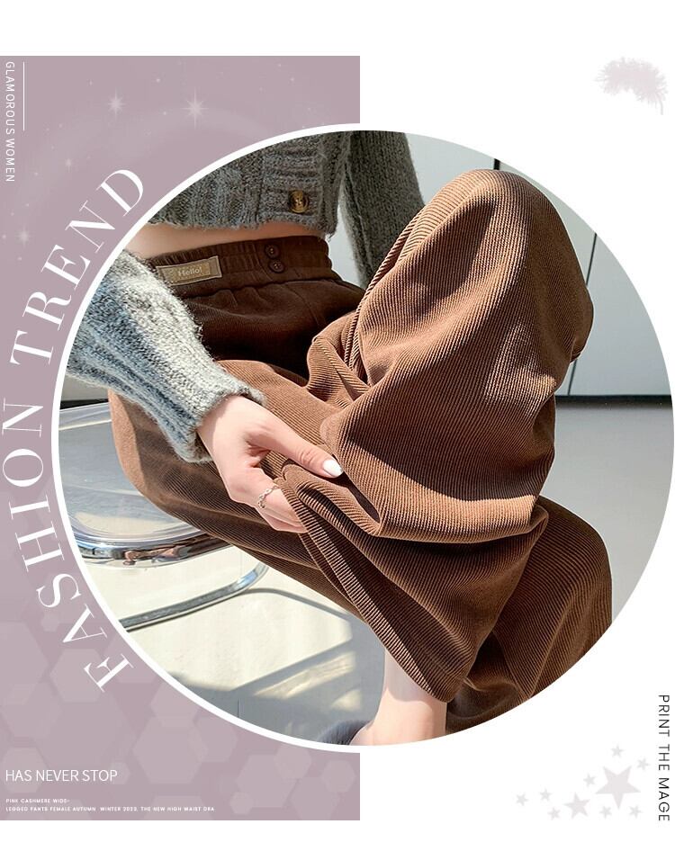 ナローバージョンシェニールワイドレッグパンツ女性 2023 秋と冬の新しいストレートハイウエストドレープブラウンコーデュロイカジュアルパンツ オータム 秋物 ウィンター 冬物 74600198280459 | framboise21