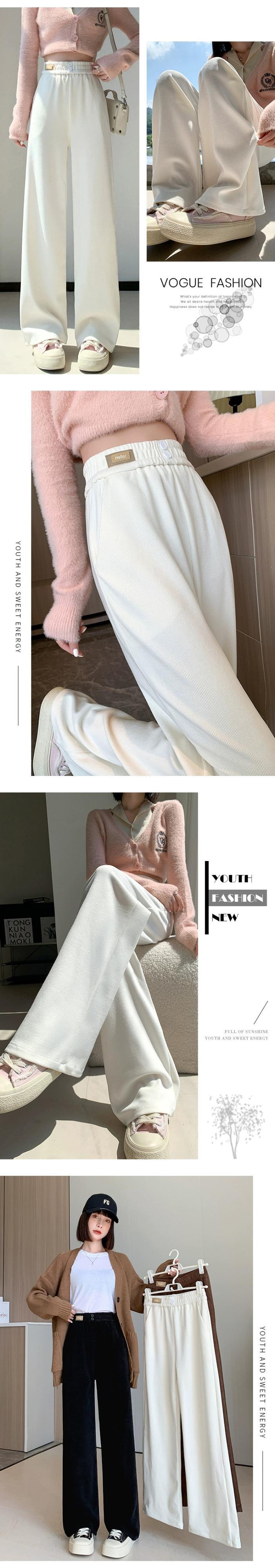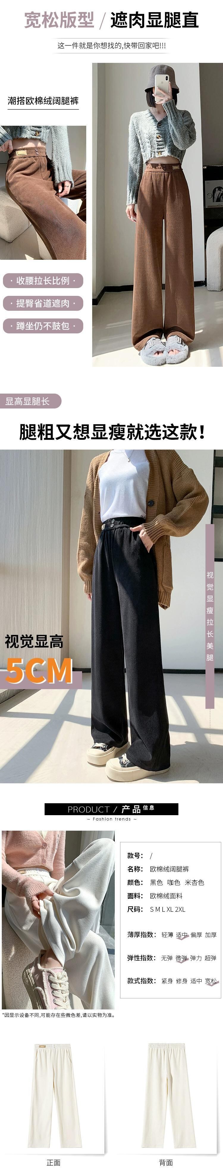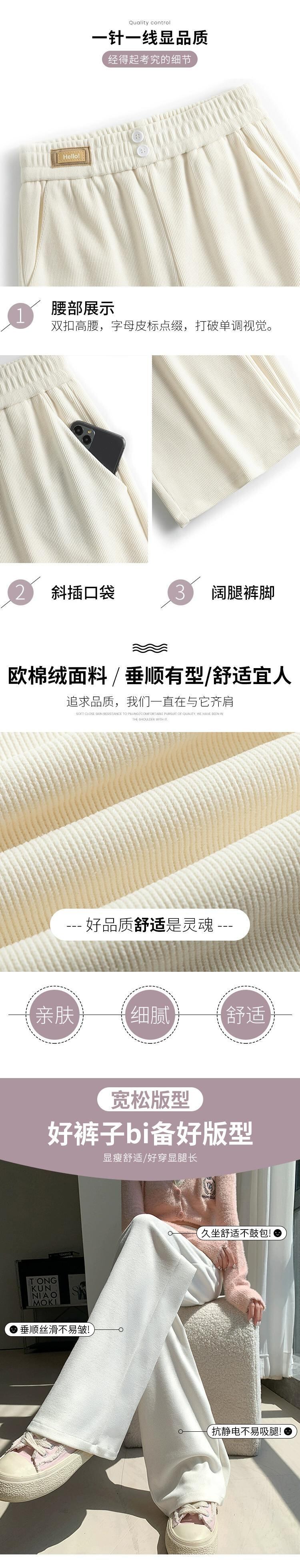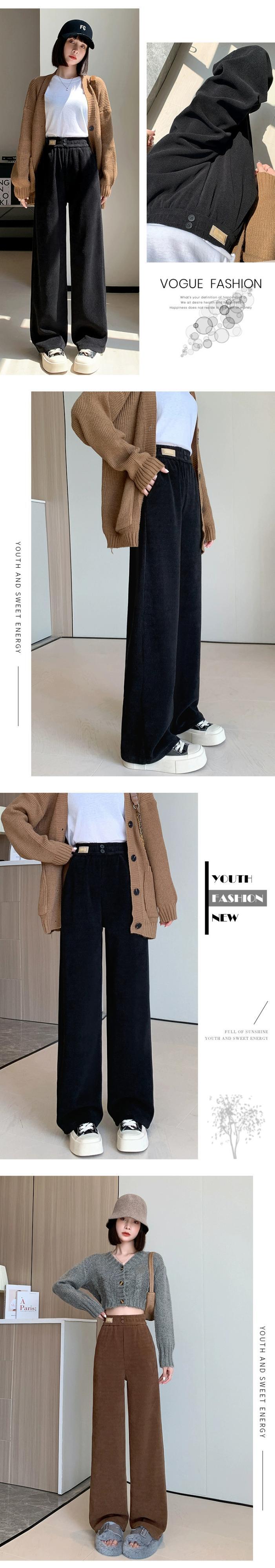 ナローバージョンシェニールワイドレッグパンツ女性 2023 秋と冬の新しいストレートハイウエストドレープブラウンコーデュロイカジュアルパンツ オータム 秋物 ウィンター 冬物 74600198280459 | framboise21
