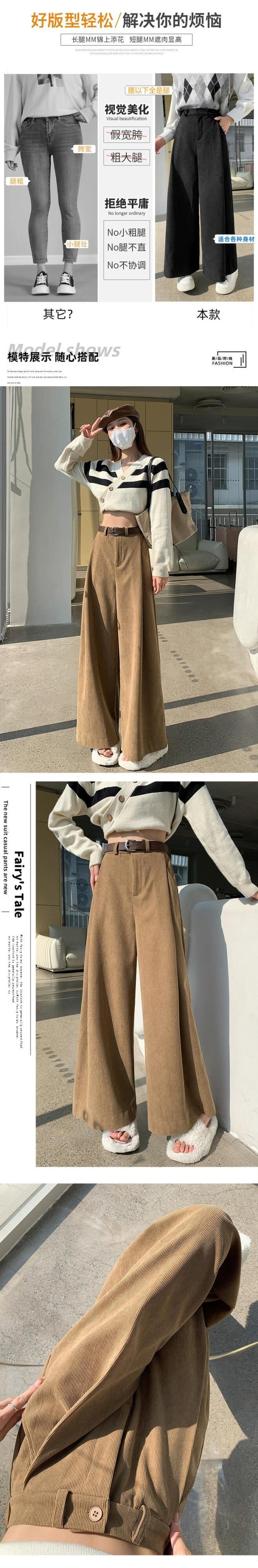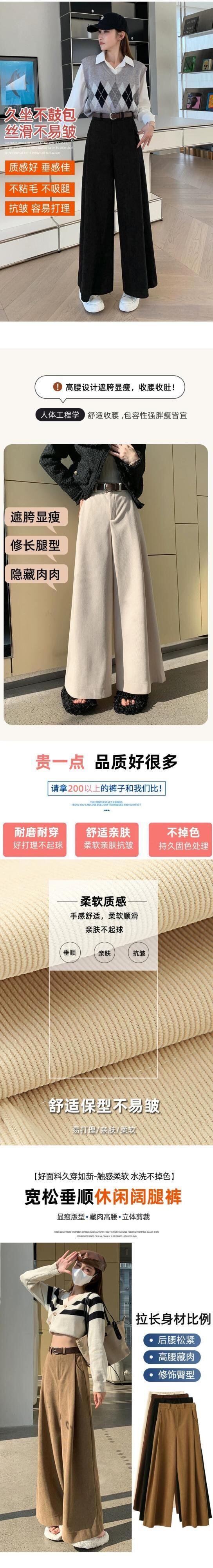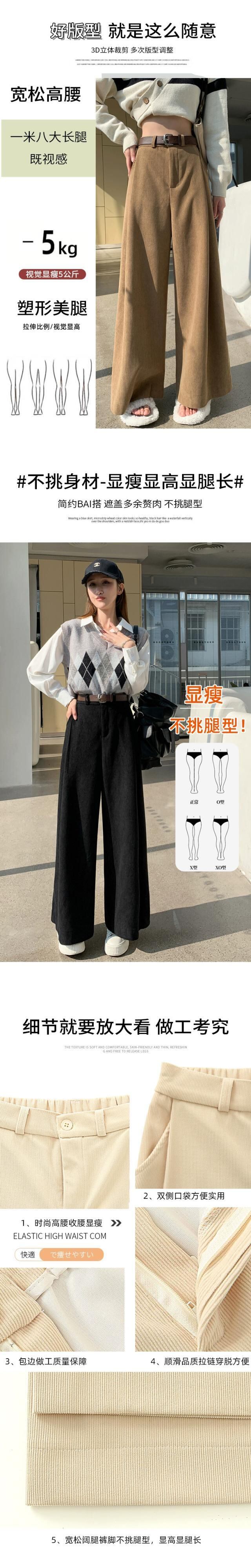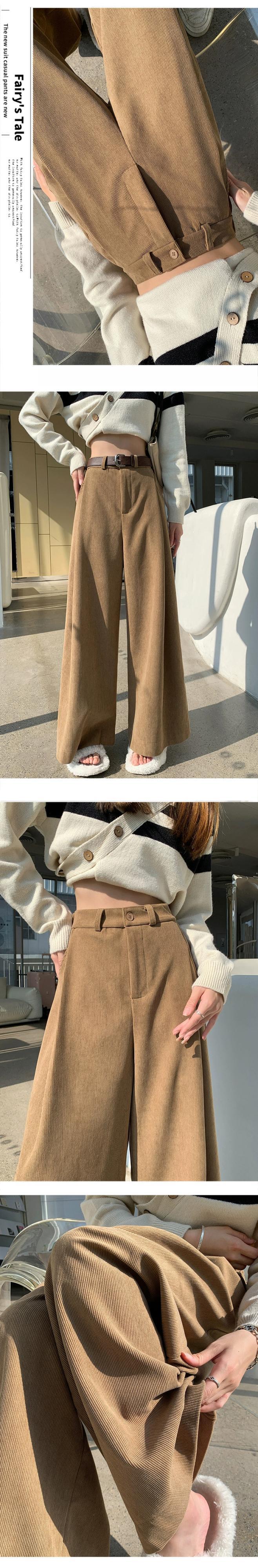 小さなコーデュロイパンツの女性の秋冬 2023 怠惰なルーズストレートウエストドレープワイドレッグパンツ オータム 秋物 ウィンター 冬物 ワイドパンツ 7460077117933826 | framboise21