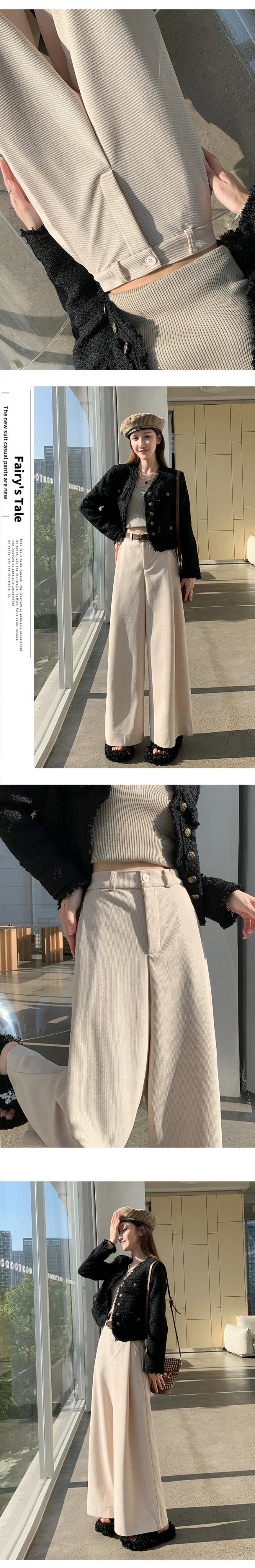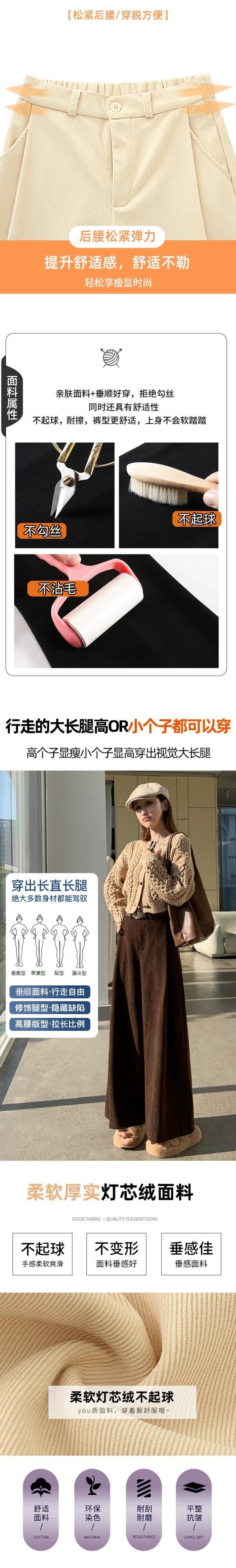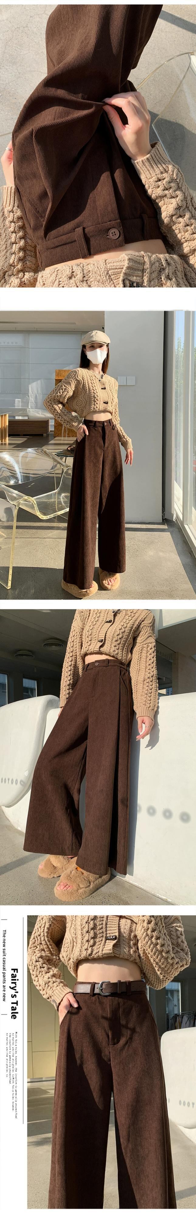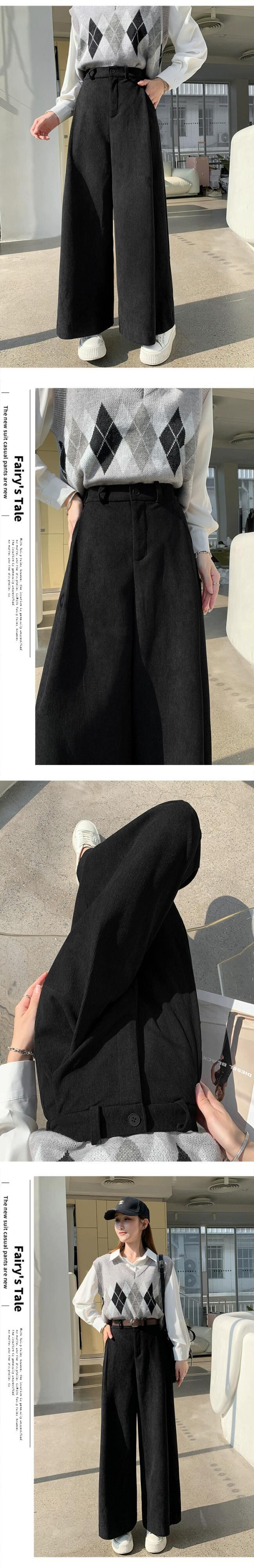 小さなコーデュロイパンツの女性の秋冬 2023 怠惰なルーズストレートウエストドレープワイドレッグパンツ オータム 秋物 ウィンター 冬物 ワイドパンツ 7460077117933826 | framboise21