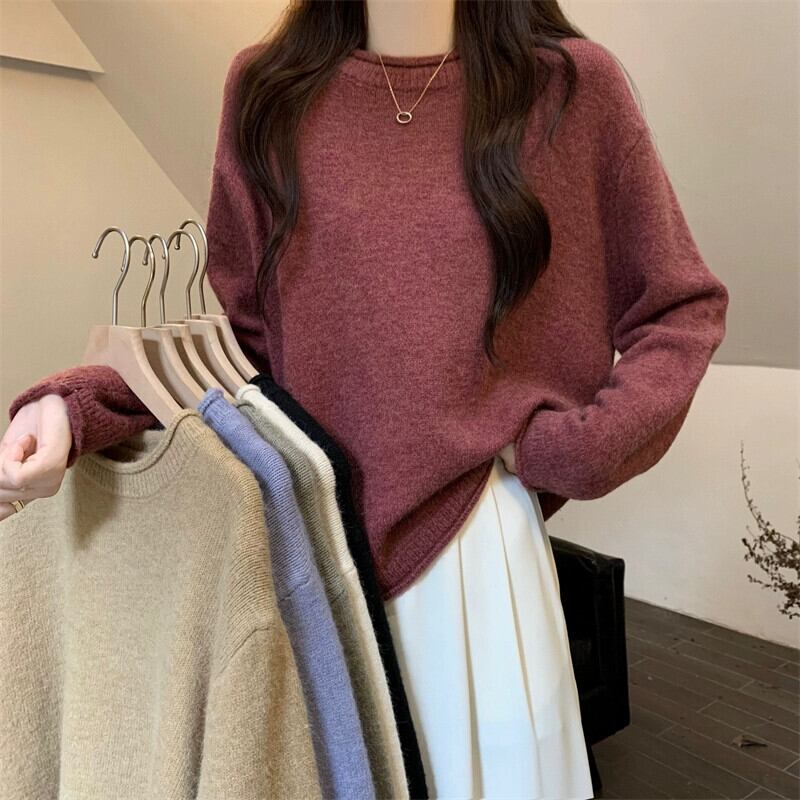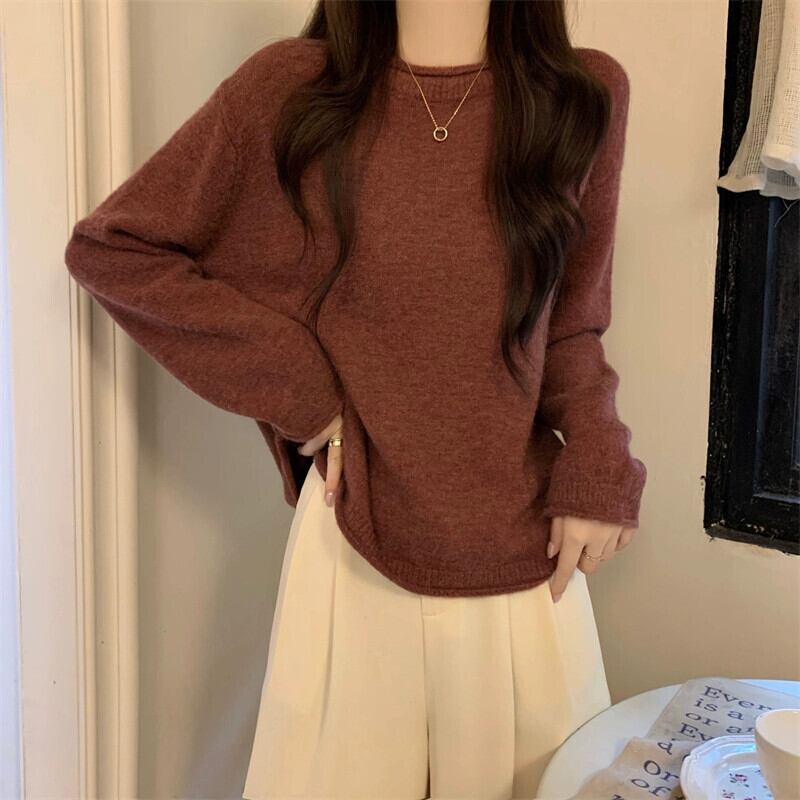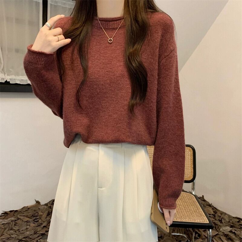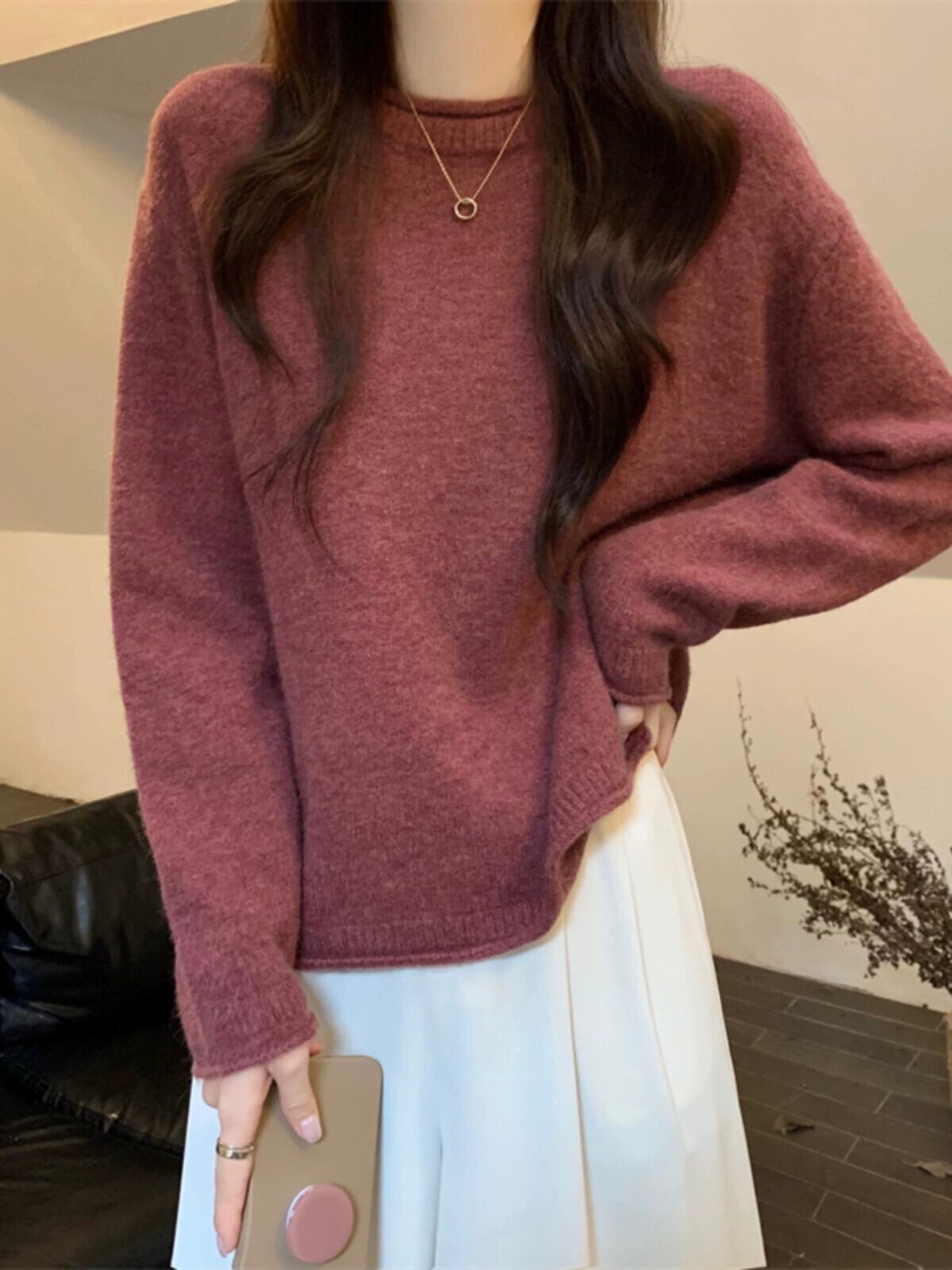 ese レトロプルオーバーセーター女性秋と冬 2023 新しいスタイル怠惰なスタイルルーズアウターウェア肥厚長袖セーター赤 ロング オータム 秋物 ウィンター 冬物 7460099916639107 | framboise21