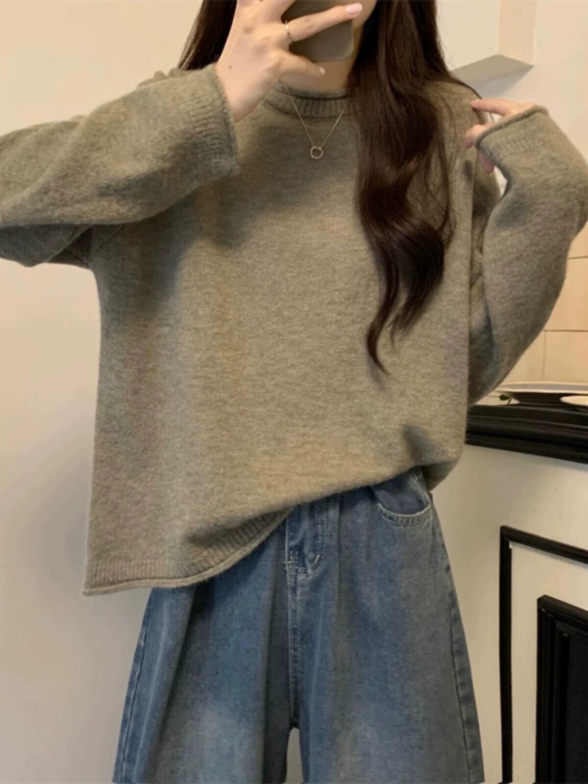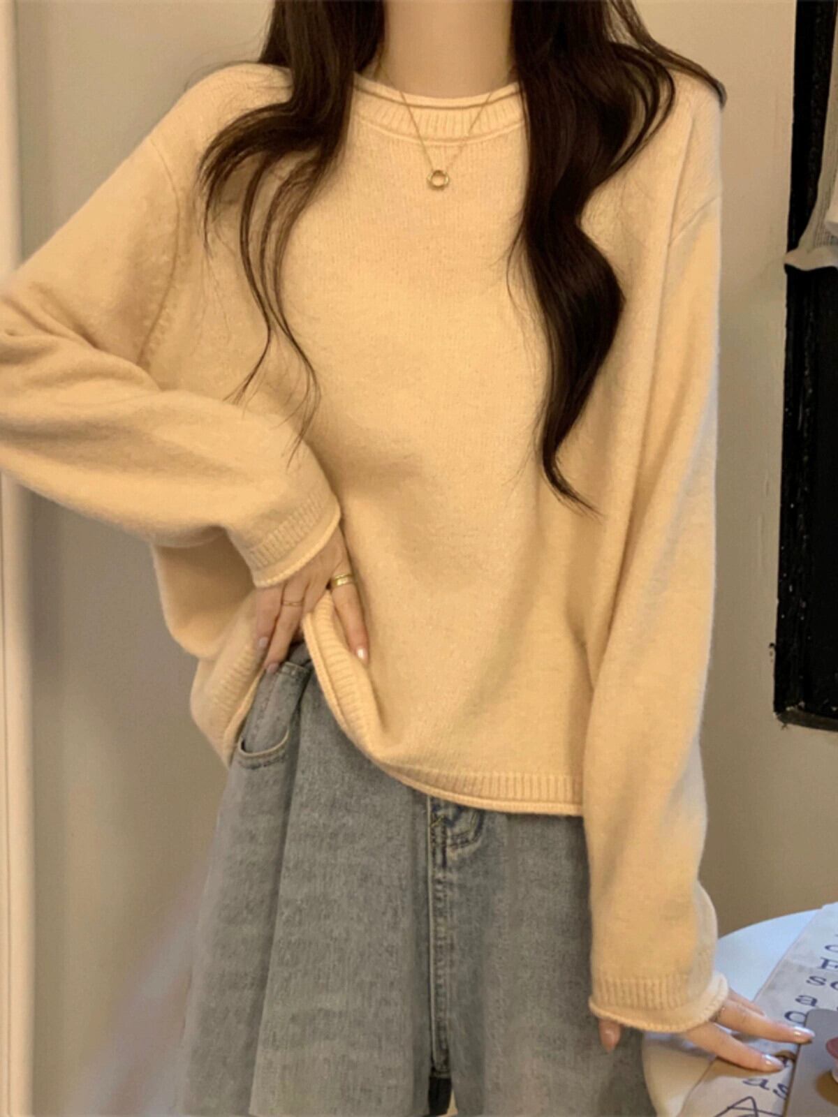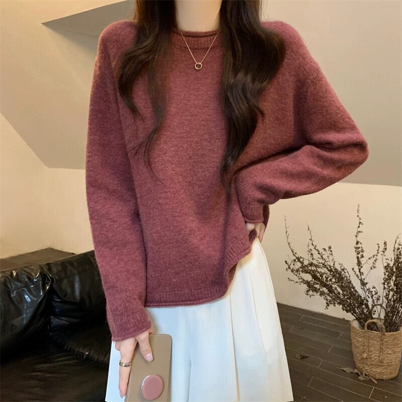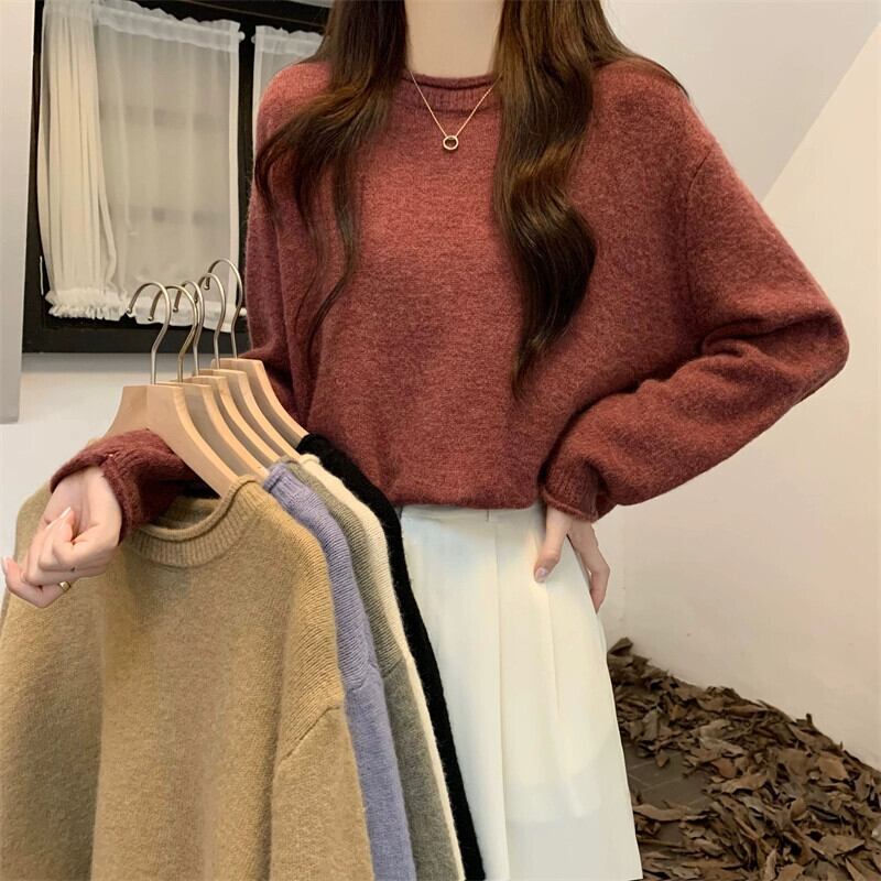 ese レトロプルオーバーセーター女性秋と冬 2023 新しいスタイル怠惰なスタイルルーズアウターウェア肥厚長袖セーター赤 ロング オータム 秋物 ウィンター 冬物 7460099916639107 | framboise21