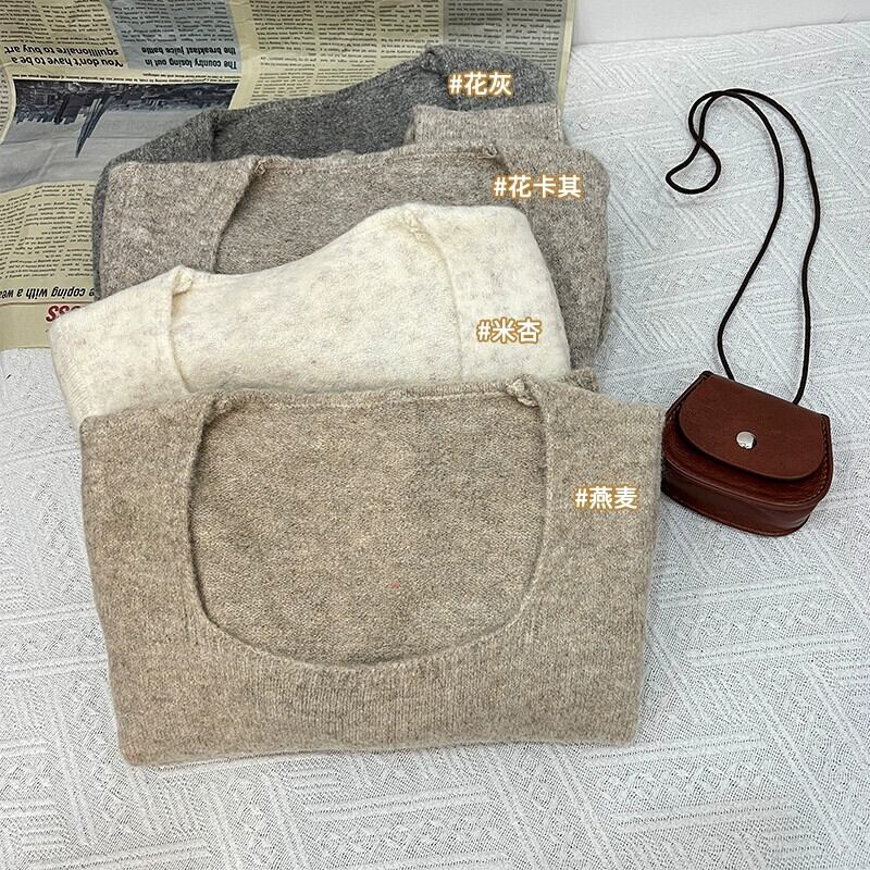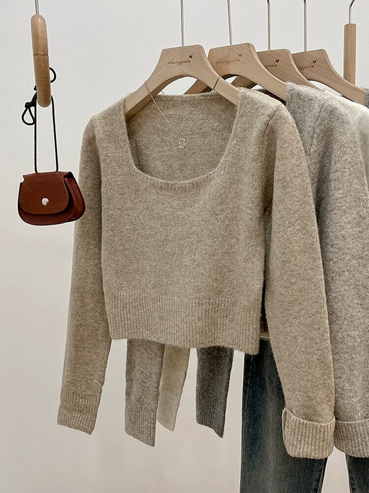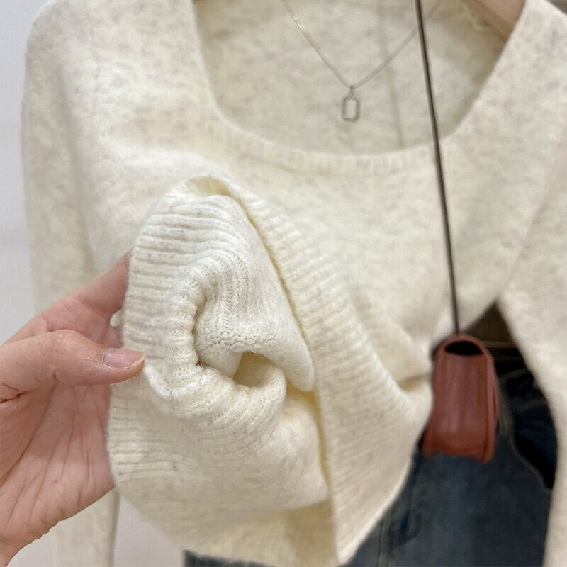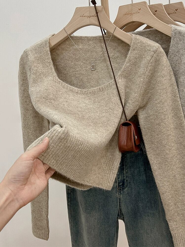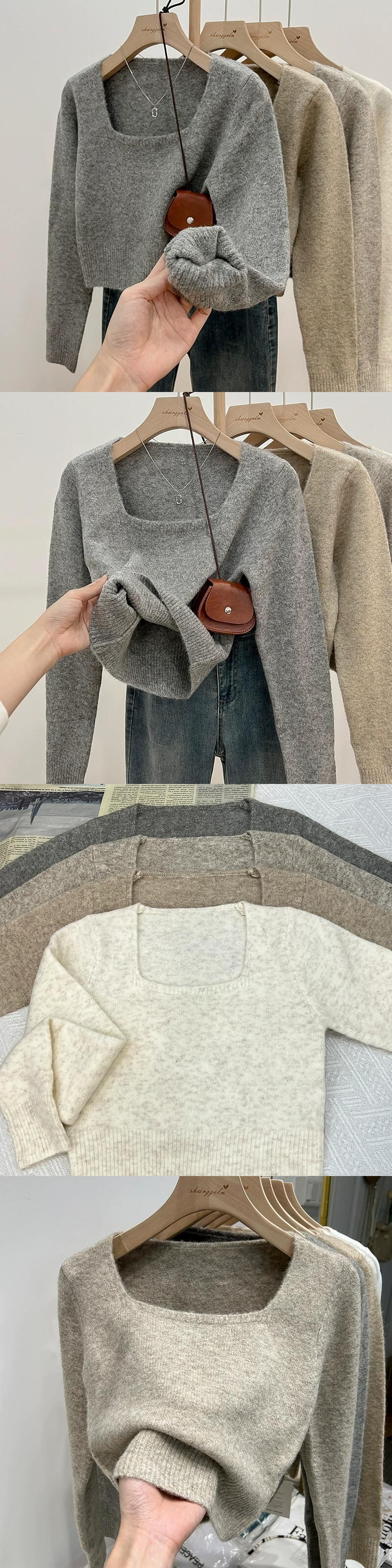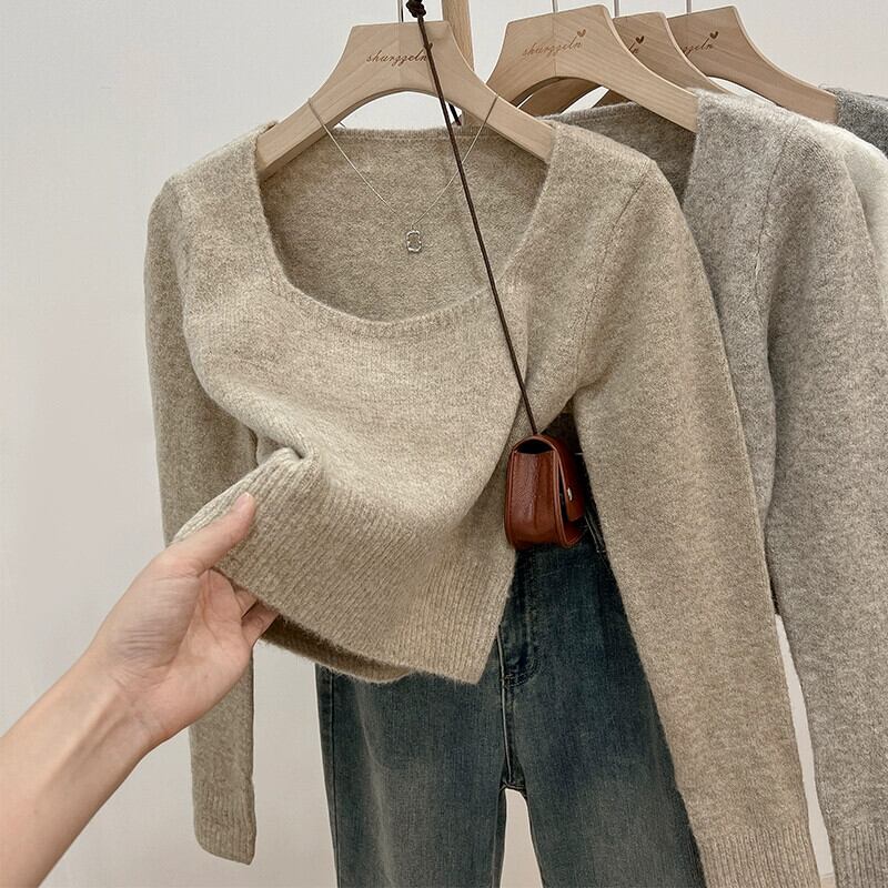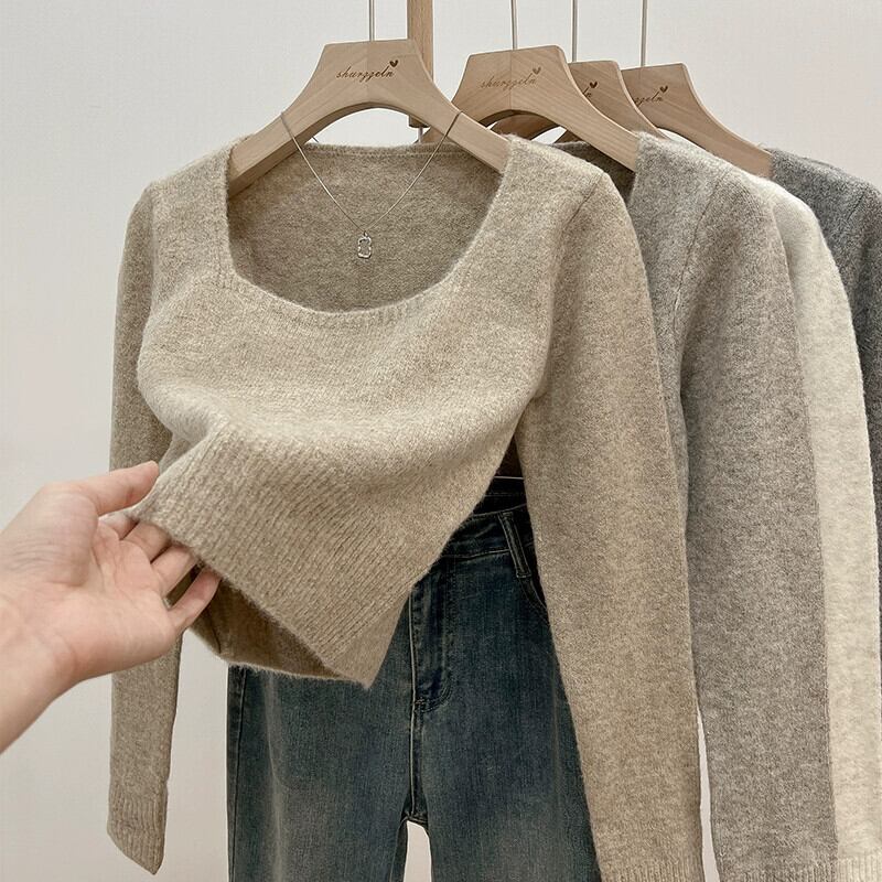 カシミヤスクエアネックボトミングセーターレディース、秋と冬スタイルのフレンチスリムフィットプルオーバーショートセーター、厚みのあるニットセーター付き オータム 秋物 ウィンター 冬物 スクウェア 7460018800215194 | framboise21
