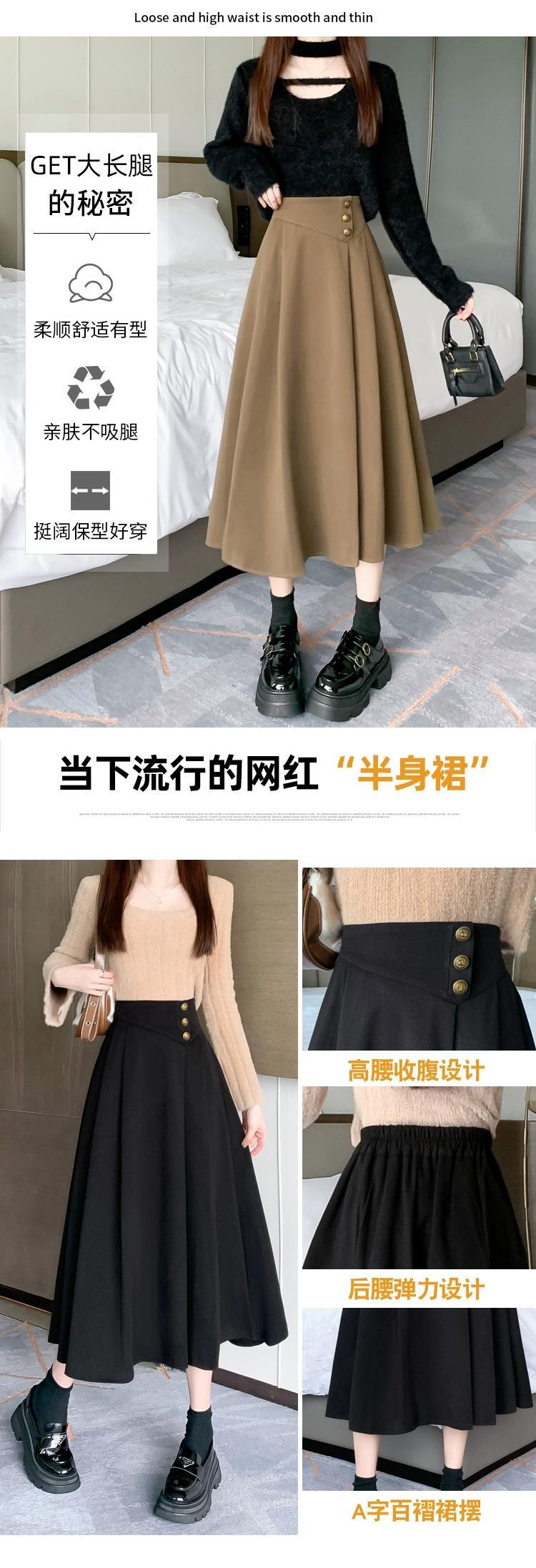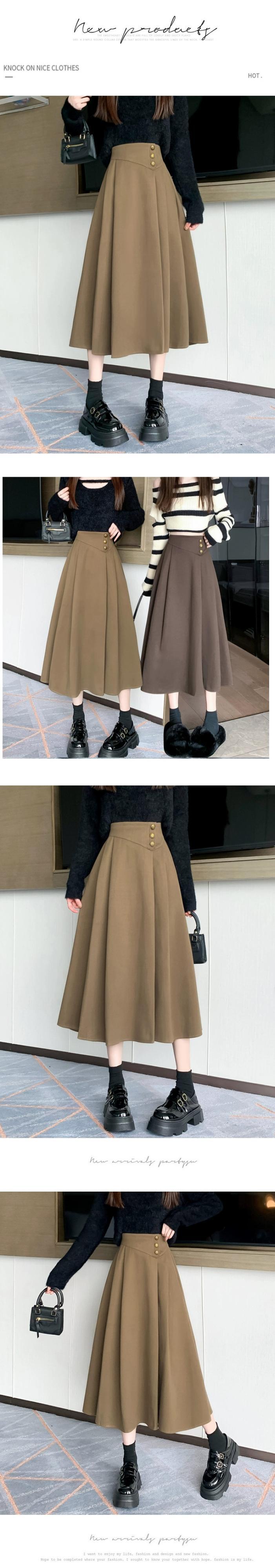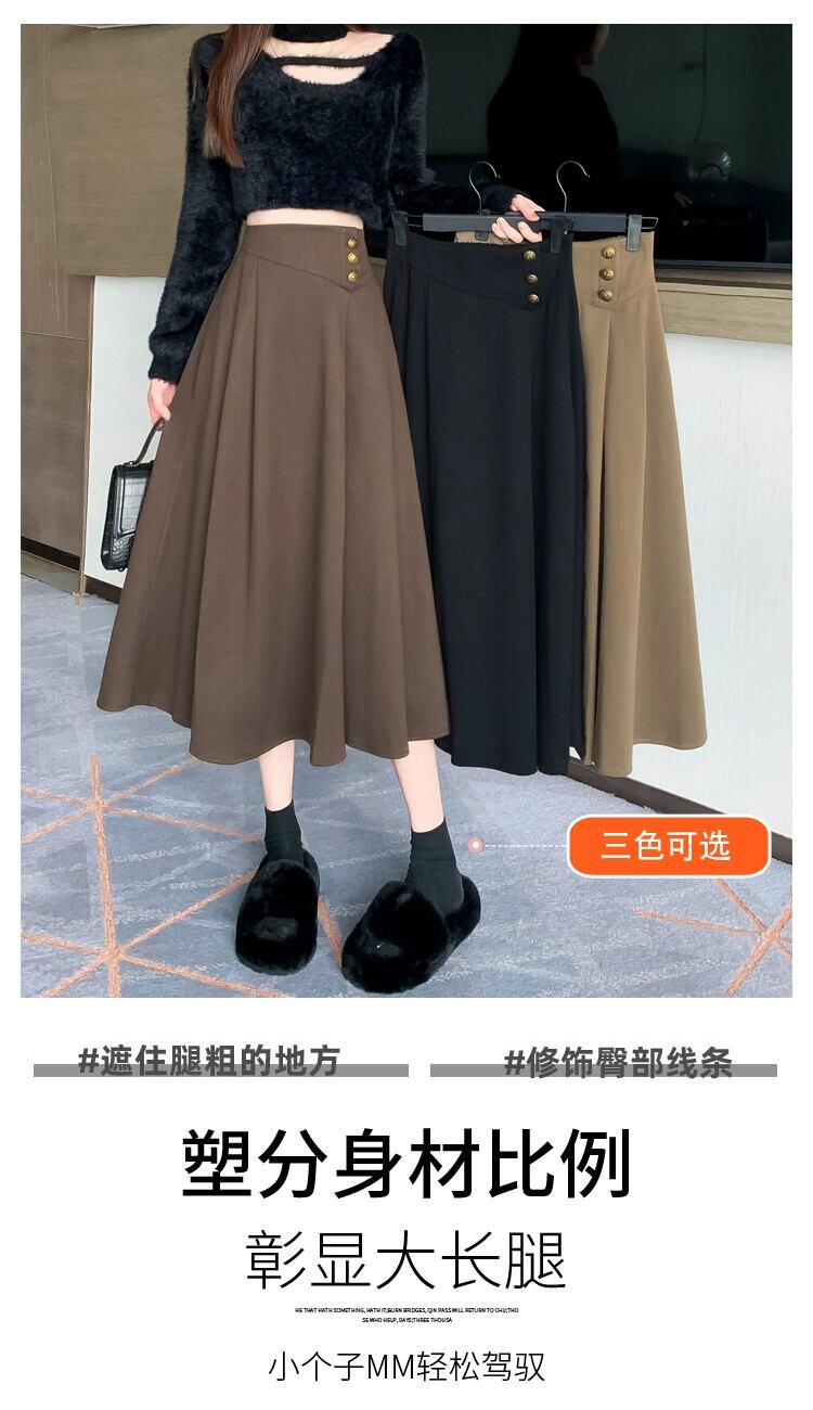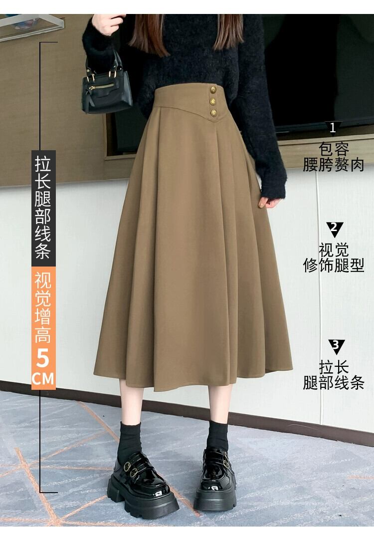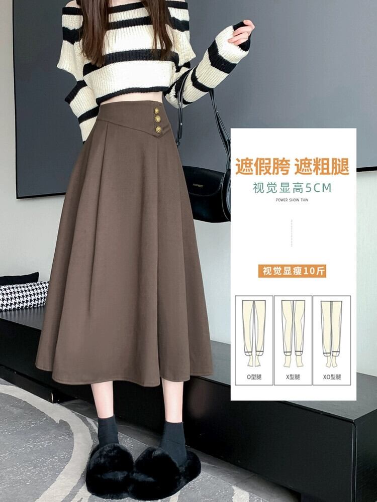 茶色のウールのプリーツスカートの女性、股間をカバーしてスリムに見える秋冬の気質のスーツスカート、ミドル丈のハイウエストの大きなスイングアンブレラスカート オータム 秋物 ウィンター 冬物 7460011477402508 | framboise21
