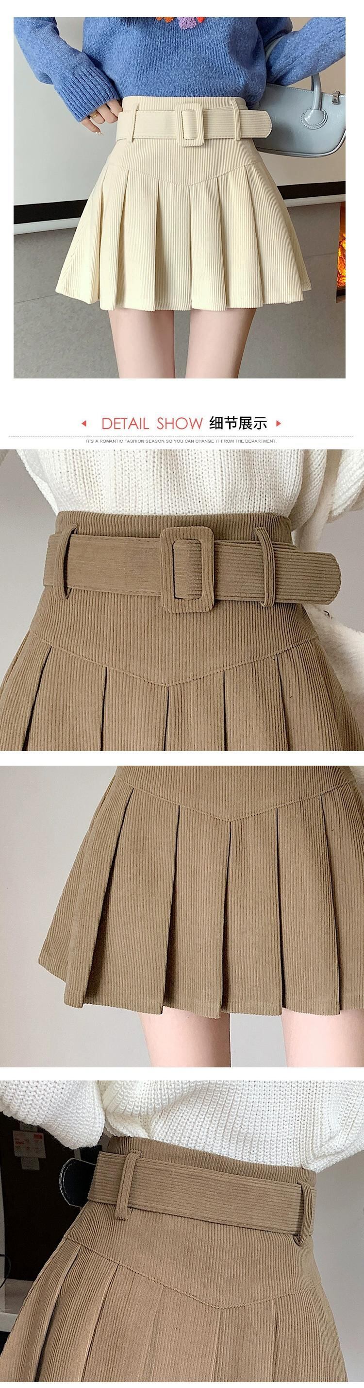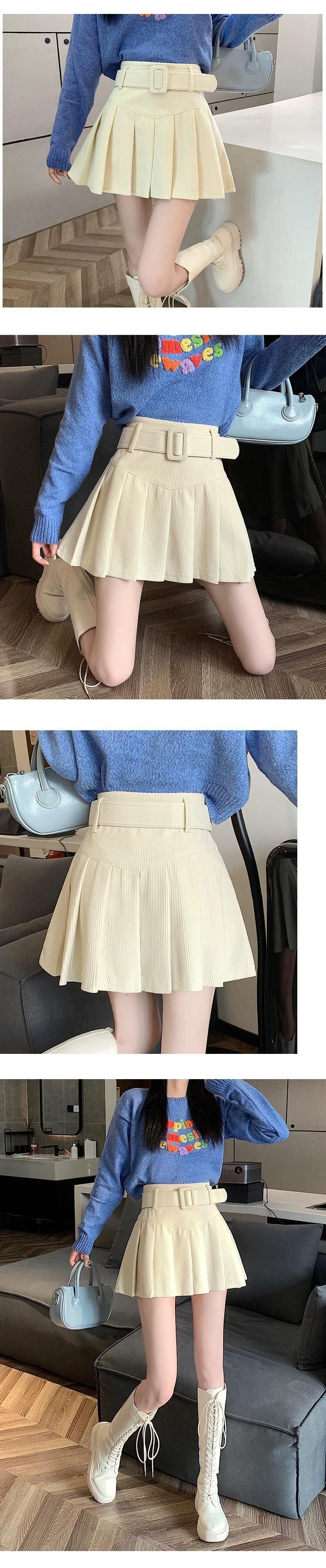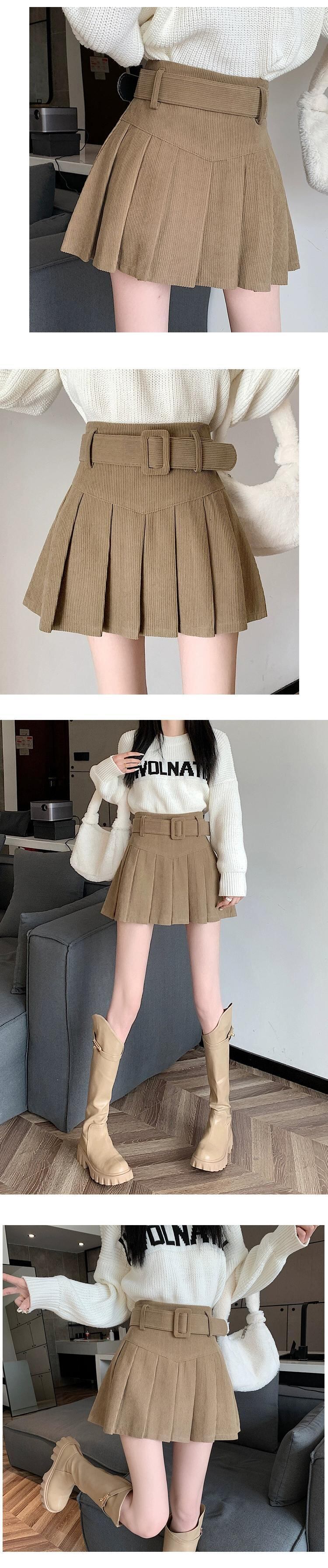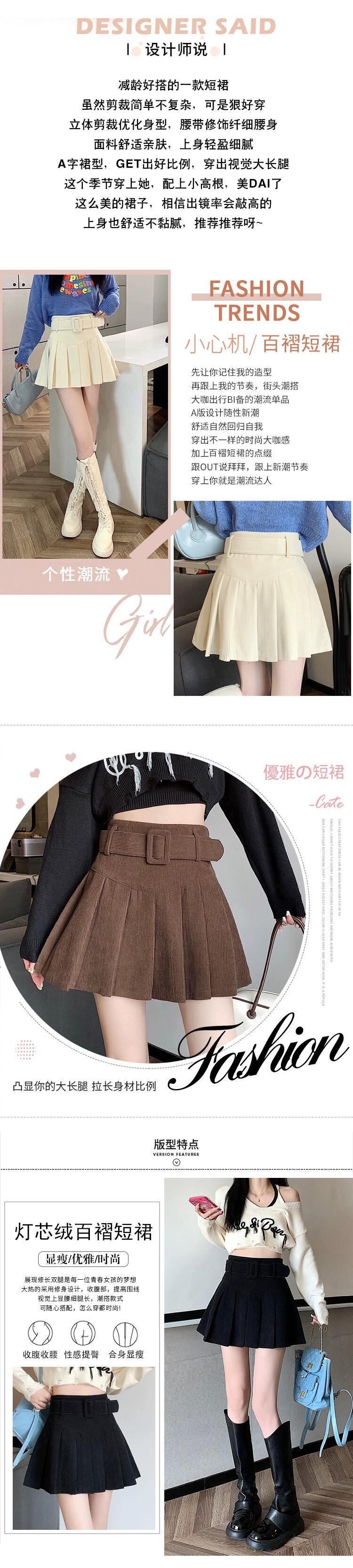 コーデュロイプリーツスカート女性 2023 秋と冬の新ハイウエスト痩身多用途露出防止 A ラインベルトスカート オータム 秋物 ウィンター 冬物 ハーネス Aライン 7460066715530418 | framboise21