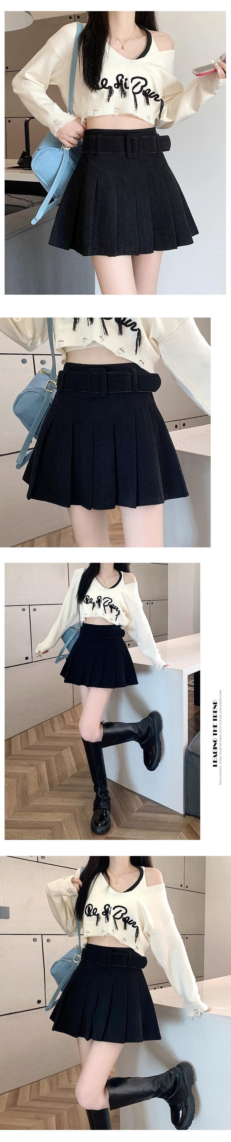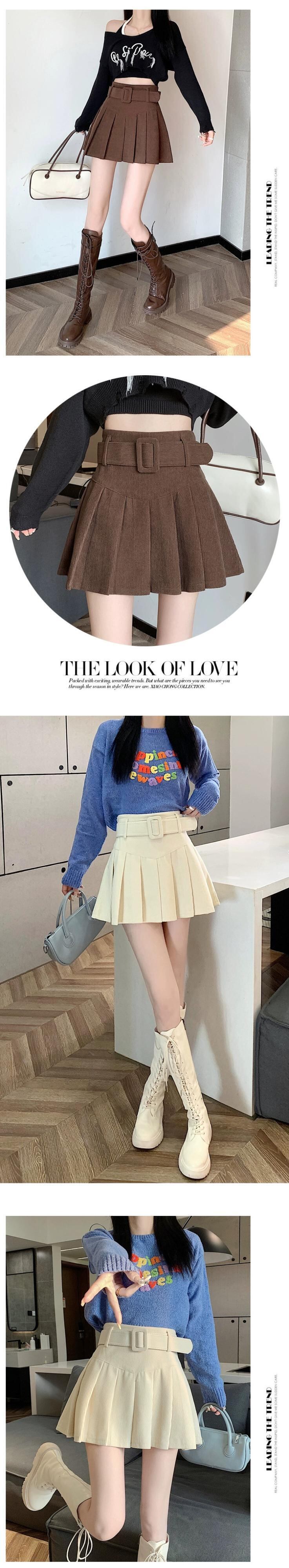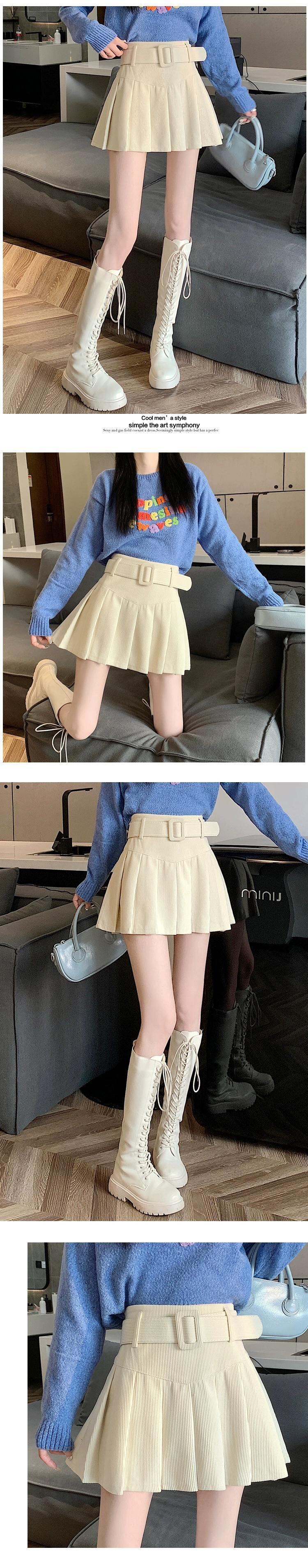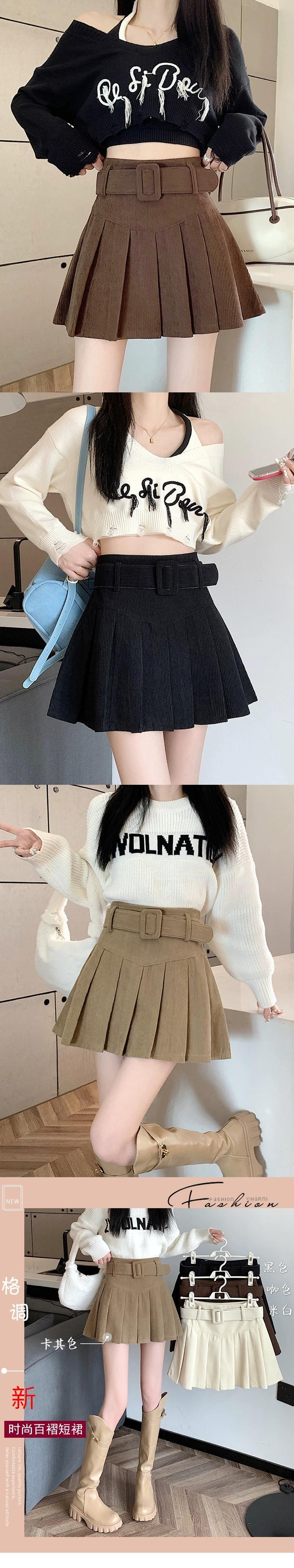 コーデュロイプリーツスカート女性 2023 秋と冬の新ハイウエスト痩身多用途露出防止 A ラインベルトスカート オータム 秋物 ウィンター 冬物 ハーネス Aライン 7460066715530418 | framboise21