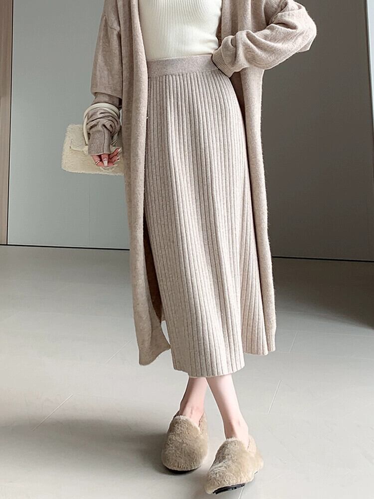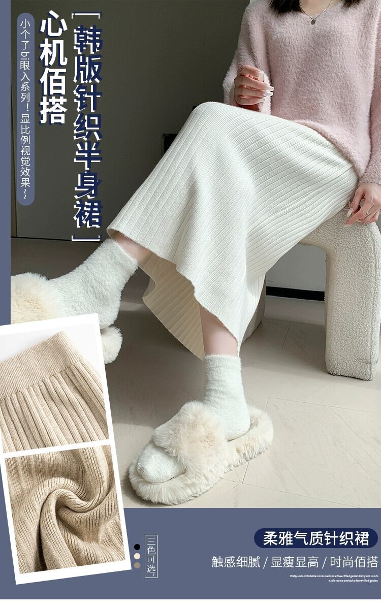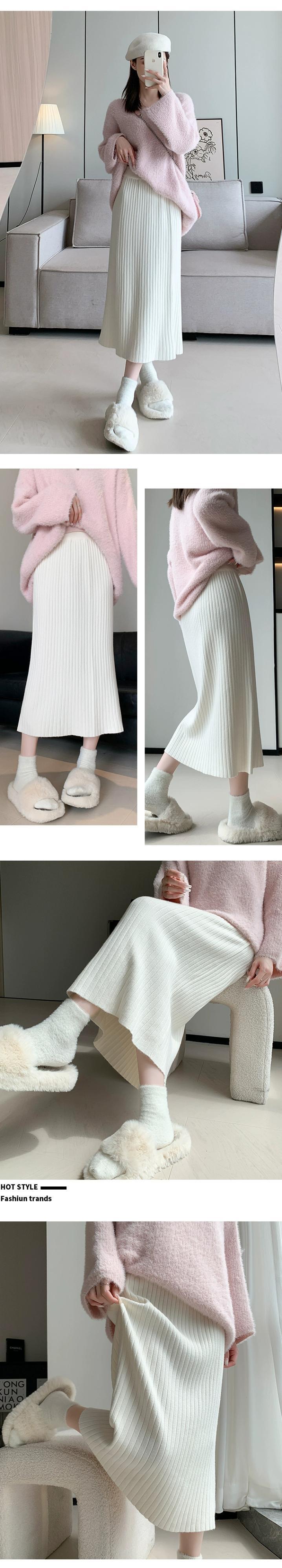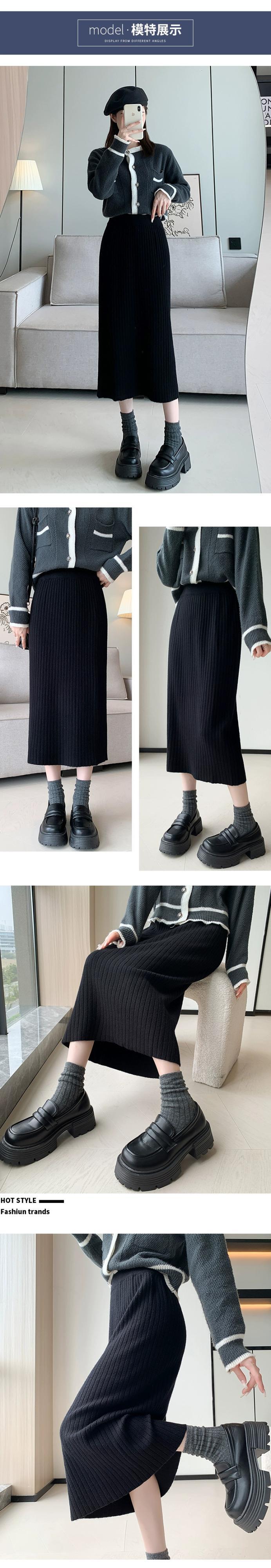 黒ニットスカートの女性 2023 秋と冬の新しい小中長ハイウエストスリム a ラインヒップハグロングスカート ブラック オータム 秋物 ウィンター 冬物 Aライン 7460024763666093 | framboise21