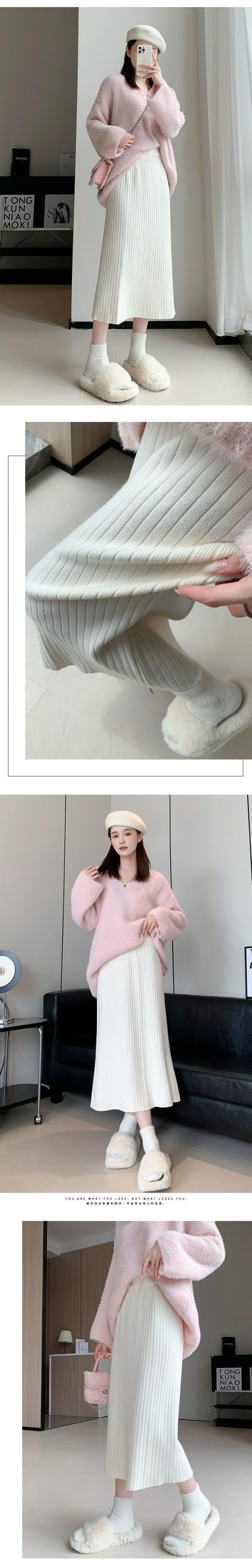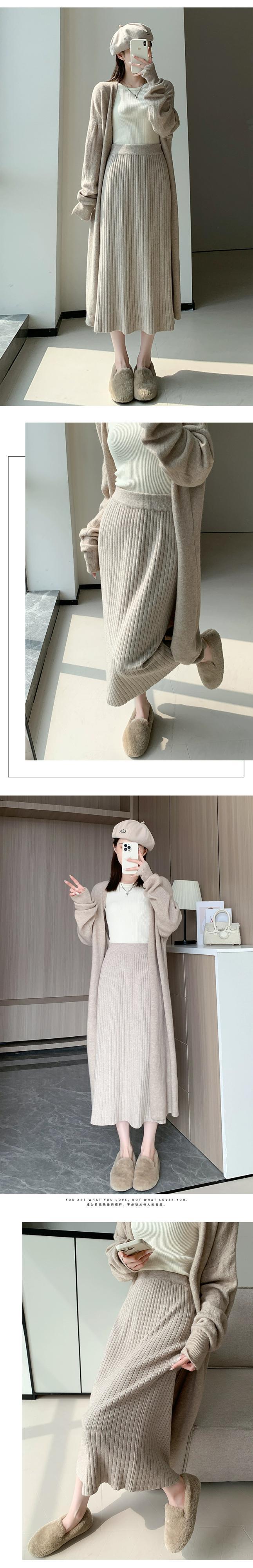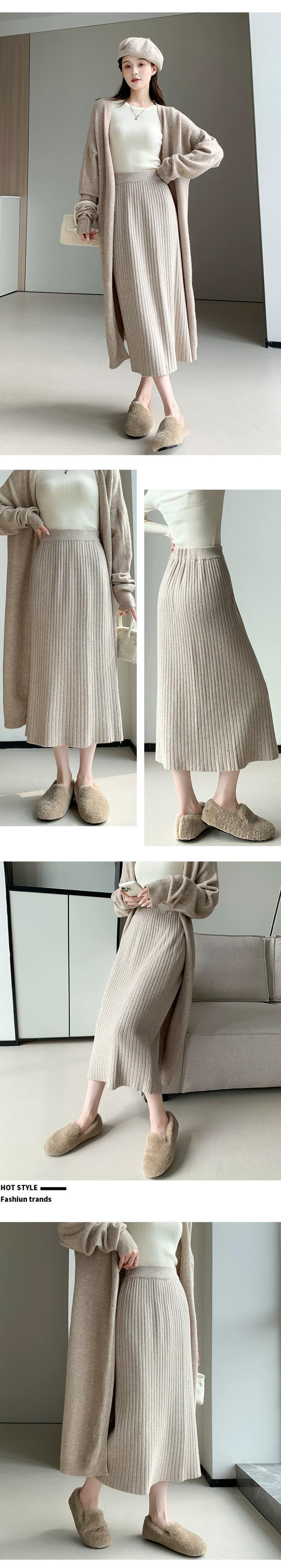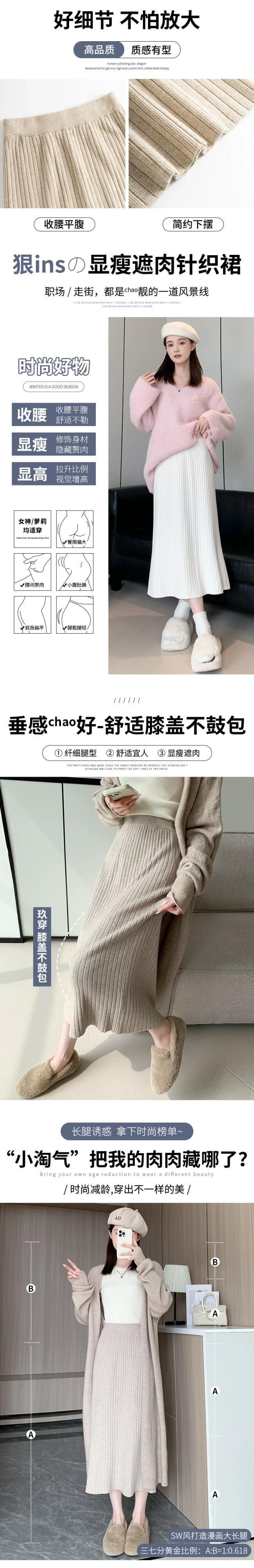黒ニットスカートの女性 2023 秋と冬の新しい小中長ハイウエストスリム a ラインヒップハグロングスカート ブラック オータム 秋物 ウィンター 冬物 Aライン 7460024763666093 | framboise21