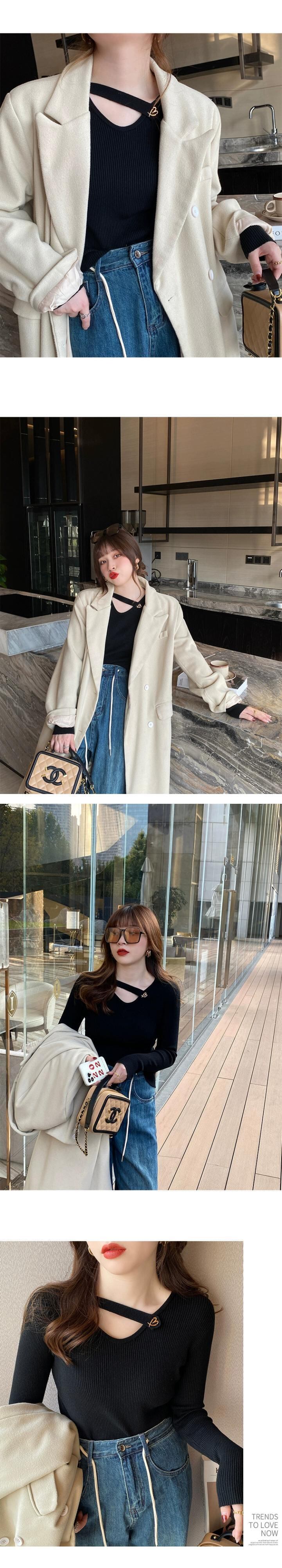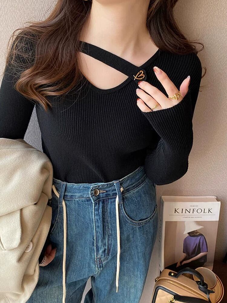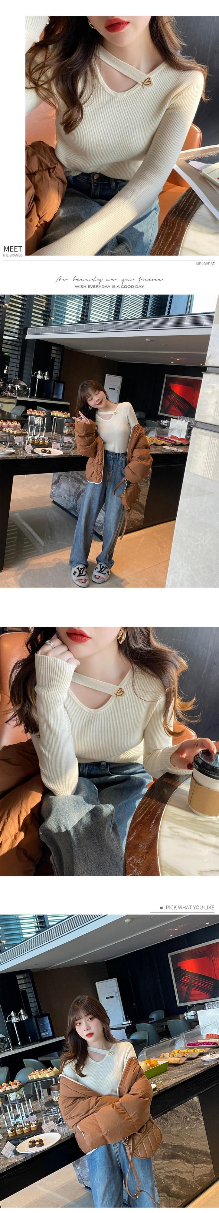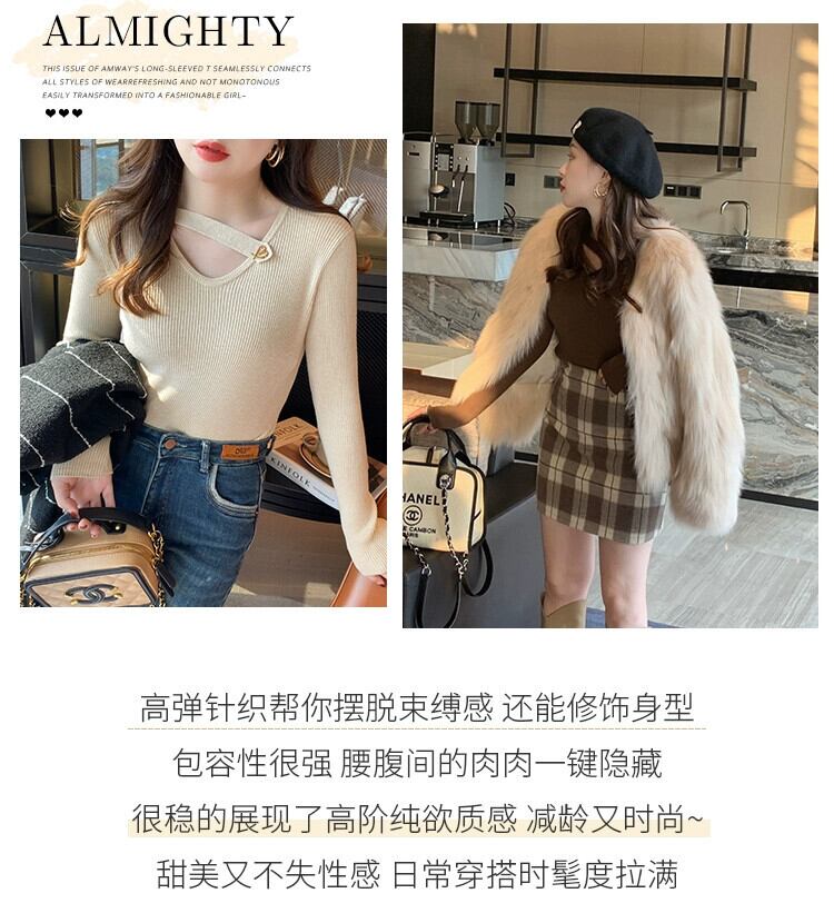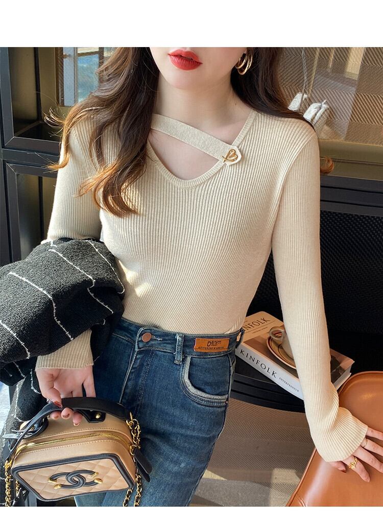 秋と冬の中空ホルターネックボトリングシャツレディース、ファッショナブルでファッショナブルな、アインスタイルのインナーニットセーター、スリムフィットで多用途の白いトップ ホワイト オータム 秋物 ウィンター 冬物 7460043716154199 | framboise21