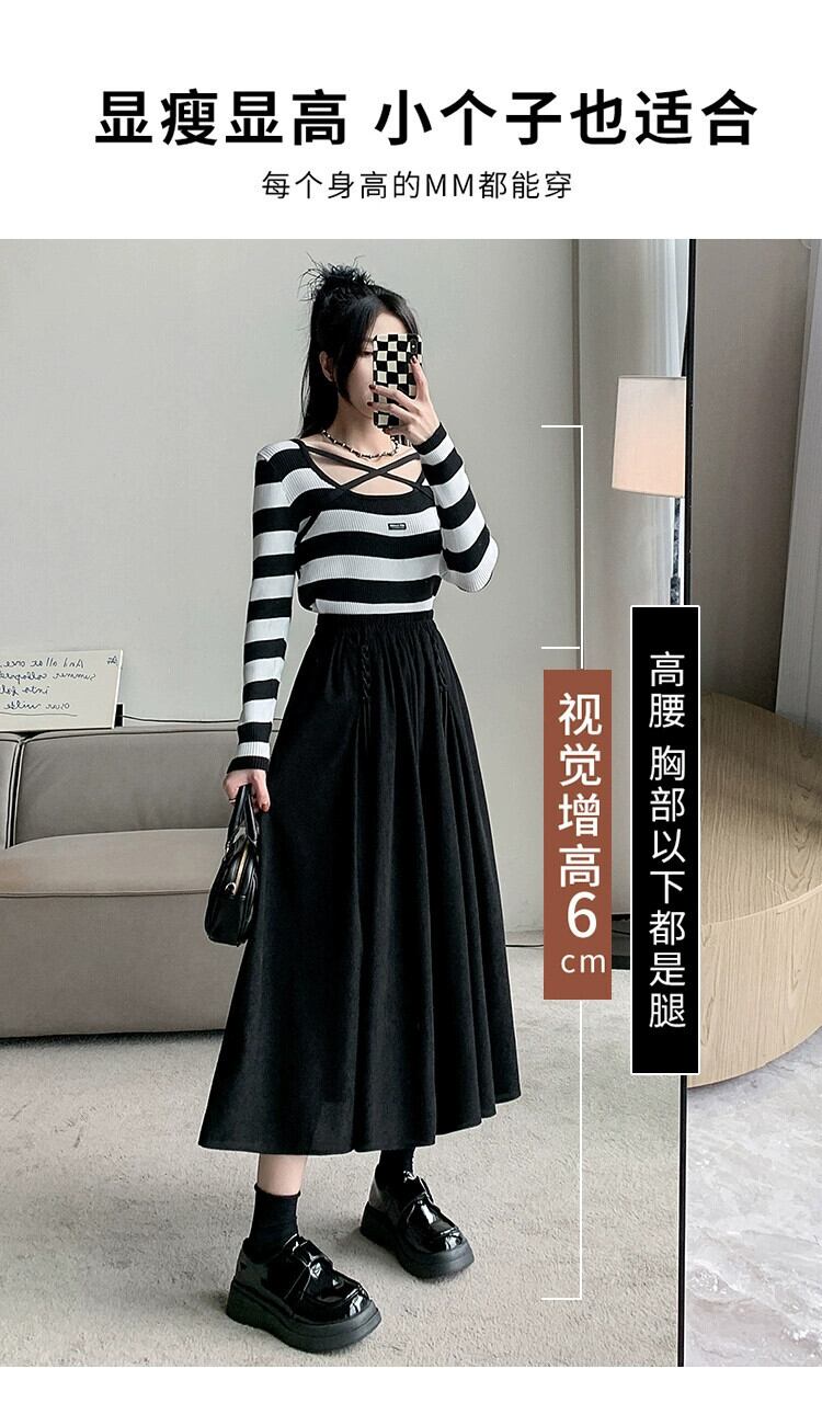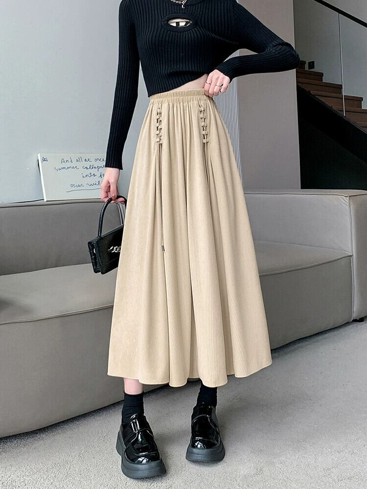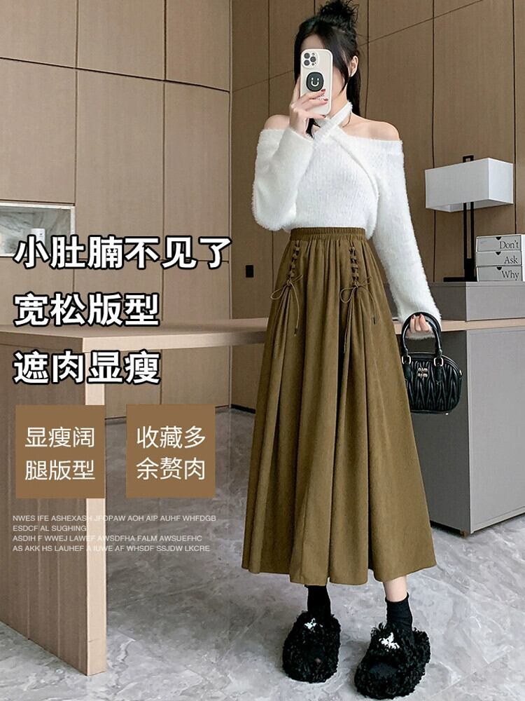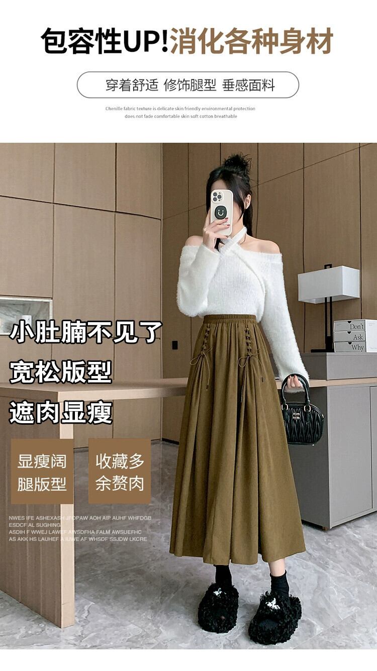 秋冬のレトロなストラップ付きハイウエストスカート、股間をカバーする高級プリーツスカート、細く見える、大きな裾のAラインアンブレラスカート オータム 秋物 ウィンター 冬物 746007359905275 | framboise21