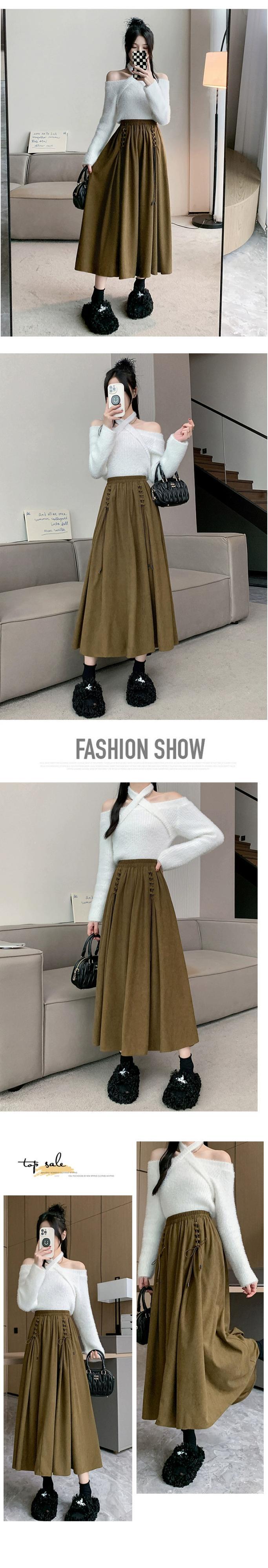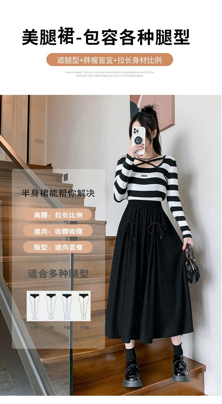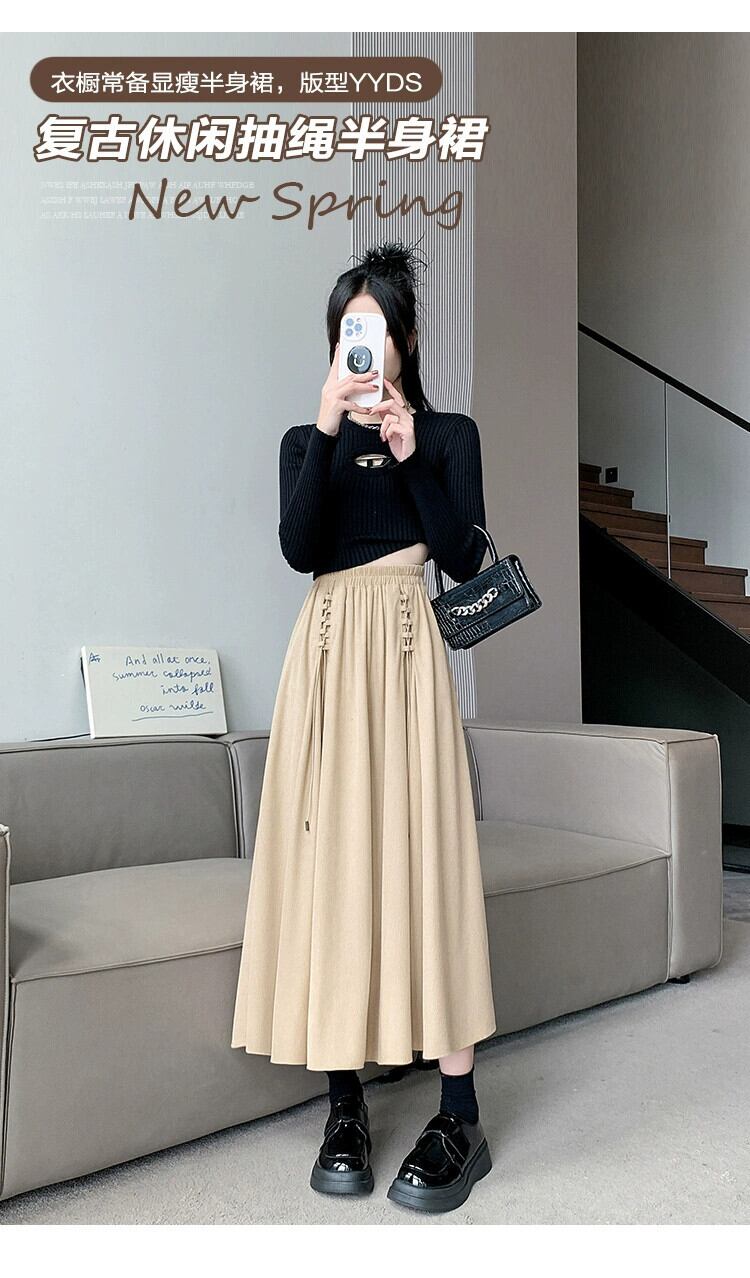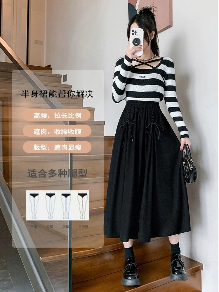 秋冬のレトロなストラップ付きハイウエストスカート、股間をカバーする高級プリーツスカート、細く見える、大きな裾のAラインアンブレラスカート オータム 秋物 ウィンター 冬物 746007359905275 | framboise21