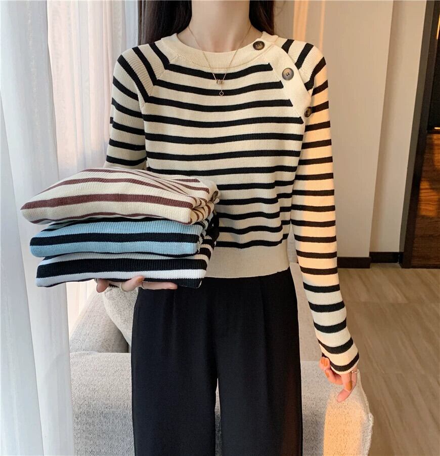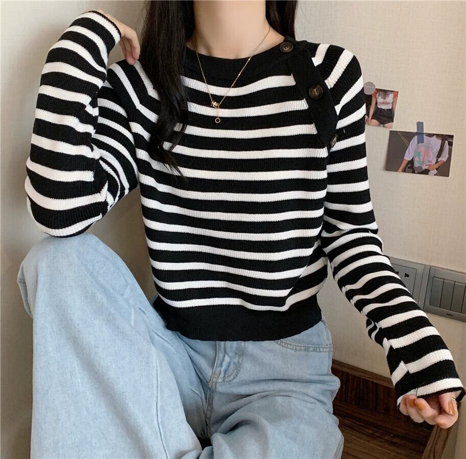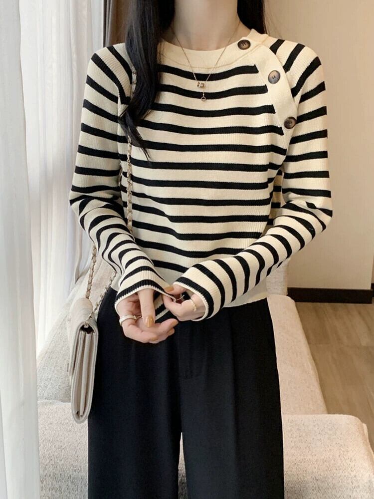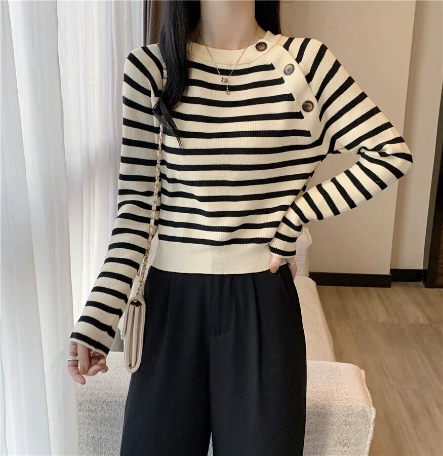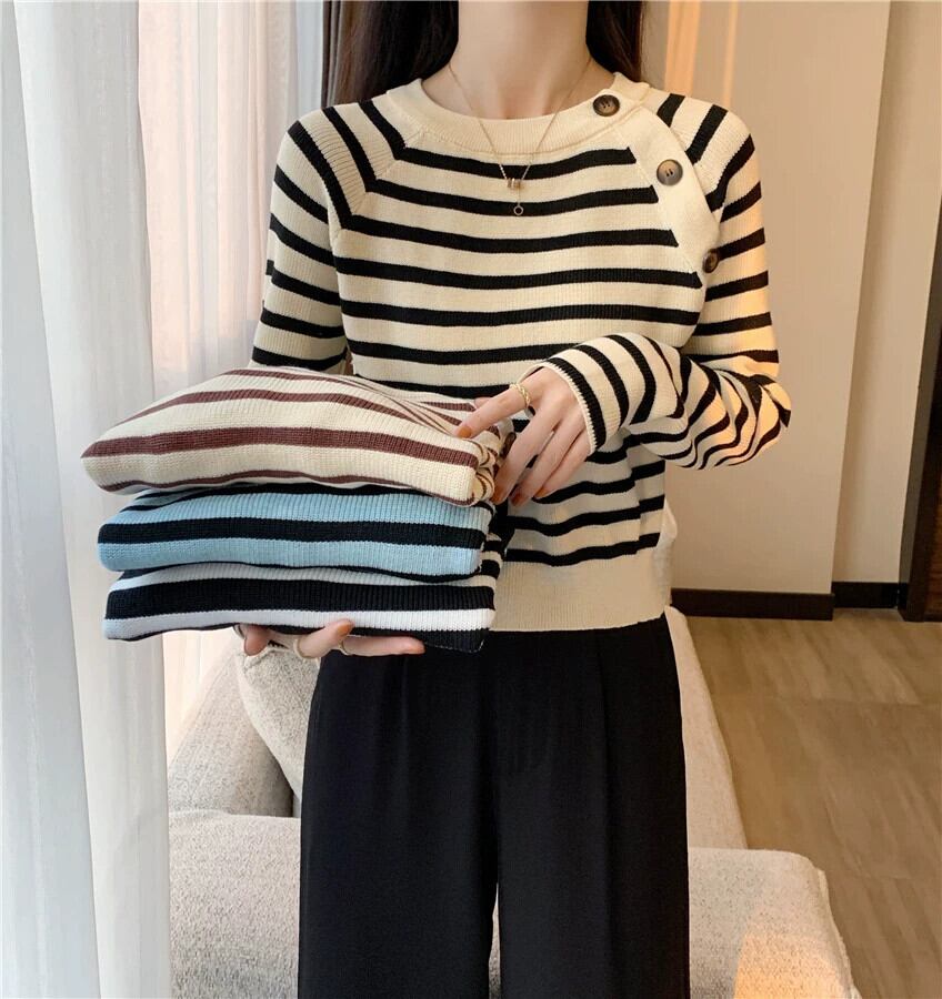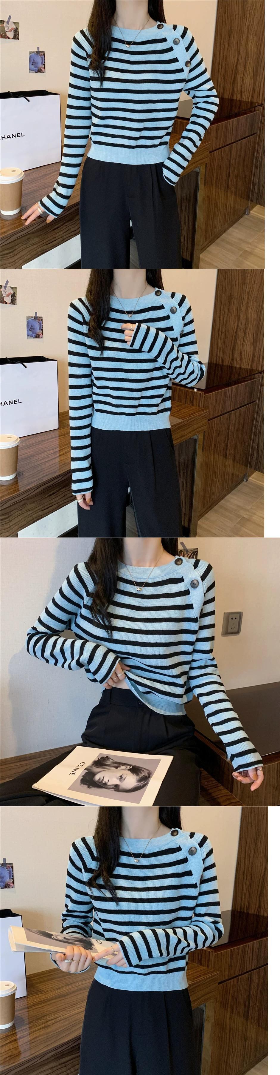 セーター女性のデザインニッチスリムフィットインナートップ 2023 秋と冬の新しいストライプボトムセーター オータム 秋物 ウィンター 冬物 7460027939747726 | framboise21