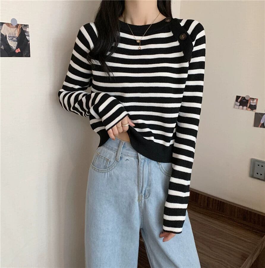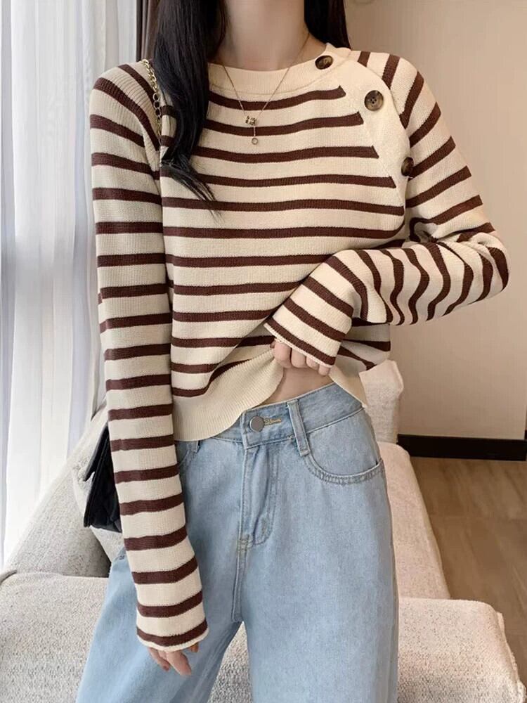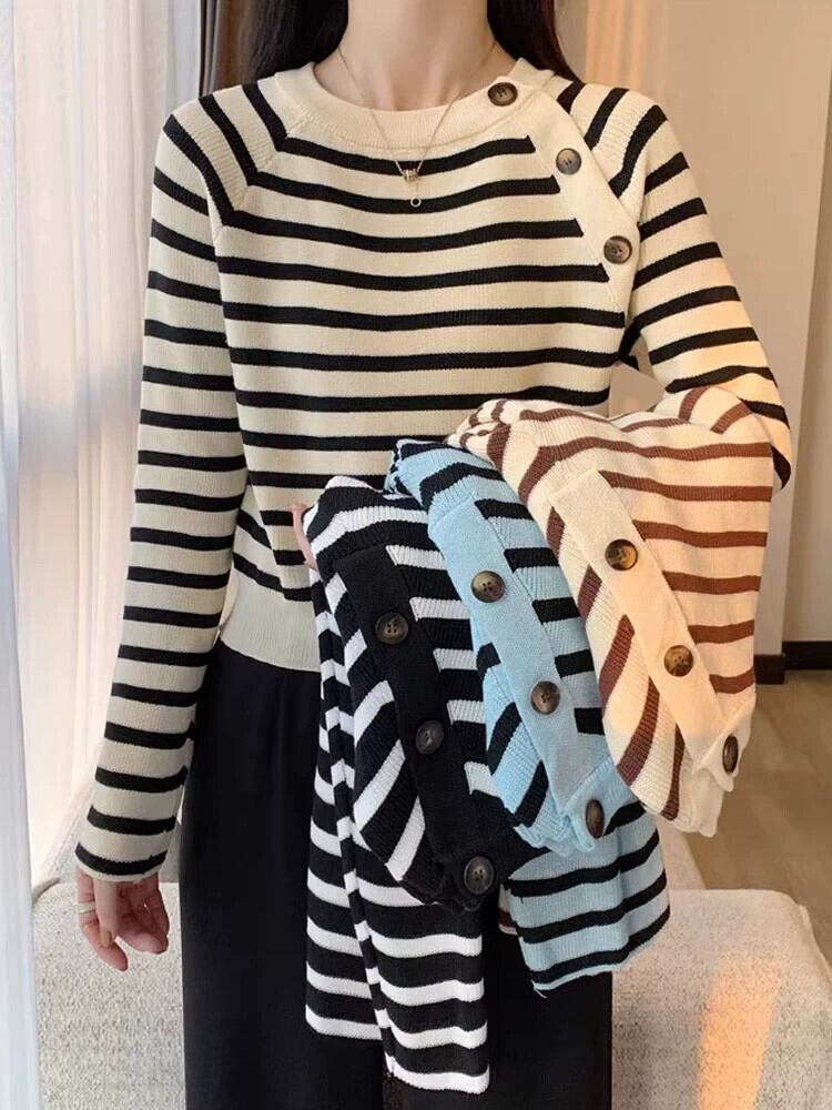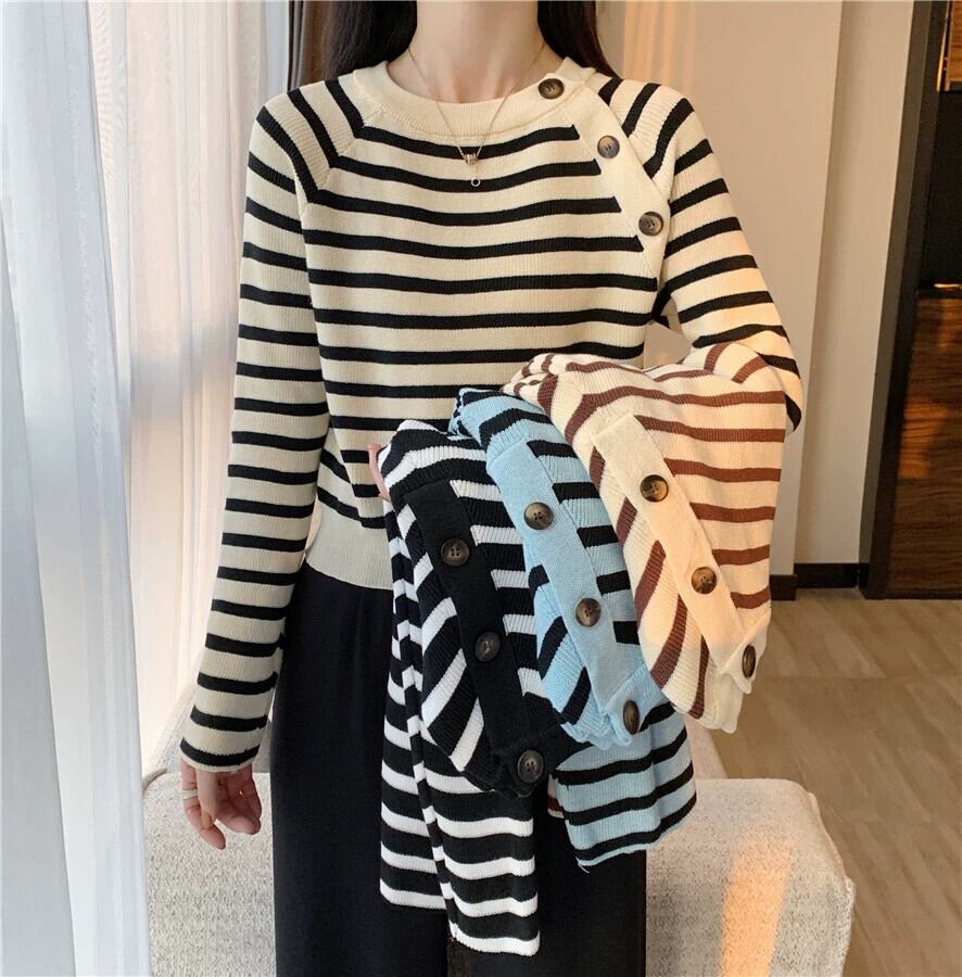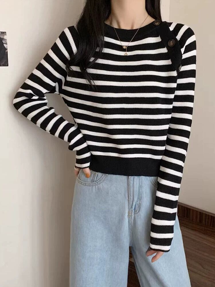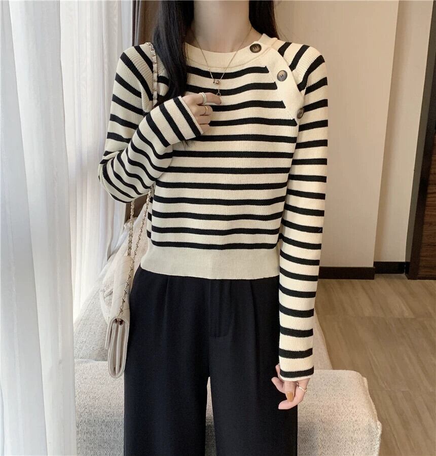 セーター女性のデザインニッチスリムフィットインナートップ 2023 秋と冬の新しいストライプボトムセーター オータム 秋物 ウィンター 冬物 7460027939747726 | framboise21