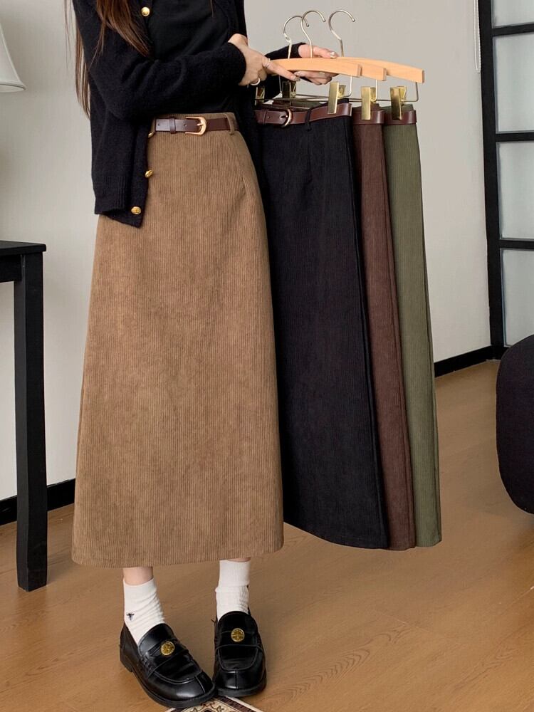メイラード レトロ コーデュロイ スカート レディース 秋冬 ウエスト Aラインスカート ミドル丈 ストレート スリット ヒップカバースカート オータム 秋物 ウィンター 冬物 7460024880086570 | framboise21