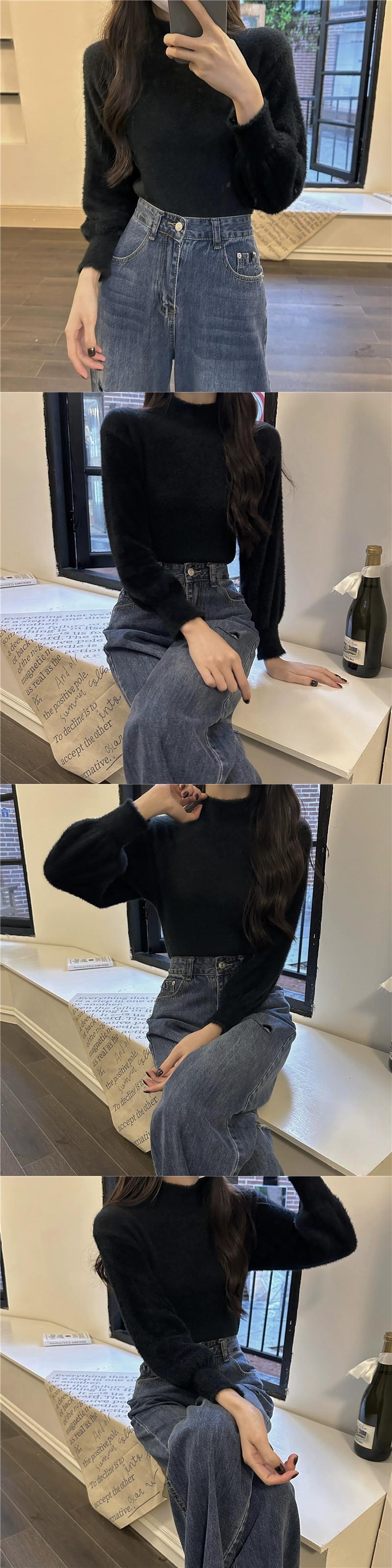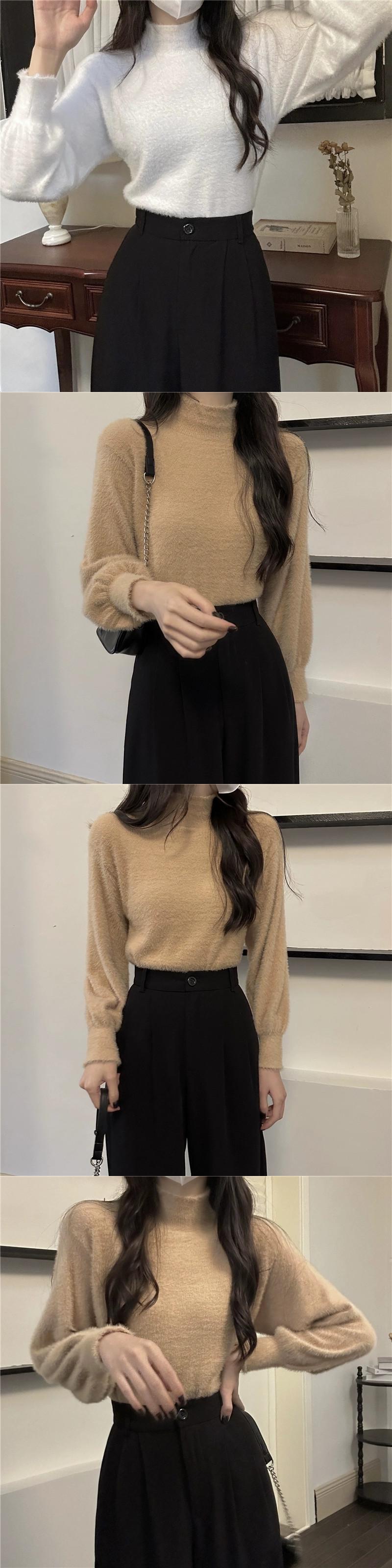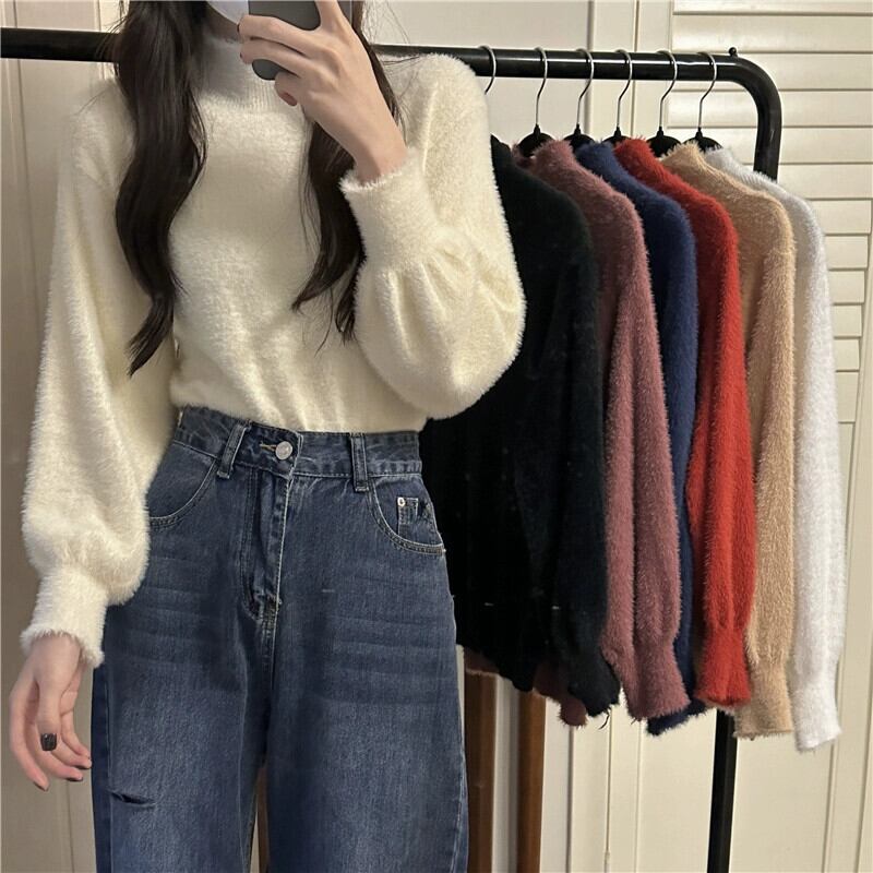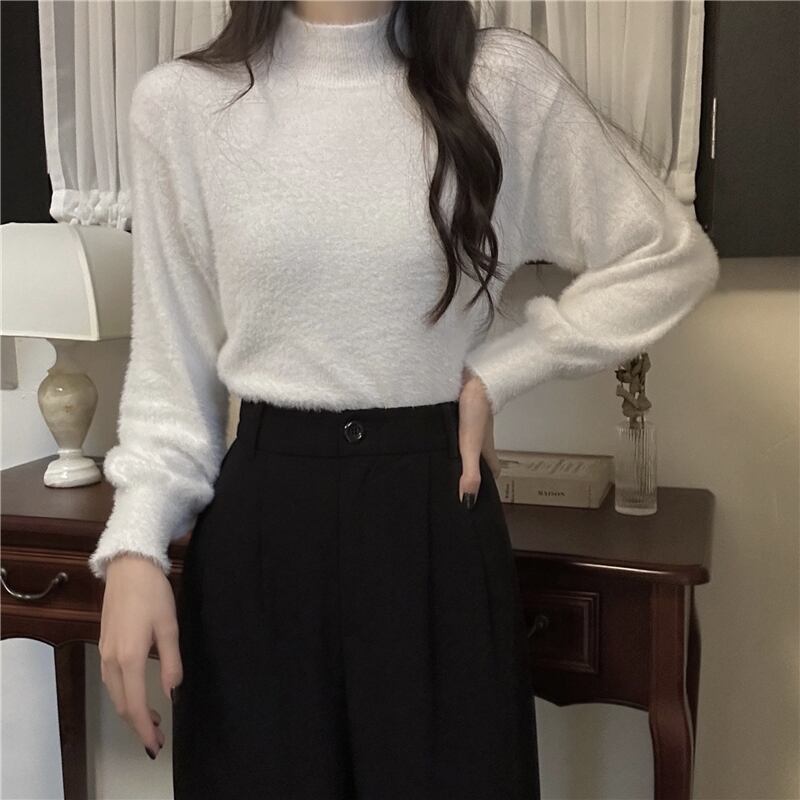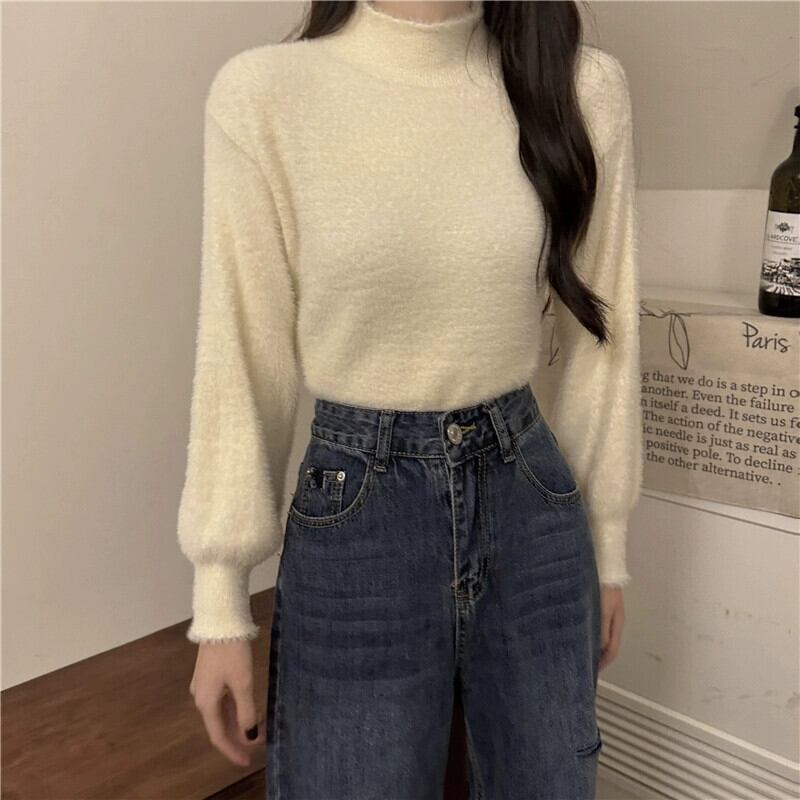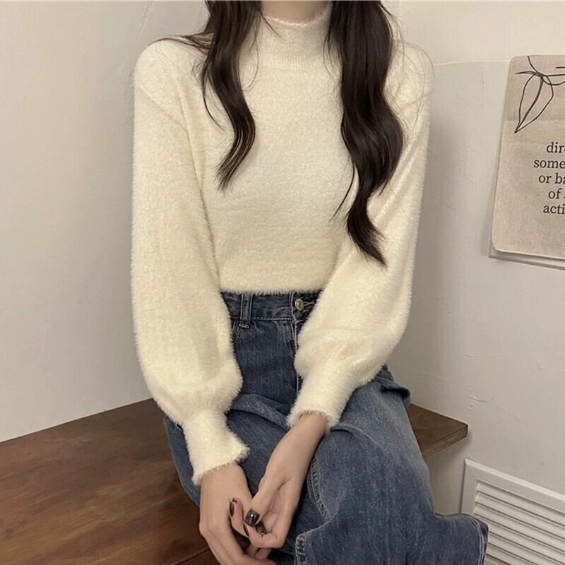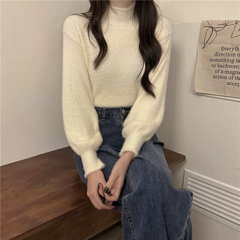 模造ミンクベルベットハーフタートルネックセーター底シャツ女性秋と冬のルーズインナーウェア肥厚パフスリーブセーター オータム 秋物 ウィンター 冬物 7460021061015438 | framboise21