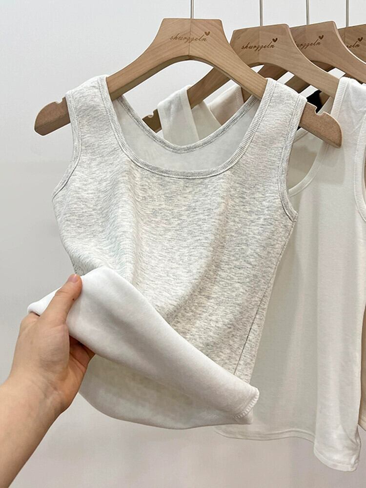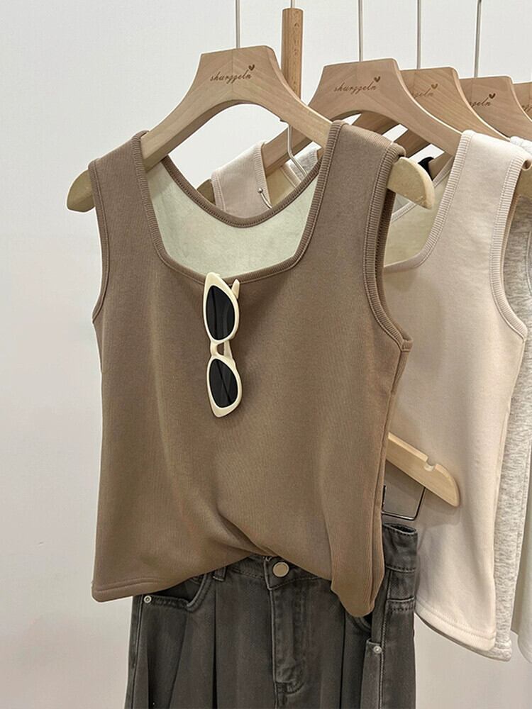 女性のベルベット肥厚サーマルベスト冬新シルバーフォックスベルベットスリングスリムフィットインナーノースリーブショートベースレイヤー ウィンター 冬物 銀 7460011860558192 | framboise21