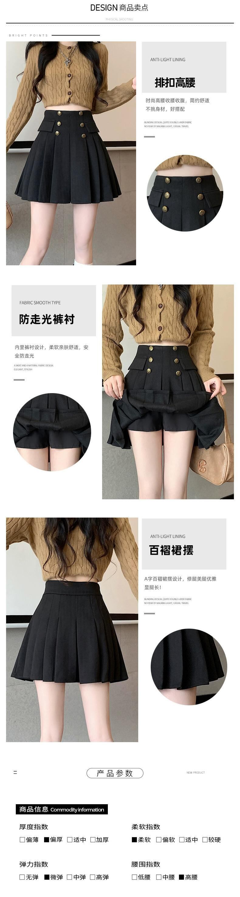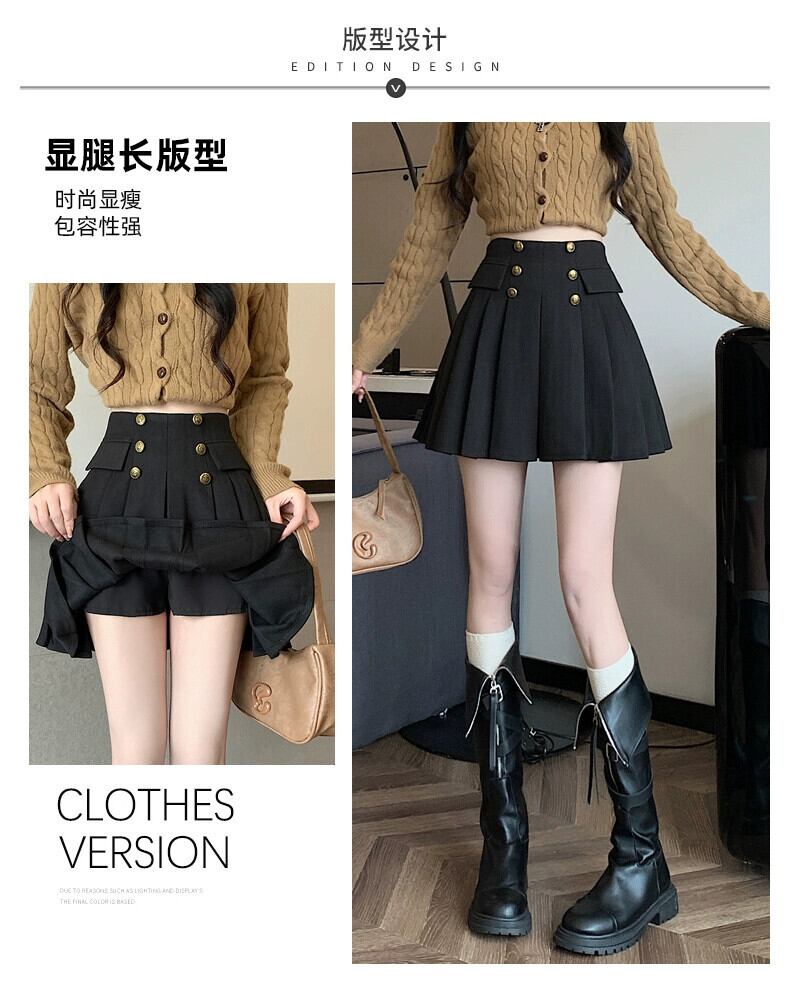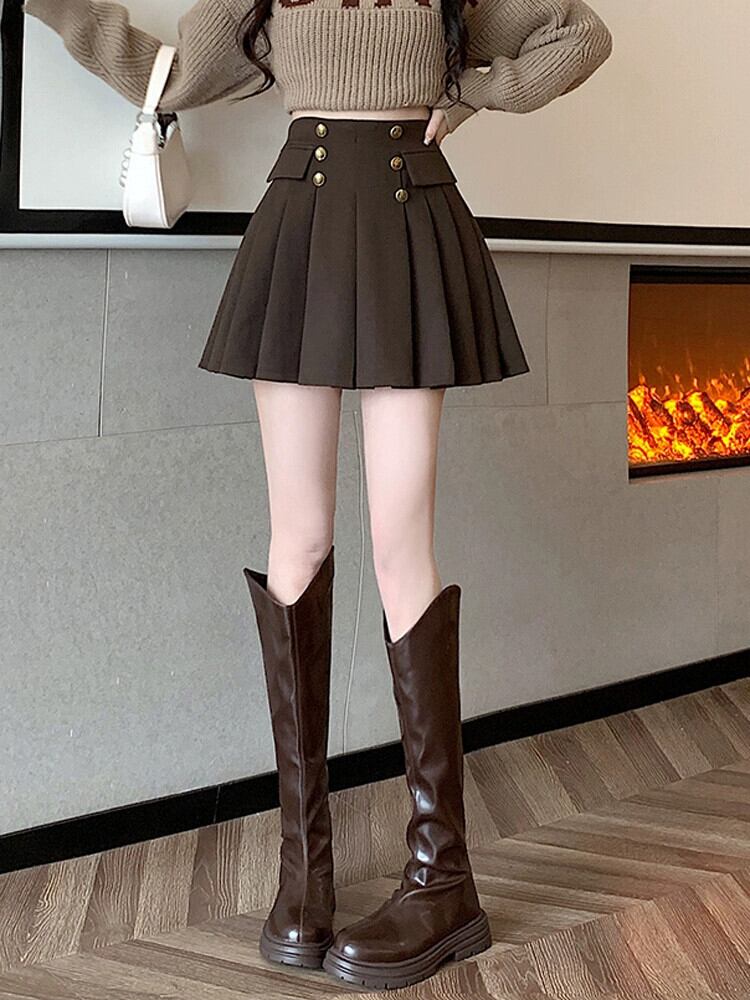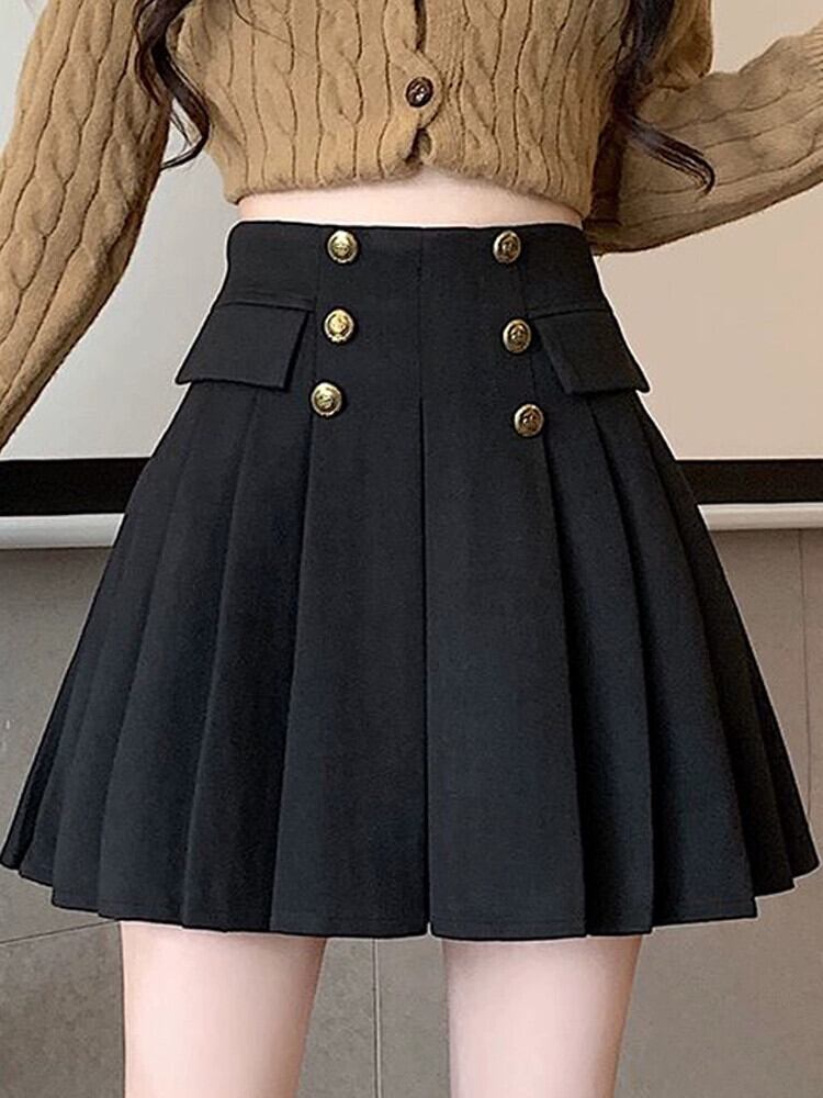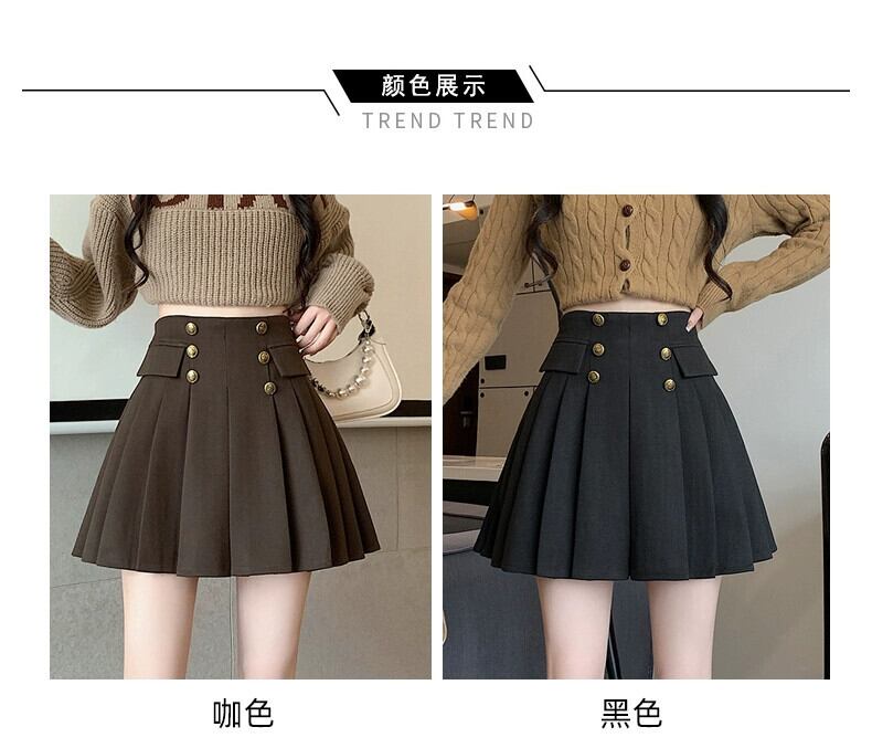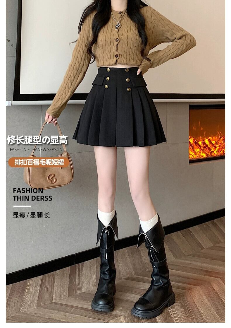 黒ウールプリーツスカート女性 2023 秋と冬の新デザインハイウエスト痩身抗露出 A ラインスカート ブラック オータム 秋物 ウィンター 冬物 Aライン 7460010809022751 | framboise21
