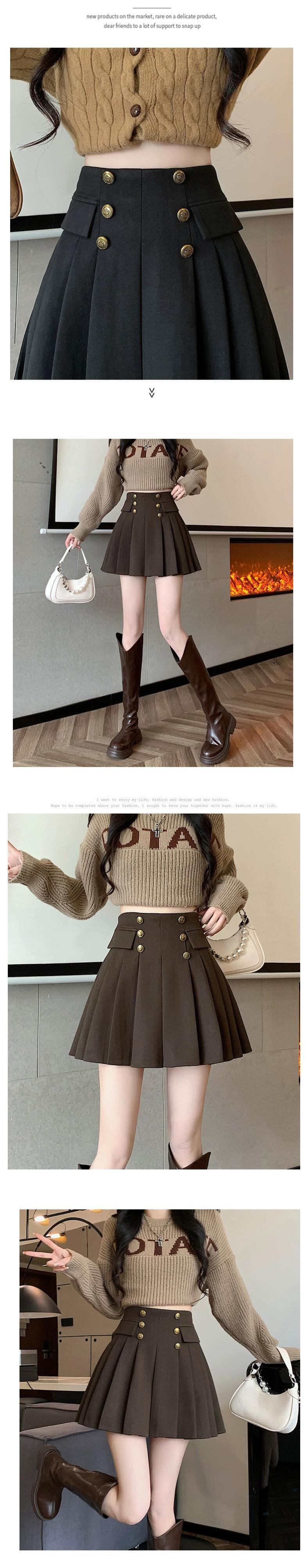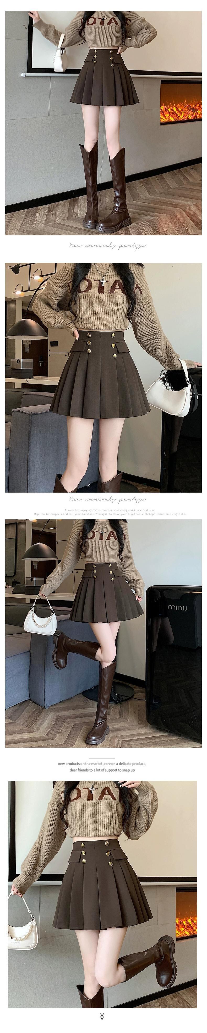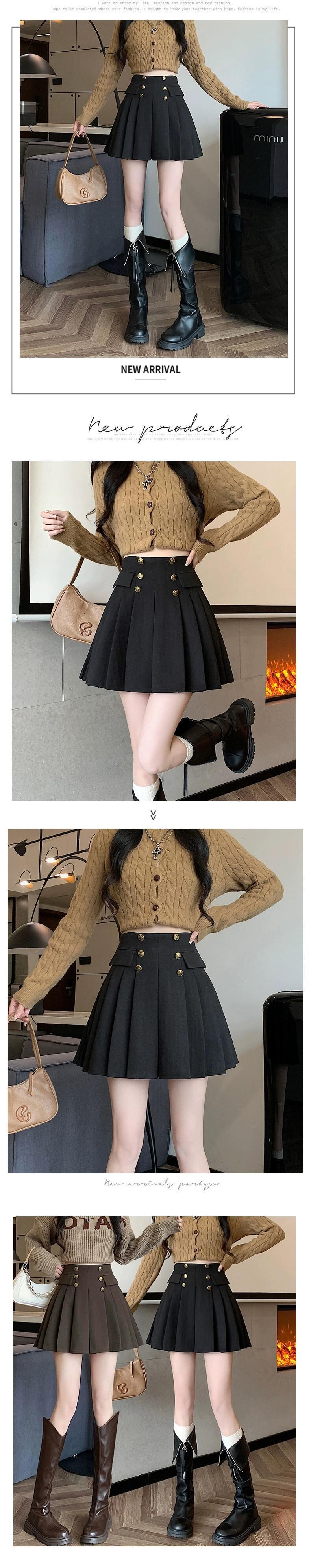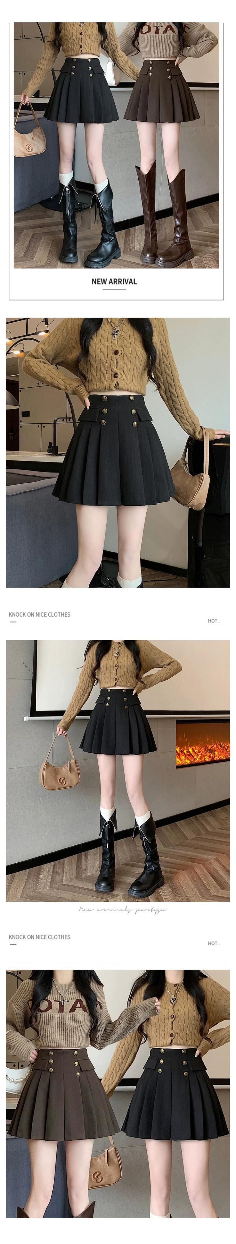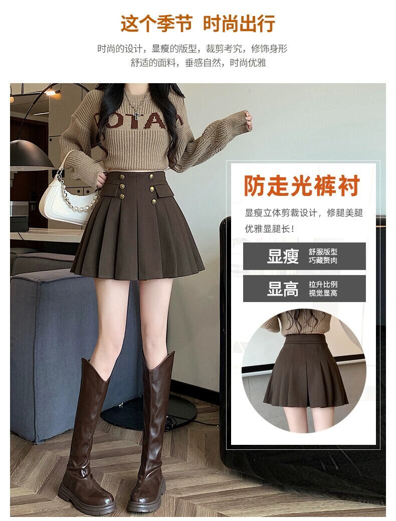 黒ウールプリーツスカート女性 2023 秋と冬の新デザインハイウエスト痩身抗露出 A ラインスカート ブラック オータム 秋物 ウィンター 冬物 Aライン 7460010809022751 | framboise21