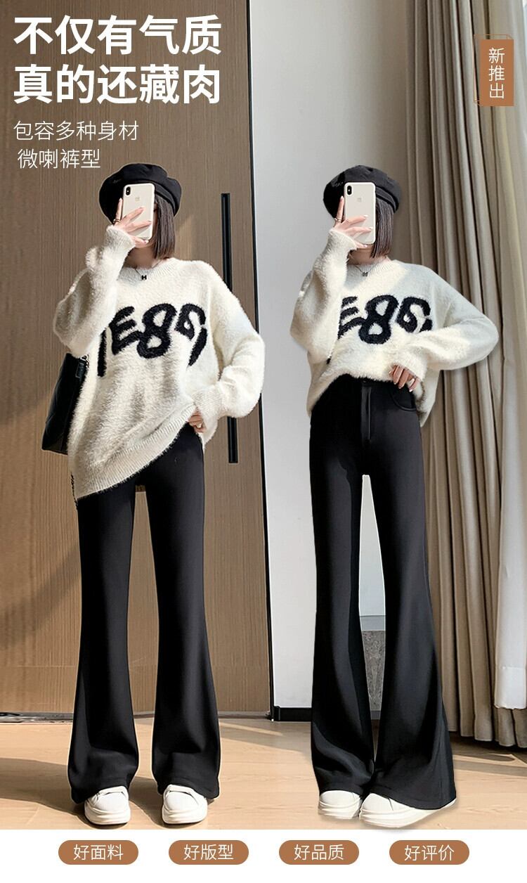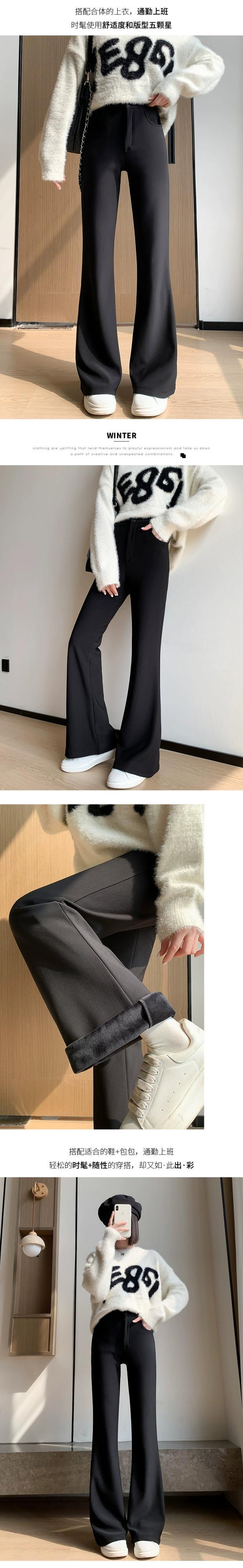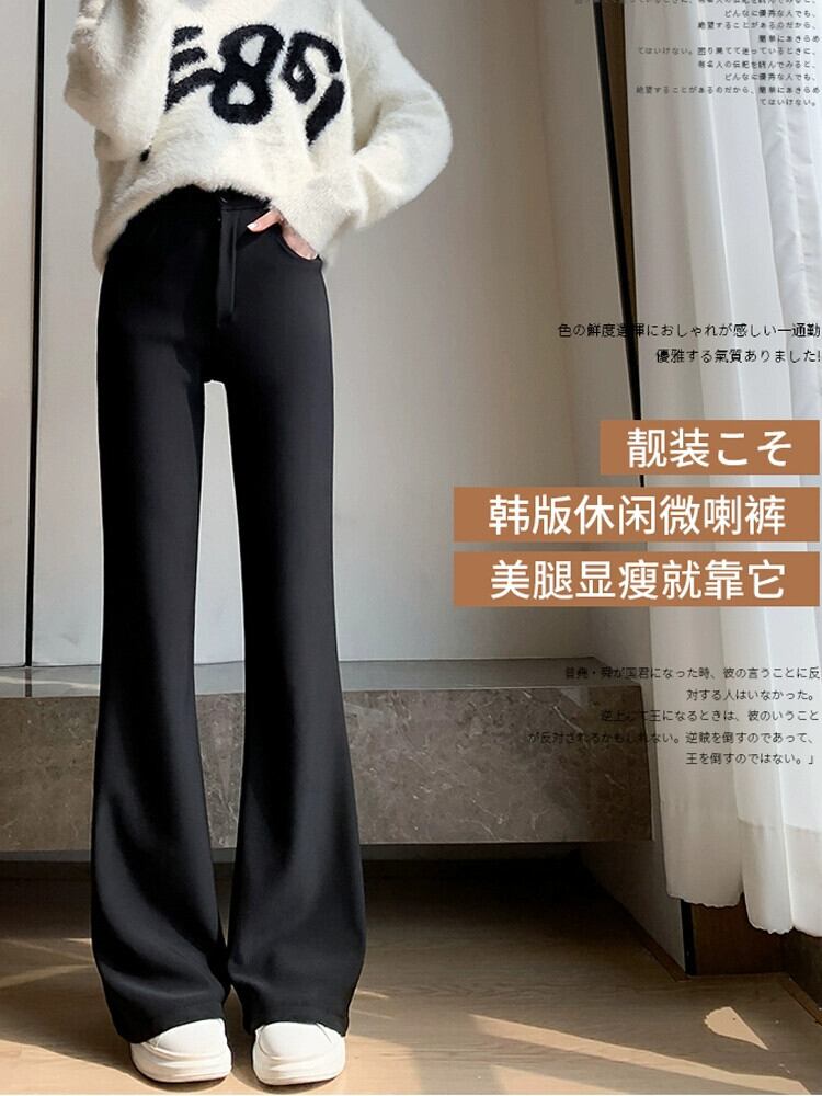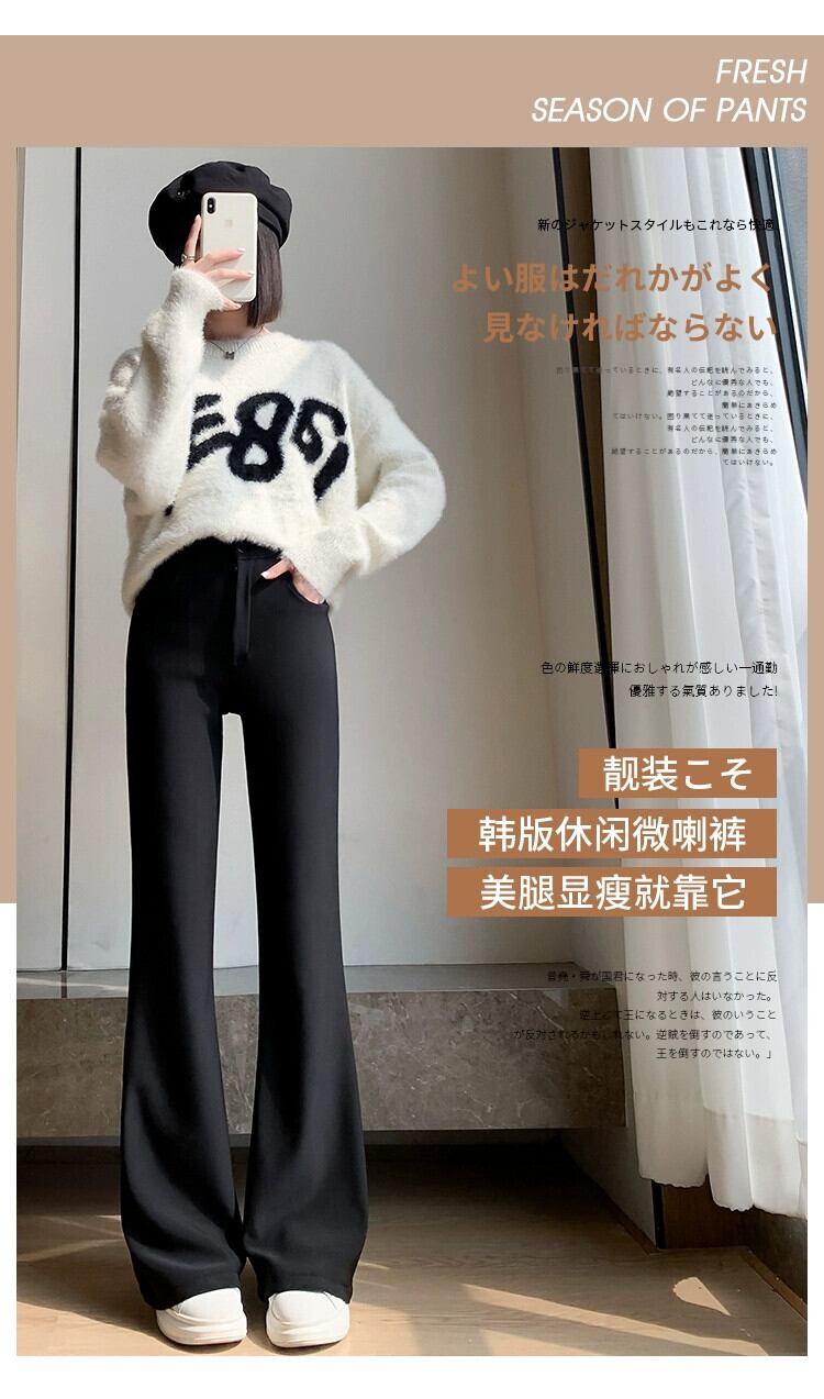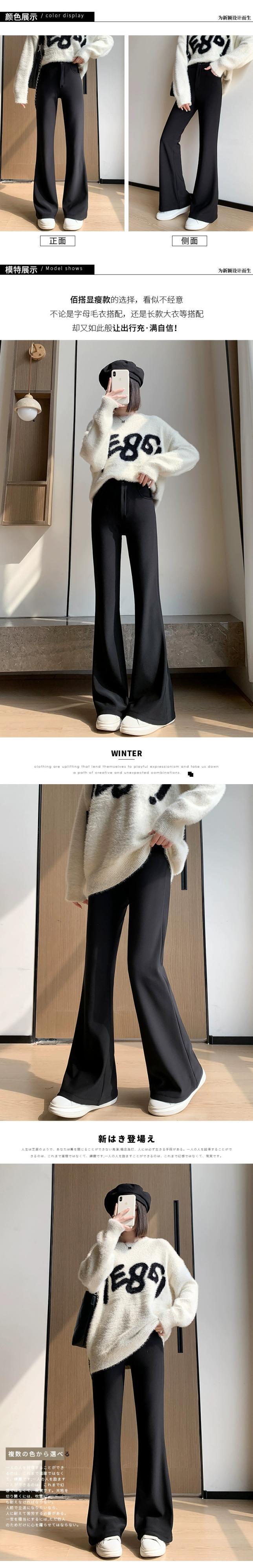 秋と冬の黒のカジュアルストレートスーツパンツの女性に、ドレープのあるハイウエストとスリムなフロアレングスの馬蹄パンツが付いたベルベットのフレアパンツ ハイウェスト レッド ブラック オータム 秋物 ウィンター 冬物 7460068280465926 | framboise21