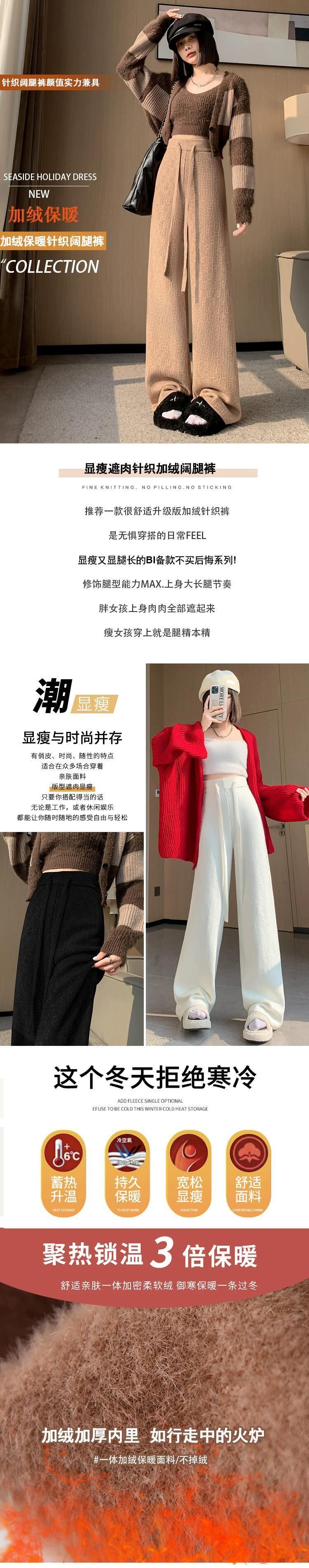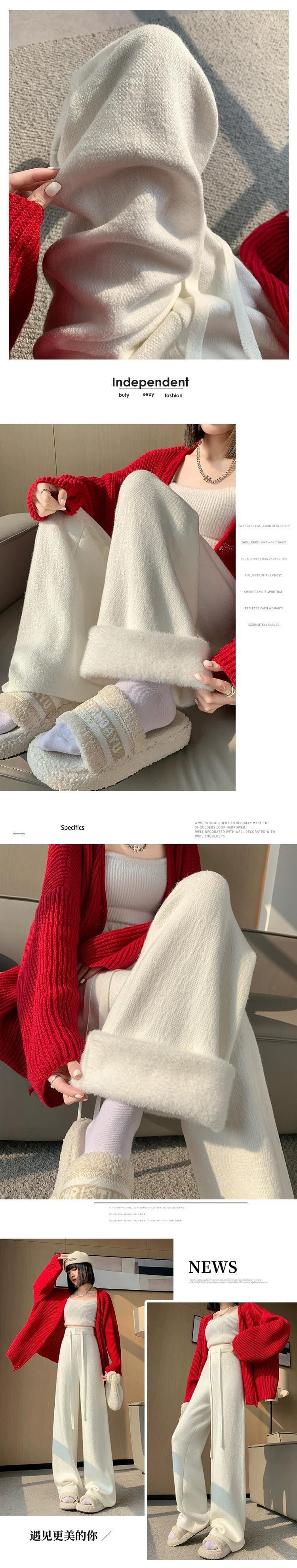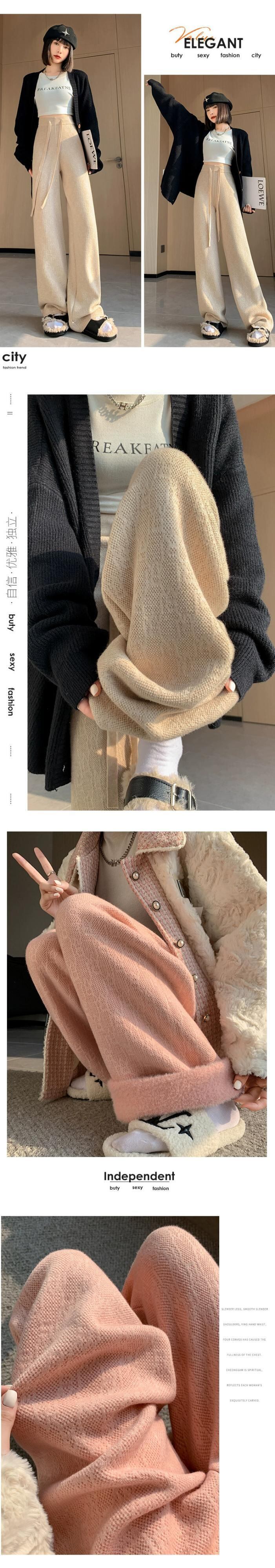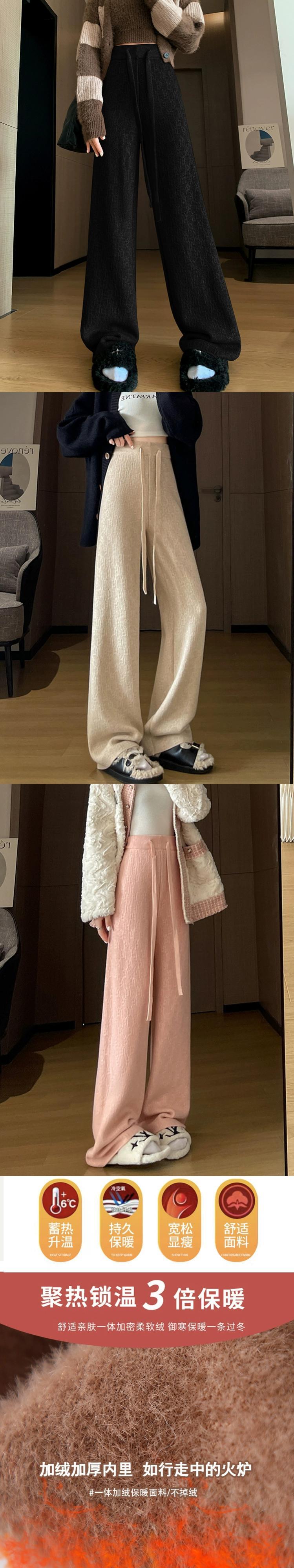 秋冬のジャカードニットワイドレッグパンツレディースプラスベルベットと厚みのあるパンツ、ルーズストレートハイウエストフロアレングスカジュアルパンツ ウィンター 冬物 7460092140100692 | framboise21