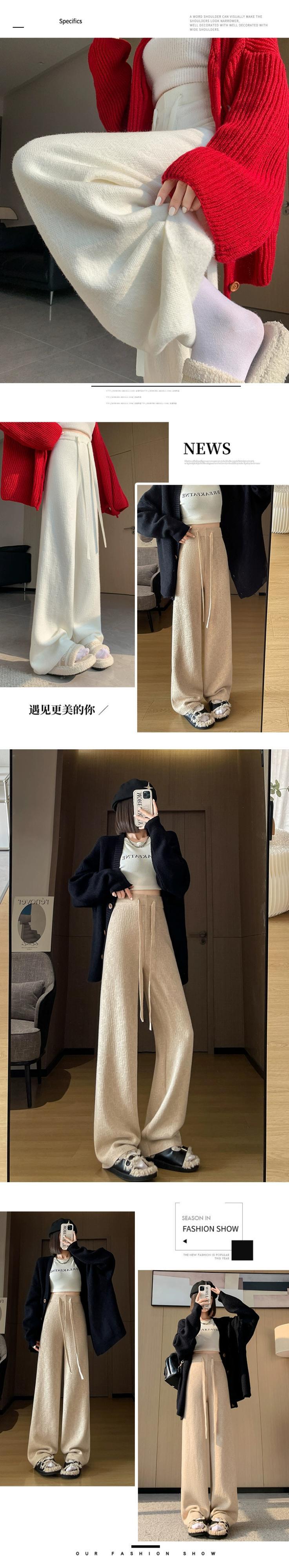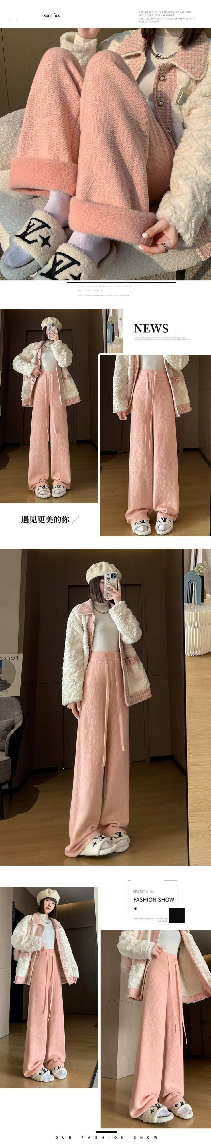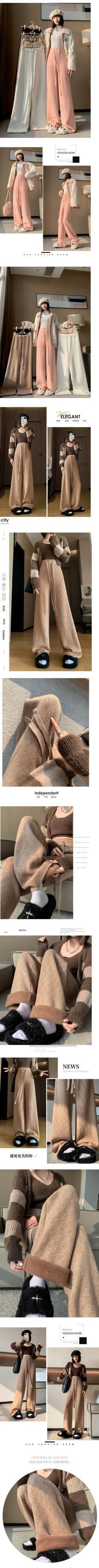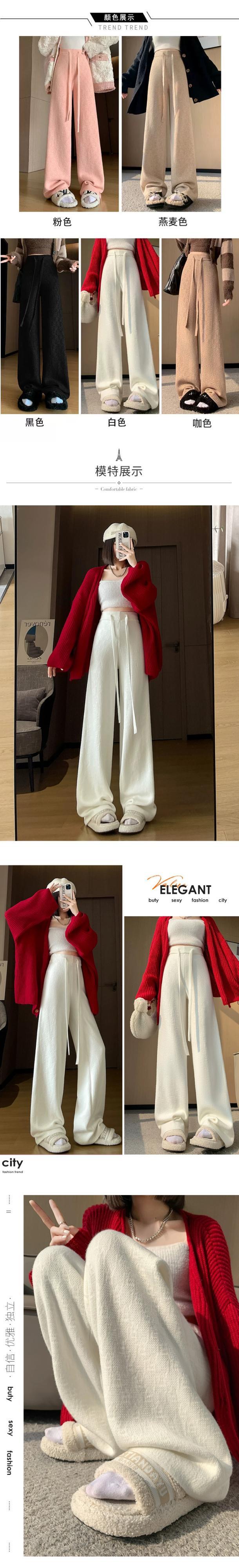 秋冬のジャカードニットワイドレッグパンツレディースプラスベルベットと厚みのあるパンツ、ルーズストレートハイウエストフロアレングスカジュアルパンツ ウィンター 冬物 7460092140100692 | framboise21
