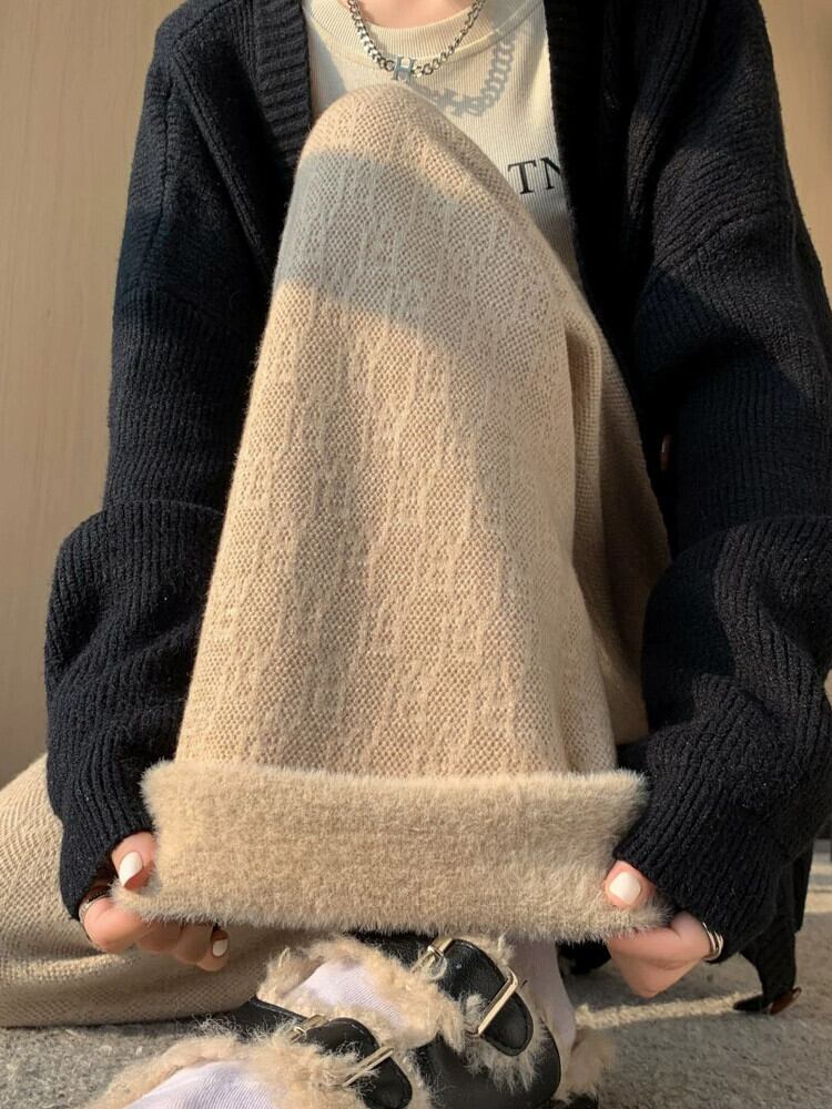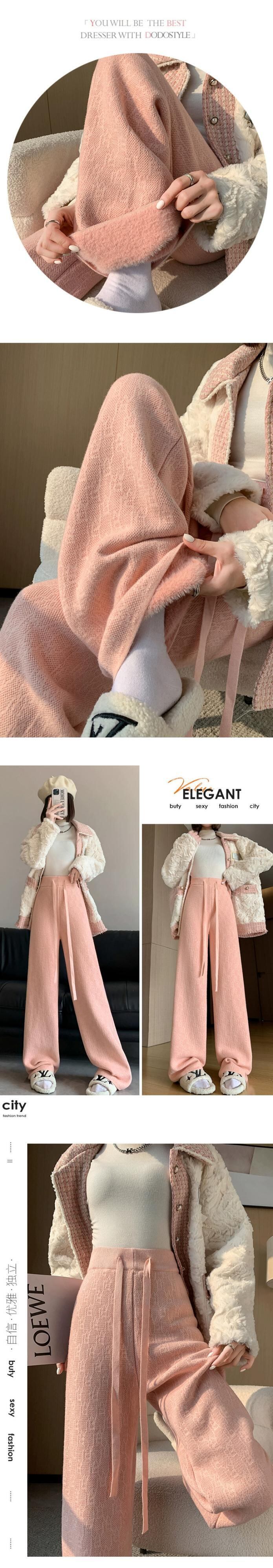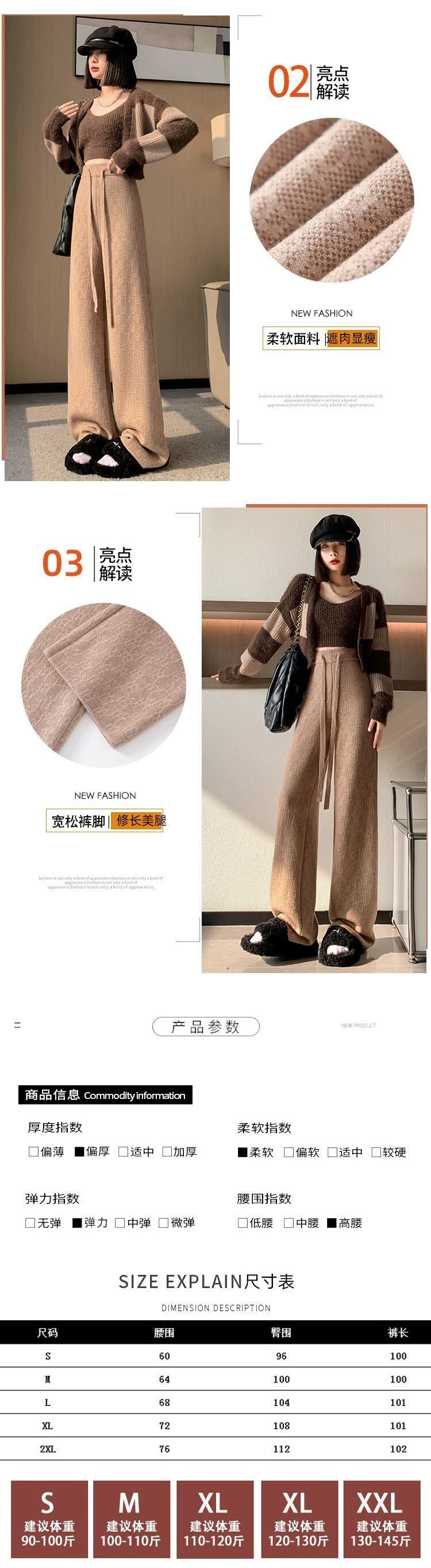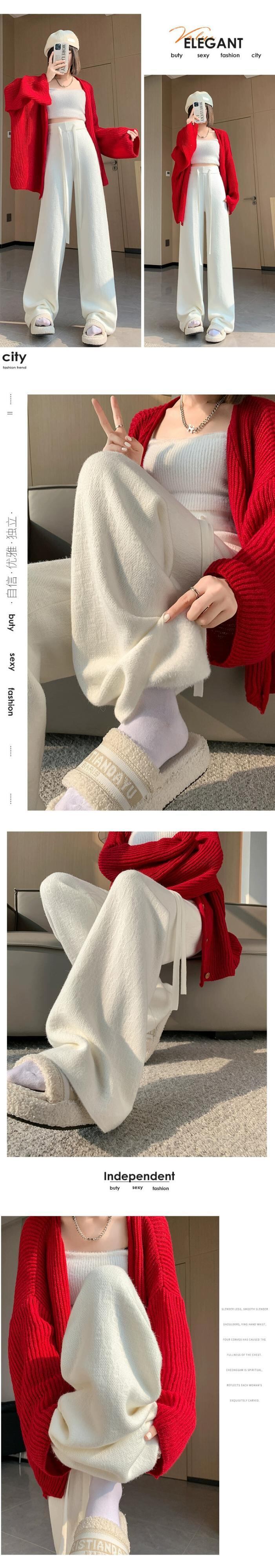 秋冬のジャカードニットワイドレッグパンツレディースプラスベルベットと厚みのあるパンツ、ルーズストレートハイウエストフロアレングスカジュアルパンツ ウィンター 冬物 7460092140100692 | framboise21