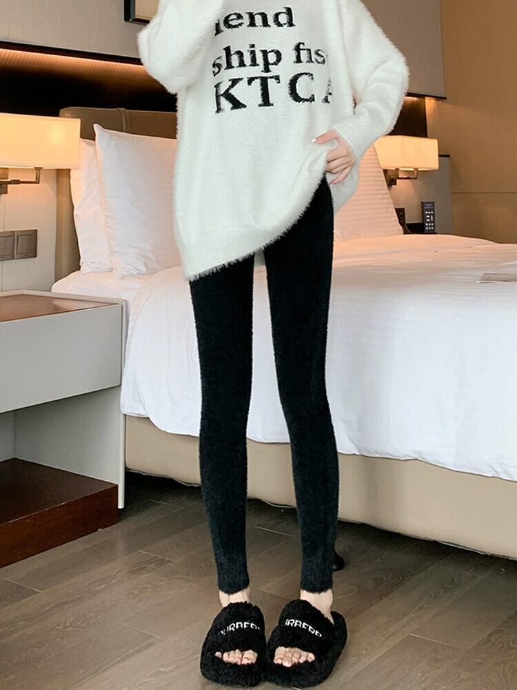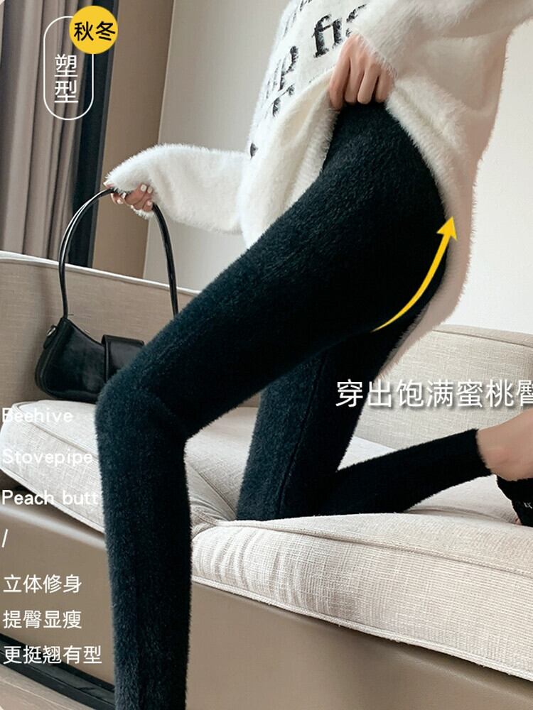 厚みのあるミンクベルベットレギンスレディース、秋と冬のアウター、ハイウエストの伸縮性のある小さな黒のパンツ、タイトフィット、痩身、多用途で暖かい秋のパンツ ブラック エラスティック オータム 秋物 ウィンター 冬物 7460036700295287 | framboise21